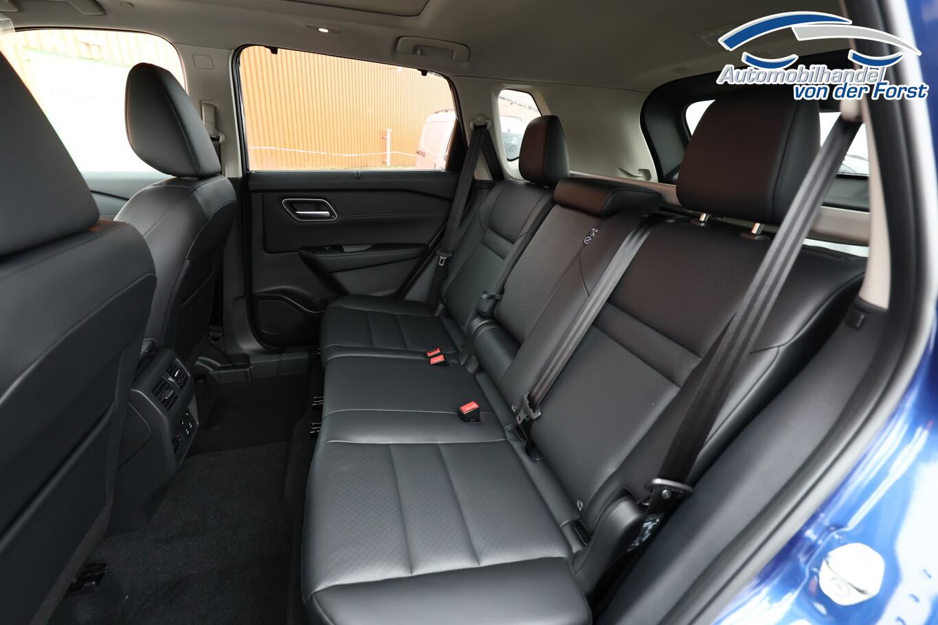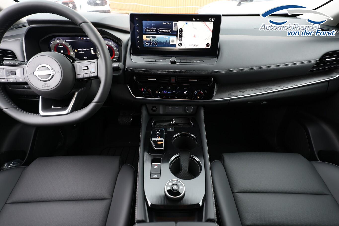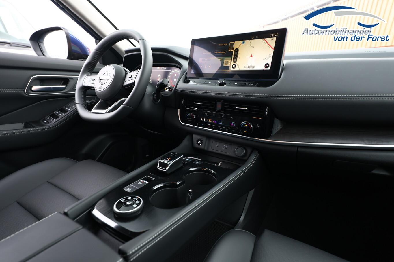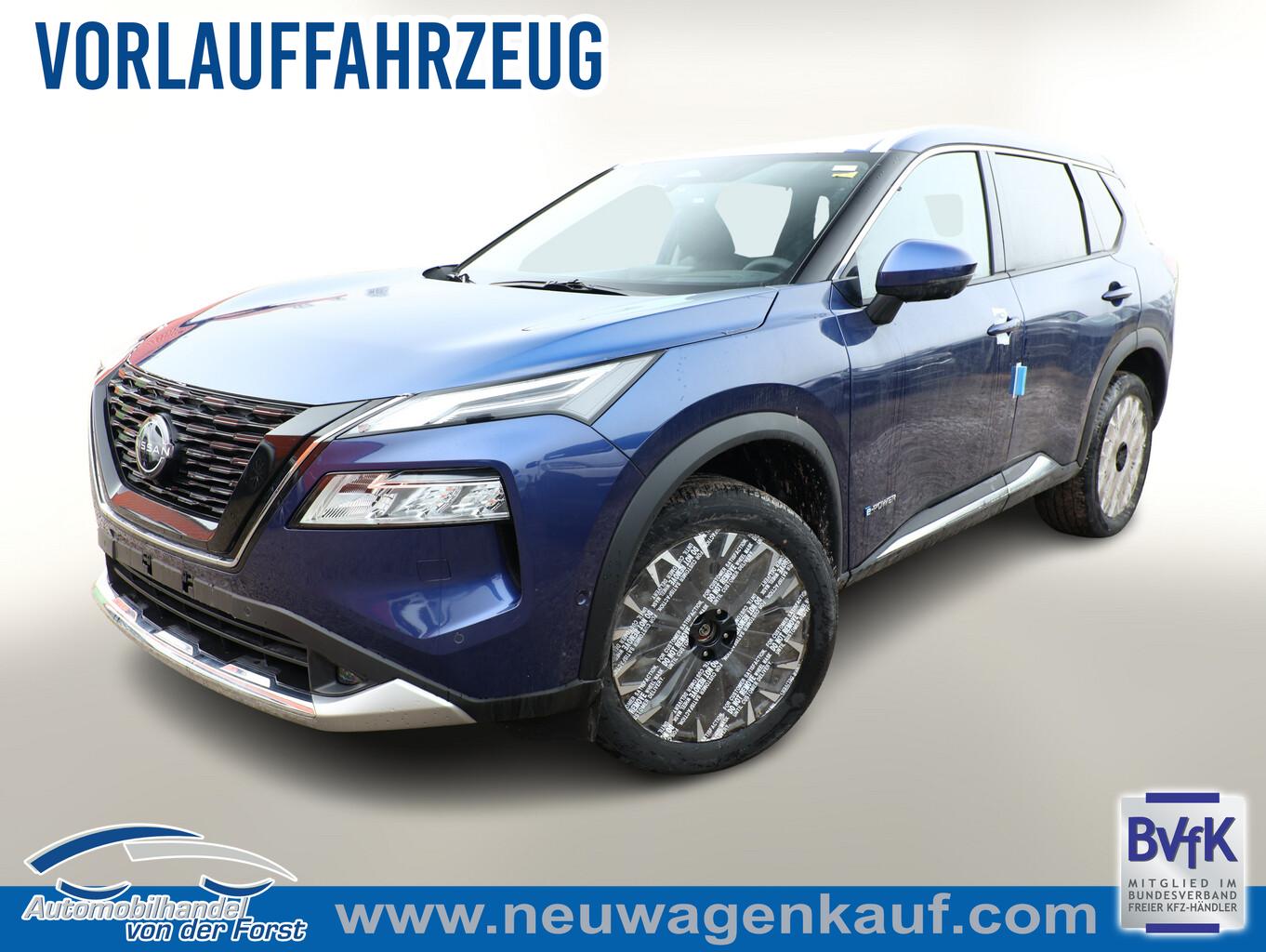 Panorama-Glasdach, 2 USB-Anschlüsse vorn, Digitaler Innenspiegel mit Kamerafunktion, Einparkhilfe seitlich, Fahrassistenz-System: Kreuzungsassistent, Fahrmodi: Standard, Sport, Eco, Snow, Off-Road, Frontscheibe heizbar, Geschwindigkeits-Begrenzeranlage, Klimaautomatik 3-Zonen, Lendenwirbelstützen vorn elektr. verstellbar, Lenkrad heizbar, LM-Felgen 19", Reifen 235/55 R19, Sitz vorn links und rechts höhenverstellbar, Sitzheizung vorn und hinten, Sonnenschutzrollo an Türscheiben hinten, Fahrassistenz-System: ProPilot mit Navi-Link (Fahrassistenz-System: Autonomer Lenk-Assistent für selbstständiges Spurhalten / Fahrassistenz-System: Autom. Distanzregelung mit vorausschauender Geschw.-Regelung / Fahrassistenz-System: Stauassistent inkl. Stop&Go-Funktion), Ausstattungs-Paket: Nissan Connect Navigationssystem (Radioempfang digital (DAB) / Touchscreen-Farbdisplay (12,3 Zoll) / Bluetooth-Schnittstelle / Freisprechanlage Bluetooth / Navigationssystem / Smartphone Schnittstelle (Apple CarPlay & Android Auto) / Sprachbediensystem Spracherkennung / Around View Monitor (360° Umgebungsansicht) / Kamerasystem Around View / Service-System: Amazon Alexa / Service-System: Google Services / Service-System: Nissan Connect Services), Scheinwerfer Voll-LED (Fahrassistenz-System: Adaptiver Fernlichtassistent), Ambiente-Beleuchtung Mittelkonsole, Ambiente-Beleuchtung Türverkleidung vorn, Elektr. Bremskraftverteilung (EBD), Elektromotor 150 kW (Hybridantrieb), Elektromotor mit Range Extender 157 kW (Motor 1,5 Ltr. - 116 kW), Fahrassistenz-System: ProPilot Park, Induktionsladeschale für Smartphone, Innenspiegel mit Abblendautomatik, Instrumentenanzeige TFT-Farbdisplay (12,3 Zoll), Karosserie: 5-türig, Otto-Partikelfilter (OPF), Parkbremse elektrisch, Radstand 2705 mm, USB-Anschluss im Fond, Anti-Blockier-System (ABS), Antriebsart: Allradantrieb, Elektron. Stabilitäts-Programm (ESP), Getriebe für Elektrofahrzeug, Airbag Fahrer-/Beifahrerseite, Isofix-Aufnahmen für Kindersitz, Keyless-Entry, Kopf-Airbag-System, Rücksitzbank verschiebbar, Rücksitzlehne geteilt (40:20:40), Schließ-/Startsystem intelligent key, Seitenairbag vorn, Seitenairbag vorn mitte (Center-Airbag), Sitz vorn links elektr. verstellbar (mit Memory), Sitz vorn rechts elektr. verstellbar (mit Memory), Sitzbezug / Polsterung: Kunstleder, Verglasung hinten abgedunkelt, Fahrmodusschalter, Head-up-Display, Dachreling, Heckklappe/-Deckel elektr. betätigt (Öffnung, sensorgesteuert), Auto-Hold-Funktion, Fahrassistenz-System: Auffahrwarnsystem (Forward Collision Warning, FCW), Fahrassistenz-System: Verkehrszeichenerkennung, Rückfahrkamera, Fahrassistenz-System: Sicherheitssystem ERA GLONASS mit automatischem Notruf, Lenkrad (Leder) mit Multifunktion, Außenspiegel elektr. anklappbar, Außenspiegel elektr. verstell- und heizbar, Fahrassistenz-System: Totwinkel-Assistent, Heckleuchten LED, Licht- und Regensensor, Tagfahrlicht LED, Einparkhilfe hinten, Einparkhilfe vorn, Fahrassistenz-System: Intelligenter Parklenkassistent, Fahrassistenz-System: Autonomer Notbrems-Assistent, Fahrassistenz-System: Müdigkeitserkennungs-Sensor, Fahrassistenz-System: Querverkehrs-Assistent Heck (Rear Cross Traffic Alert, RCTA), Reifendruck-Kontrollsystem