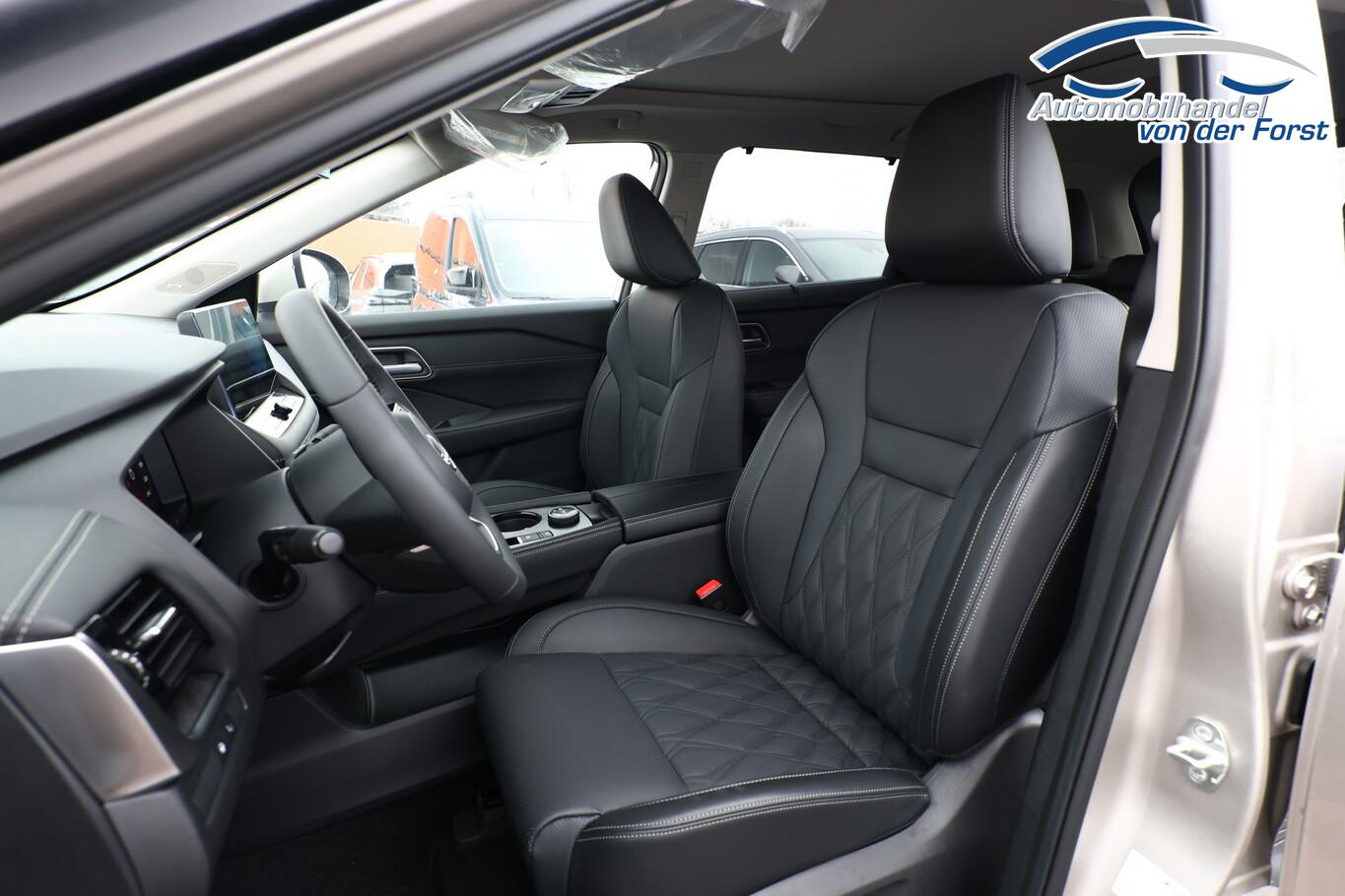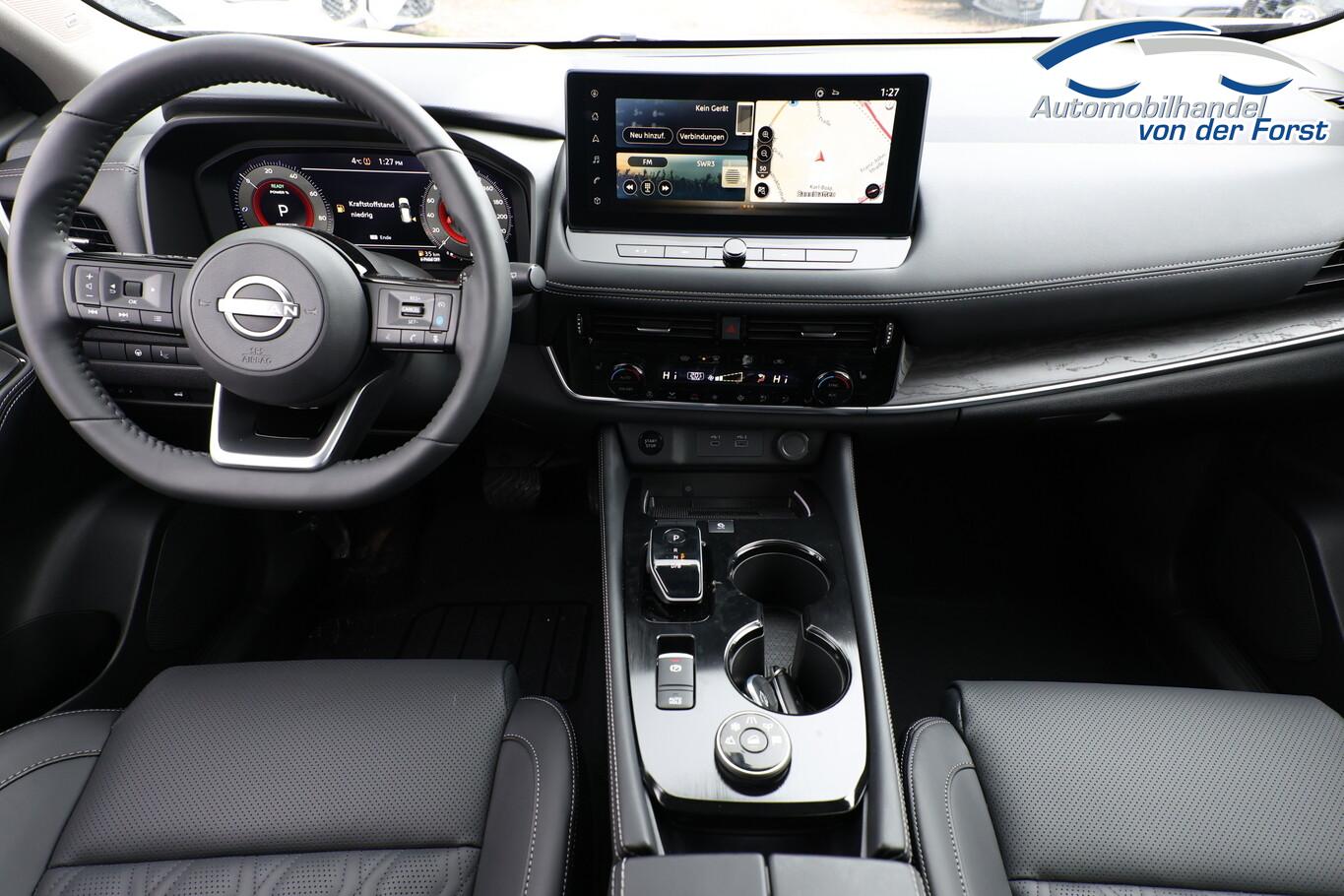Panorama-Glasdach, Sound-System BOSE Premium (10 Lautsprecher), 2 USB-Anschlüsse vorn, Digitaler Innenspiegel mit Kamerafunktion, Einparkhilfe seitlich, Fahrassistenz-System: Kreuzungsassistent, Fahrmodi: Standard, Sport, Eco, Snow, Off-Road, Frontscheibe heizbar, Geschwindigkeits-Begrenzeranlage, Klimaautomatik 3-Zonen, Lendenwirbelstützen vorn elektr. verstellbar, Lenkrad heizbar, LM-Felgen 19", Produktionsdatum 02.12.2024, Reifen 235/55 R19, Sitz vorn links und rechts höhenverstellbar, Sitzbezug / Polsterung: Nappaleder, Sitzheizung vorn und hinten, Sonnenschutzrollo an Türscheiben hinten, Fahrassistenz-System: ProPilot mit Navi-Link (Fahrassistenz-System: Autonomer Lenk-Assistent für selbstständiges Spurhalten / Fahrassistenz-System: Autom. Distanzregelung mit vorausschauender Geschw.-Regelung / Fahrassistenz-System: Stauassistent inkl. Stop&Go-Funktion), Ausstattungs-Paket: Nissan Connect Navigationssystem (Radioempfang digital (DAB) / Touchscreen-Farbdisplay (12,3 Zoll) / Bluetooth-Schnittstelle / Freisprechanlage Bluetooth / Navigationssystem / Smartphone Schnittstelle (Apple CarPlay & Android Auto) / Sprachbediensystem Spracherkennung / Around View Monitor (360° Umgebungsansicht) / Kamerasystem Around View / Service-System: Amazon Alexa / Service-System: Google Services / Service-System: Nissan Connect Services), Scheinwerfer Voll-LED (Fahrassistenz-System: Adaptiver Fernlichtassistent), Ambiente-Beleuchtung Mittelkonsole, Ambiente-Beleuchtung Türverkleidung vorn, Elektr. Bremskraftverteilung (EBD), Elektromotor 150 kW (Hybridantrieb), Elektromotor mit Range Extender 157 kW (Motor 1,5 Ltr. - 116 kW), Fahrassistenz-System: ProPilot Park, Induktionsladeschale für Smartphone, Innenspiegel mit Abblendautomatik, Instrumentenanzeige TFT-Farbdisplay (12,3 Zoll), Karosserie: 5-türig, Otto-Partikelfilter (OPF), Parkbremse elektrisch, Radstand 2705 mm, USB-Anschluss im Fond, Anti-Blockier-System (ABS), Antriebsart: Allradantrieb, Elektron. Stabilitäts-Programm (ESP), Getriebe für Elektrofahrzeug, Airbag Fahrer-/Beifahrerseite, Isofix-Aufnahmen für Kindersitz, Keyless-Entry, Kopf-Airbag-System, Rücksitzbank verschiebbar, Rücksitzlehne geteilt (40:20:40), Schließ-/Startsystem intelligent key, Seitenairbag vorn, Seitenairbag vorn mitte (Center-Airbag), Sitz vorn links elektr. verstellbar (mit Memory), Sitz vorn rechts elektr. verstellbar (mit Memory), Verglasung hinten abgedunkelt, Fahrmodusschalter, Head-up-Display, Dachreling, Heckklappe/-Deckel elektr. betätigt (Öffnung, sensorgesteuert), Auto-Hold-Funktion, Fahrassistenz-System: Auffahrwarnsystem (Forward Collision Warning, FCW), Fahrassistenz-System: Verkehrszeichenerkennung, Rückfahrkamera, Fahrassistenz-System: Sicherheitssystem ERA GLONASS mit automatischem Notruf, Lenkrad (Leder) mit Multifunktion, Außenspiegel elektr. anklappbar, Außenspiegel elektr. verstell- und heizbar, Fahrassistenz-System: Totwinkel-Assistent, Heckleuchten LED, Licht- und Regensensor, Tagfahrlicht LED, Einparkhilfe hinten, Einparkhilfe vorn, Fahrassistenz-System: Intelligenter Parklenkassistent, Fahrassistenz-System: Autonomer Notbrems-Assistent, Fahrassistenz-System: Müdigkeitserkennungs-Sensor, Fahrassistenz-System: Querverkehrs-Assistent Heck (Rear Cross Traffic Alert, RCTA), Reifendruck-Kontrollsystem