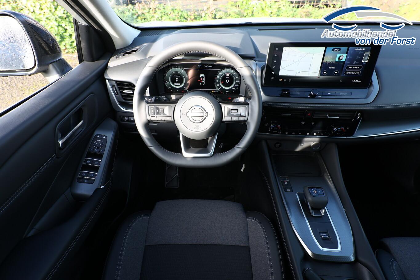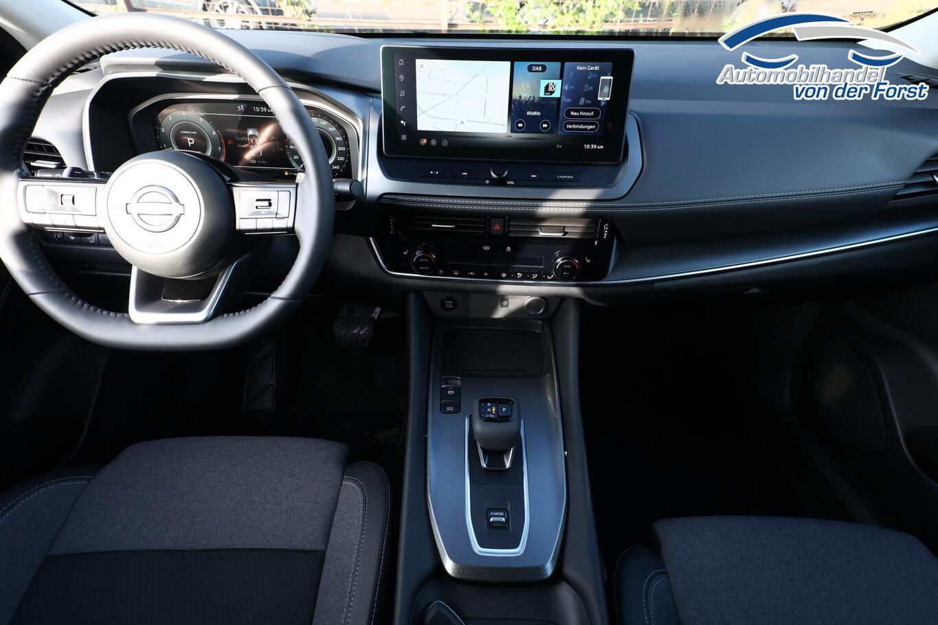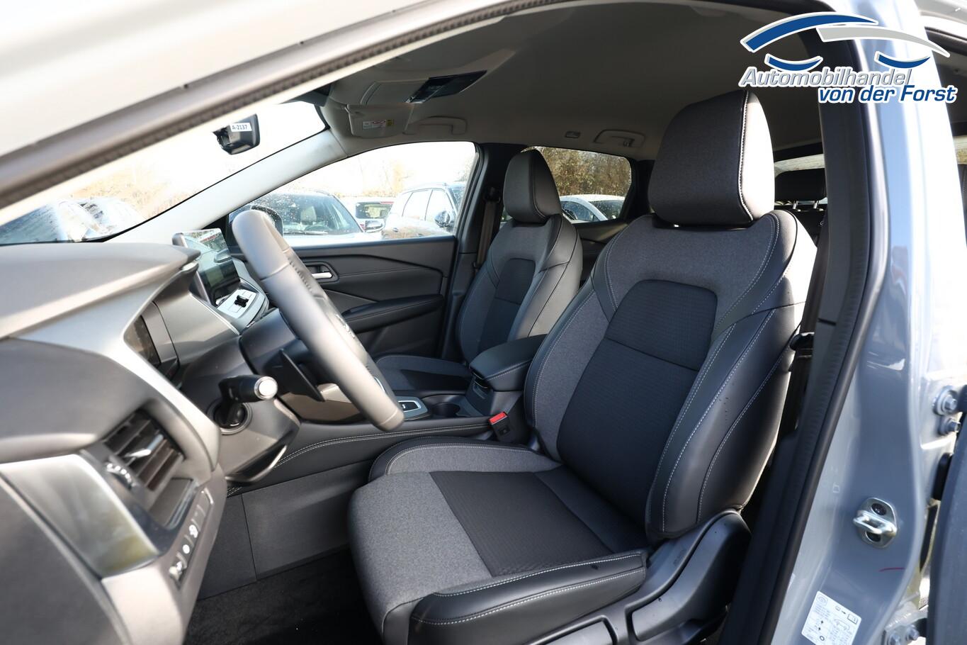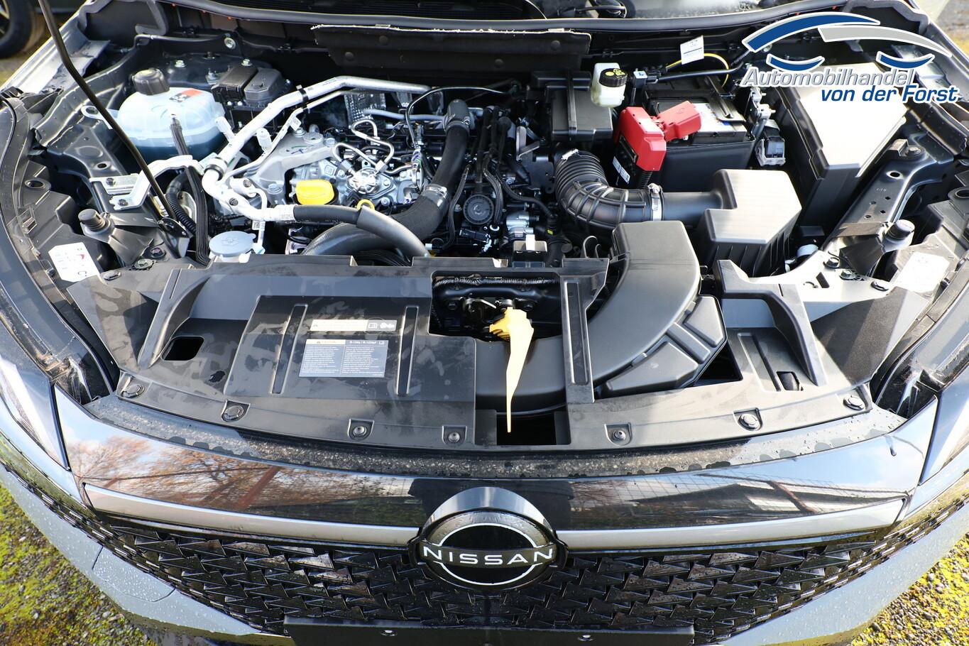 Winter-Paket (Lenkrad heizbar / Sitzheizung vorn / Frontscheibe heizbar), Dachreling silber, Brillenhalter, Einparkhilfe vorn und hinten, Fahrassistenz-System: ProPilot mit Navi-Link, Gurtwarnanlage, Induktionsladeschale für Smartphone, Innenspiegel rahmenlos mit Abblendautomatik, Kopf-Airbag vorn, LM-Felgen 18 Zoll, Navigation in Verbindung mit dem Smartphone (über Apple Carplay / Android Auto /...), Reifen 235/55 R18, Schadstoffarm nach Abgasnorm Euro 6e (EU6 EA), Sitze vorn manuell verstellbar, Multimedia-System Nissan Connect (6 Lautsprecher / Audiosystem / Smartphone kabellose Schnittstelle (Apple CarPlay & Android Auto) / Service-System: Google Services / Service-System: Nissan Connect Services), Schließ-/Startsystem intelligent key (Keyless-Entry / Start-Stop-Knopf), Lenkrad (Leder) mit Multifunktion (Audiobedienung am Lenkrad), Ambiente-Beleuchtung, Dachantenne im Haifischflossen-Design, Dachhimmel hellgrau, Elektr. Bremskraftverteilung (EBD), Gepäck-/Laderaum-Unterteilung (Flexi-Board), Geschwindigkeits-Begrenzeranlage, Instrumentenanzeige TFT-Farbdisplay (12,3 Zoll), Karosserie: 5-türig, Lendenwirbelstütze Sitz vorn links, elektr. verstellbar, Mild-Hybrid 116 kW (Motor 1,3 Ltr. - 116 kW DIG-T MHEV), Mittelarmlehne hinten mit Getränkehalter, Otto-Partikelfilter (OPF), Parkbremse elektrisch, Schalt-/Wählhebelgriff Leder, Sitz vorn links höhenverstellbar, Sitz vorn rechts höhenverstellbar, Sonnenblenden mit Spiegel (beleuchtet), Touchscreen-Farbdisplay (12,3 Zoll), Navigationssystem, USB-Anschluss im Fond, Anti-Blockier-System (ABS), Fahrassistenz-System: Moving Object Detection (MOD, Fußgängererkennung und bewegliche Objekterkennung), Antriebsart: Frontantrieb, Elektron. Stabilitäts-Programm (ESP), Getriebe Automatik stufenlos - X-Tronic-CVT, Klimaautomatik 2-Zonen, Airbag Fahrer-/Beifahrerseite, Fensterheber elektrisch vorn + hinten, Rücksitz geteilt/klappbar, Seitenairbag, Sitzbezug / Polsterung: Stoff/Kunstleder, Verglasung hinten abgedunkelt, Fahrmodusschalter, Around View Monitor (360° Umgebungsansicht), Auto-Hold-Funktion, Fahrassistenz-System: Auffahrwarnsystem (Forward Collision Warning, FCW), Fahrassistenz-System: Berganfahr-Assistent, Fahrassistenz-System: Verkehrszeichenerkennung, Geschwindigkeits-Regelanlage (Tempomat) mit Abstandsregelung, Fahrassistenz-System: Sicherheitssystem ERA GLONASS mit automatischem Notruf, Außenspiegel elektr. anklappbar, Außenspiegel elektr. verstell- und heizbar, Automatische Fahrlichtschaltung, Fahrassistenz-System: Fernlichtassistent, Fahrassistenz-System: Totwinkel-Assistent, Heckleuchten LED, Scheibenwischer mit Regensensor, Scheinwerfer LED, Tagfahrlicht LED, Fahrassistenz-System: aktiver Spurhalteassistent, mit korrigierendem Bremseingriff, Fahrassistenz-System: Autonomer Notbrems-Assistent, Fahrassistenz-System: Müdigkeitserkennungs-Sensor, Fahrassistenz-System: Querverkehrs-Assistent Heck (Rear Cross Traffic Alert, RCTA), Diebstahl-Warnanlage