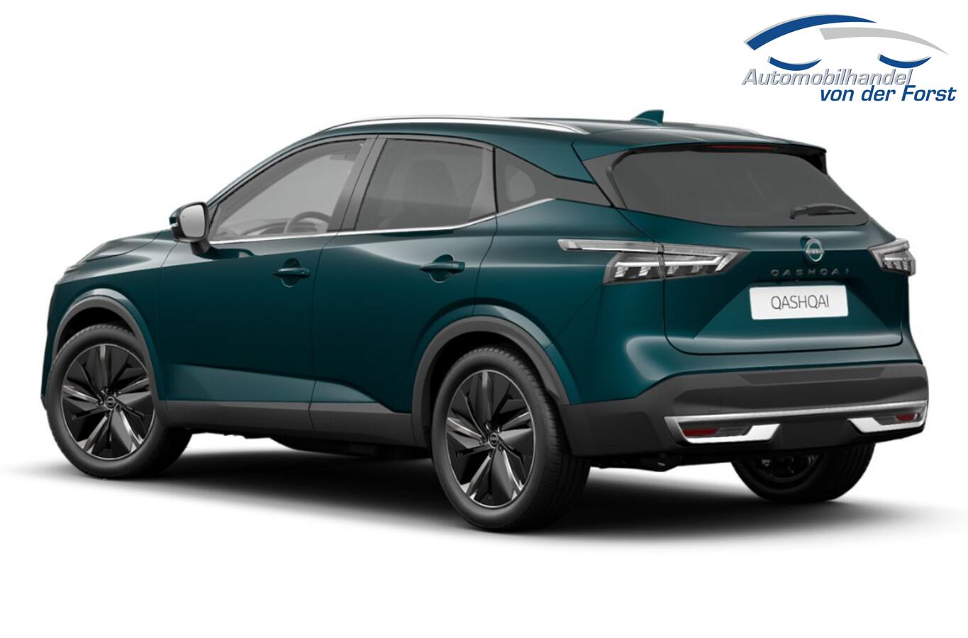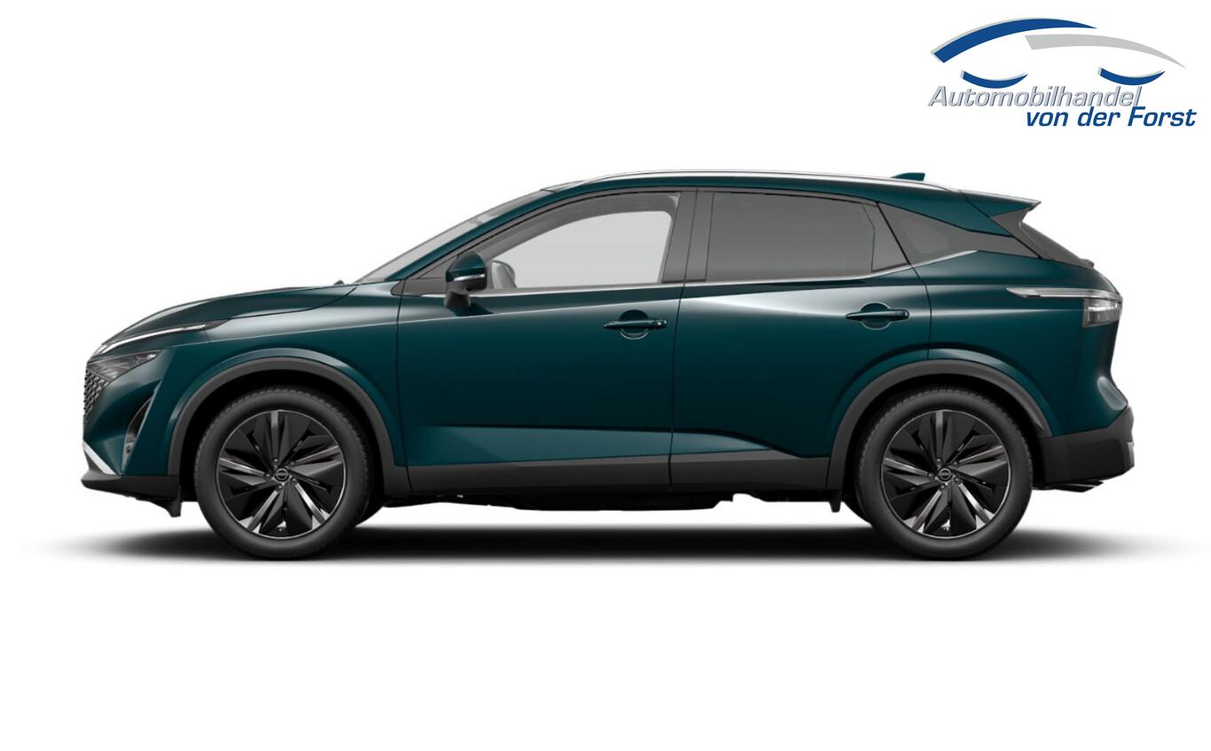 Bluetooth-Freisprechanlage, Dachreling silber, Fahrassistenz-System: Spurverlassungswarnung, Fahrassistenz-System: Stau-Pilot, Fahrassistenz-System: Verkehrszeichenerkennung, Getränkehalter vorn, LM-Felgen 19 Zoll, Mittelarmlehne vorn, Navigation in Verbindung mit dem Smartphone (über Apple Carplay / Android Auto /...), Nissan Herstellgarantie 3 Jahre / 100.000km, Radioempfang digital (DAB), Reifen 235/50 R19, Schadstoffarm nach Abgasnorm Euro 6e (EU6 EA), Sitzbezug / Polsterung: Kunstleder, schwarz, Wegfahrsperre, Zentralverriegelung mit Fernbedienung, Business-Paket (Induktionsladeschale für Smartphone / Heckklappe/-Deckel elektr. betätigt (Öffnung, sensorgesteuert)), Komfort-Paket (1) (Außenspiegel elektr. verstellbar, mit Memoryfunktion rechts / Lendenwirbelstütze Sitz vorn rechts / Sitz vorn links elektr. verstellbar (mit Memory) / Head-up-Display / Heckklappe/-Deckel elektr. betätigt (Öffnung, sensorgesteuert) / Außenspiegel elektr. verstellbar, mit Memoryfunktion links / Außenspiegel mit autom. Absenkfunktion), Ausstattungs-Paket: Nissan Connect Navigationssystem mit Around View Monitor (Smartphone kabellose Schnittstelle (Apple CarPlay & Android Auto) / Sprachbediensystem Spracherkennung / Kamerasystem Around View / Service-System: Google Services / Service-System: Nissan Connect Services / Einparkhilfe vorn und hinten), Multimedia-System Nissan Connect (6 Lautsprecher / Audiosystem / Smartphone kabellose Schnittstelle (Apple CarPlay & Android Auto) / Service-System: Google Services / Service-System: Nissan Connect Services), Schließ-/Startsystem intelligent key (Keyless-Entry / Start-Stop-Knopf), Lenkrad (Leder) mit Multifunktion (Audiobedienung am Lenkrad), Winter-Paket (Lenkrad heizbar / Sitzheizung vorn / Frontscheibe heizbar), Ambiente-Beleuchtung, Ambiente-Beleuchtung erweitert, Dachantenne im Haifischflossen-Design, Dachhimmel schwarz, Elektr. Bremskraftverteilung (EBD), Geschwindigkeits-Begrenzeranlage, Innenspiegel mit Abblendautomatik, Instrumentenanzeige TFT-Farbdisplay (12,3 Zoll), Karosserie: 5-türig, Kofferraumbeleuchtung, Lendenwirbelstütze Sitz vorn links, elektr. verstellbar, Lenksäule (Lenkrad) höhen-/längsverstellbar, Mild-Hybrid 116 kW (Motor 1,3 Ltr. - 116 kW DIG-T MHEV), Mittelarmlehne hinten mit Getränkehalter, Notbrems-Warnblinkautomatik, Otto-Partikelfilter (OPF), Parkbremse elektrisch, Radstand 2666 mm, Schalt-/Wählhebelgriff Leder, Scheibenwischer mit Intervallschaltung, Sitz vorn links höhenverstellbar, Sitz vorn rechts höhenverstellbar, Sonnenblenden mit Spiegel (beleuchtet), Steckdose (12V-Anschluß) im Koffer-/Laderaum, Touchscreen-Farbdisplay (12,3 Zoll), Navigationssystem, USB-Anschluss im Fond, USB-Schnittstelle, Anti-Blockier-System (ABS), Fahrassistenz-System: Moving Object Detection (MOD, Fußgängererkennung und bewegliche Objekterkennung), Antriebsart: Frontantrieb, Elektron. Stabilitäts-Programm (ESP), Getriebe Automatik stufenlos - X-Tronic-CVT, Klimaautomatik 2-Zonen, Airbag Fahrer-/Beifahrerseite, Fensterheber elektrisch vorn + hinten, Isofix-Aufnahmen für Kindersitz, Kopf-Airbag-System, Rücksitz geteilt/klappbar, Seitenairbag, Verglasung hinten abgedunkelt, Fahrmodusschalter, Around View Monitor (360° Umgebungsansicht), Auto-Hold-Funktion, Fahrassistenz-System: Auffahrwarnsystem (Forward Collision Warning, FCW), Fahrassistenz-System: Berganfahr-Assistent, Geschwindigkeits-Regelanlage (Tempomat) mit Abstandsregelung, Rückfahrkamera, Fahrassistenz-System: Sicherheitssystem ERA GLONASS mit automatischem Notruf, Lenkrad mit Schaltwippen/-tasten, Außenspiegel elektr. anklappbar, Außenspiegel elektr. verstell- und heizbar, Automatische Fahrlichtschaltung, Fahrassistenz-System: Adaptiver Fernlichtassistent, Fahrassistenz-System: Totwinkel-Assistent, Heckleuchten LED (Super rot), Scheibenwischer mit Regensensor, Scheinwerfer Voll-LED, Fahrassistenz-System: aktiver Spurhalteassistent, mit korrigierendem Bremseingriff, Fahrassistenz-System: Autonomer Notbrems-Assistent, Fahrassistenz-System: Müdigkeitserkennungs-Sensor, Fahrassistenz-System: Querverkehrs-Assistent Heck (Rear Cross Traffic Alert, RCTA), Reifendruck-Kontrollsystem, Start/Stop-Anlage