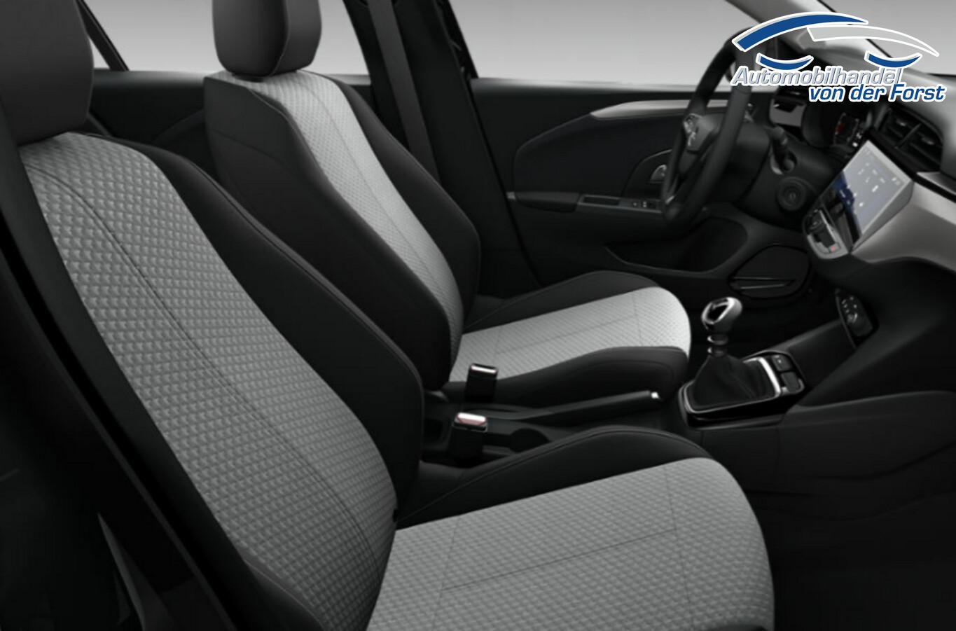 Scheinwerfer LED (Blinkleuchten LED in Außenspiegel integriert / Fahrassistenz-System: Fernlichtassistent / Tagfahrlicht LED), Komfort-Paket (Fahrzeugschlüssel (2) beide klappbar / Komfortsitze vorn / Lenkrad heizbar / Mittelarmlehne vorn mit Ablagefach / Sitzheizung vorn / Lenkrad (Leder, vegan) mit Multifunktion), Rückfahrkamera mit 180° Umgebungsansicht (Parkpilotsystem hinten), Sicht-Paket (Innenspiegel mit Abblendautomatik / Einschaltautomatik für Fahrlicht / Scheibenwischer mit Regensensor), 6 Lautsprecher, Audiosystem Infotainmentsystem mit 10 Zoll Farb-Touchscreen, Außenspiegel elektr. anklappbar, Außenspiegel elektr. verstell- und heizbar, Außenspiegel in Wagenfarbe, Beifahrersitz verstellbar (4-fach), Einparkhilfe vorn, Fahrassistenz-System: Notbremsassistent, Fahrersitz verstellbar (6-fach), Farbdisplay (7 Zoll), Fensterzierleiste Schwarz, Freisprecheinrichtung Bluetooth, Getränkehalter vorn (2 stück) und hinten (1 stück), Interieureinsätze Akoya, Lenkrad (Sport, 3-Speichen) mit Multifunktion, Reifen 195/55 R16, Schadstoffarm nach Abgasnorm Euro 6e (EU6EA), Start & Stop System, Totwinkel-Assistent, USB-Schnittstelle, Geschwindigkeits-Regelanlage (Tempomat) inkl. Geschwindigkeits-Begrenzeranlage (Geschwindigkeits-Regelanlage (Tempomat)), DAB-Tuner (Radioempfang digital), Karosserie: 5-türig, Leseleuchten vorn (2), Motor 1,2 Ltr. - 74 kW, Otto-Partikelfilter (OPF), Sitzbezug / Polsterung: Stoff, Anti-Blockier-System (ABS), Elektron. Stabilitäts-Programm Plus (ESP), Getriebe 6-Gang, Klimaanlage, Airbag Fahrer-/Beifahrerseite, Fensterheber vorn elektr. mit Einklemmschutz, Fahrassistenz-System: Verkehrszeichenerkennung, Fahrassistenz-System: Müdigkeitserkennungs-Sensor, Fahrassistenz-System: Spurhalteassistent