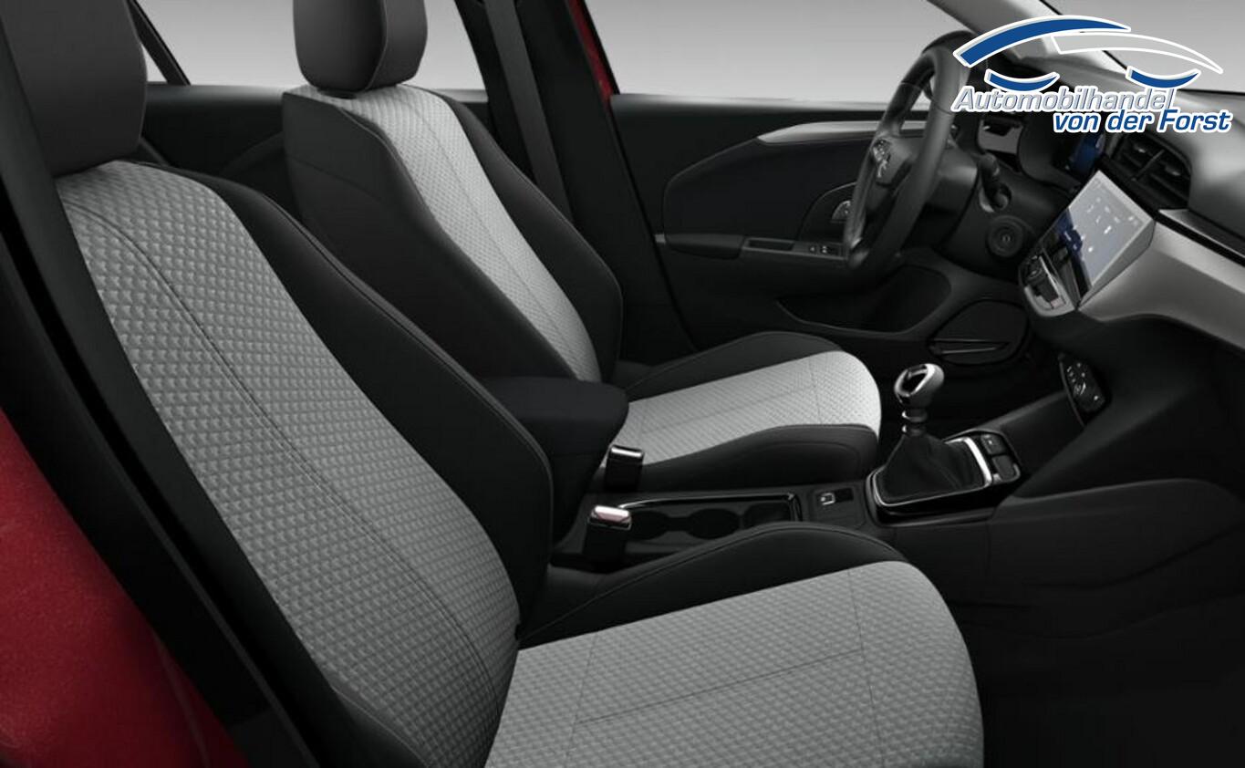Rückfahrkamera mit 180° Umgebungsansicht, Sicht-Paket (Innenspiegel mit Abblendautomatik / Einschaltautomatik für Fahrlicht / Scheibenwischer mit Regensensor), 6 Lautsprecher, Audiosystem Infotainmentsystem mit 10 Zoll Farb-Touchscreen, Außenspiegel elektr. verstell-, heiz- und anklappbar, Außenspiegel in Wagenfarbe, Beifahrersitz verstellbar (4-fach), Einparkhilfe vorn und hinten, Fahrassistenz-System: Notbremsassistent, Fahrassistenz-System: Totwinkel-Assistent, Fahrersitz verstellbar (6-fach), Fensterzierleiste Schwarz, Freisprecheinrichtung Bluetooth, Getränkehalter vorn (2 stück) und hinten (1 stück), Interieureinsätze Akoya, Kombiinstrument digital (7 Zoll), Lenkrad (Sport, 3-Speichen) mit Multifunktion, LM-Felgen 16", LM-Räder 16", 195/55 R16, Reifen 195/55 R16, Schadstoffarm nach Abgasnorm Euro 6e (EU6EA), Start & Stop System, Tech-Paket, Außenspiegel elektr. verstell- und heizbar, elektr. anklappbar, Tech-Paket, Einparkhilfe vorn, Farbdisplay (7 Zoll), Totwinkel Assistent, USB-Schnittstelle, Geschwindigkeits-Regelanlage (Tempomat) inkl. Geschwindigkeits-Begrenzeranlage (Geschwindigkeits-Regelanlage (Tempomat)), DAB-Tuner (Radioempfang digital), Dach Wagenfarbe, Edition, Karosserie: 5-türig, Leseleuchten vorn (2), Motor 1,2 Ltr. - 74 kW, Opel Connect, Otto-Partikelfilter (OPF), Sitzbezug / Polsterung: Stoff, Anti-Blockier-System (ABS), Elektron. Stabilitäts-Programm Plus (ESP), Getriebe 6-Gang, Klimaanlage, Airbag Fahrer-/Beifahrerseite, Fensterheber elektrisch vorn + hinten, Fensterheber vorn elektr. mit Einklemmschutz, Fahrassistenz-System: Verkehrszeichenerkennung, Scheinwerfer LED, Fahrassistenz-System: Müdigkeitserkennungs-Sensor, Fahrassistenz-System: Spurhalteassistent