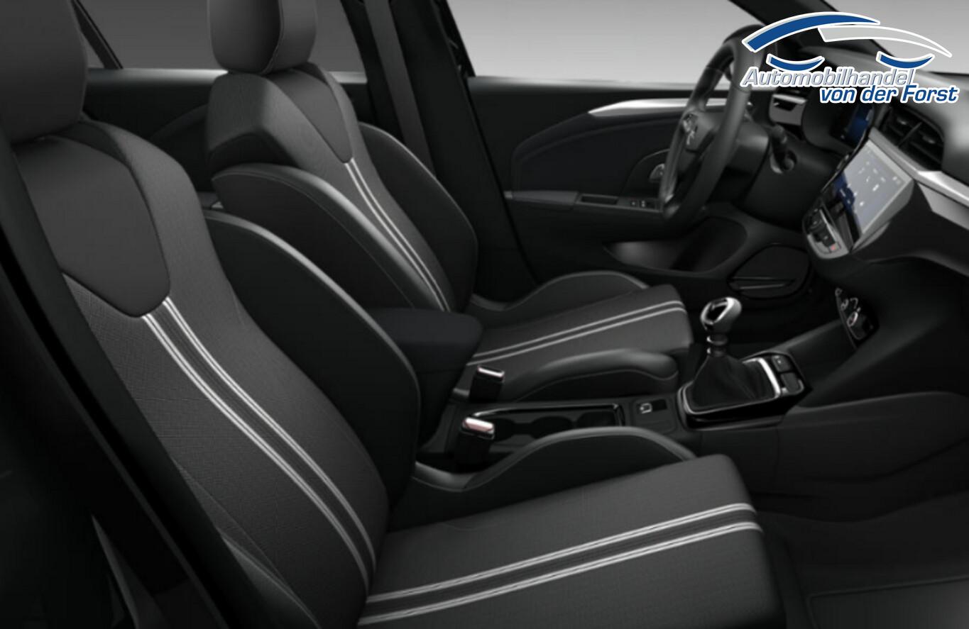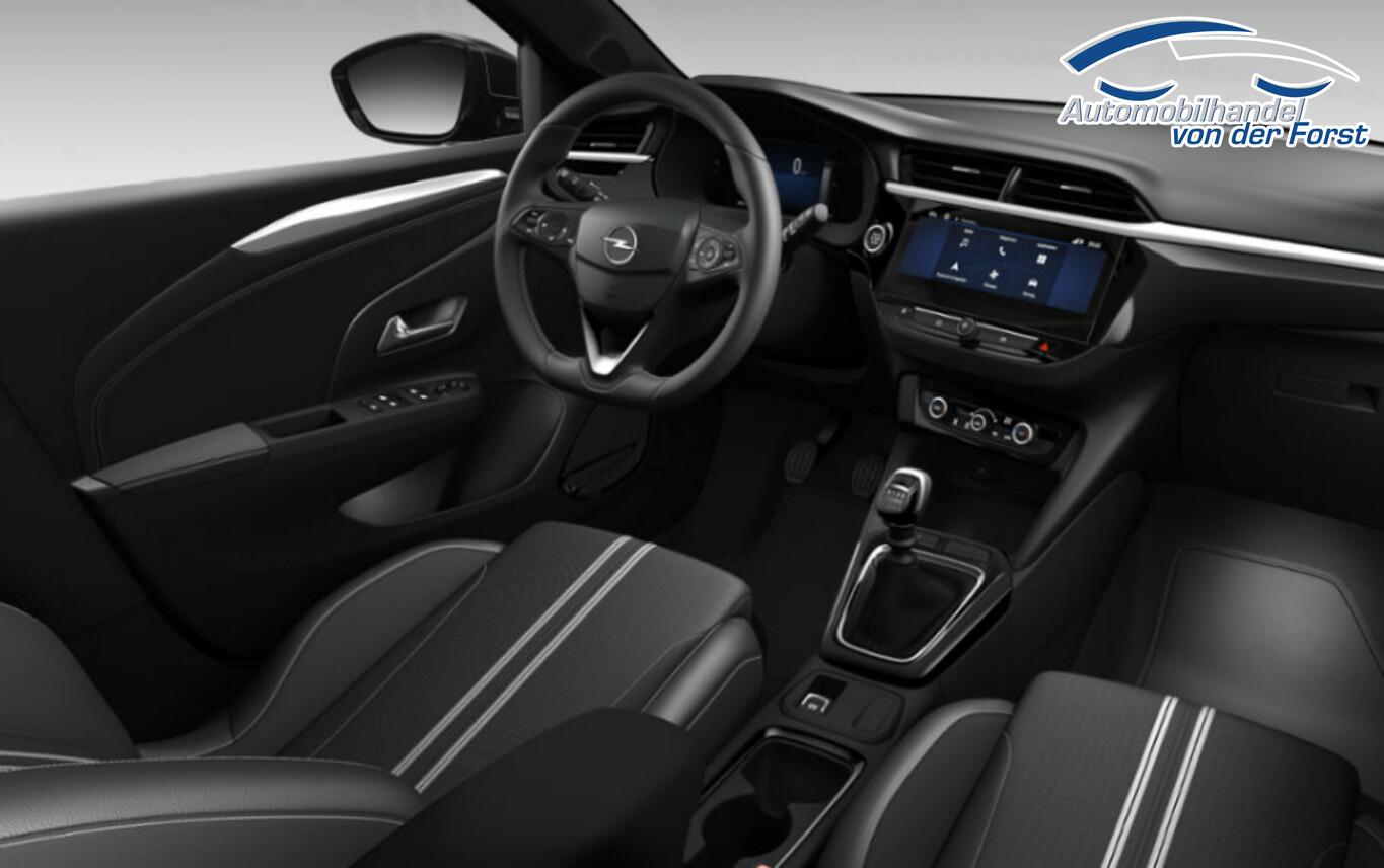 Infotainment-Paket (Ambiente-Beleuchtung LED / DAB-Tuner (Radioempfang digital) / Feststellbremse elektrisch / Induktionsladeschale für Smartphone (Wireless Charging) / Opel Connect / Technologie-Paket Park & Go Plus / Audio-Navigationssystem Multimedia Navi Pro (10" Display) / Smartphone Schnittstelle (Apple CarPlay & Android Auto) / USB-Schnittstelle hinten (2-fach) / Klimaautomatik / Mittelarmlehne vorn mit Ablagefach / Schließ-/Startsystem Keyless Open / Wärmeschutzverglasung hinten abgedunkelt (Solar-Protect) / Rückfahrkamera mit 180° Umgebungsansicht / Außenspiegel elektr. verstell- und heizbar / Außenspiegel elektr. verstell- und heizbar, elektr. anklappbar / Fahrassistenz-System: Totwinkel-Assistent / Parkpilotsystem hinten / Parkpilotsystem vorn und hinten), Beifahrersitz verstellbar (4-fach), Fahrassistenz-System: Autonomer Notbrems-Assistent, Fahrersitz verstellbar (6-fach), Fahrmoduswahl (Eco, Normal, Sport), Fensterzierleiste Schwarz, Freisprecheinrichtung Bluetooth, Heckspoiler Schwarz Glänzend, Lenkrad (3-Speichen, Kunstleder) mit Multifunktion, LM-Felgen 16 Zoll (Tornado Gloss Black), Reifen 195/55 R16, Schadstoffarm nach Abgasnorm Euro 6e (EU6EA), Start & Stop System, USB-Schnittstelle, Sicht-Paket (Innenspiegel mit Abblendautomatik / Einschaltautomatik für Fahrlicht / Scheibenwischer mit Regensensor), Geschwindigkeits-Regelanlage (Tempomat) inkl. Geschwindigkeits-Begrenzeranlage (Geschwindigkeits-Regelanlage (Tempomat)), Scheinwerfer LED (Blinkleuchten LED in Außenspiegel integriert / Leuchtweitenregelung / Fahrassistenz-System: Fernlichtassistent / Tagfahrlicht LED), 6 Lautsprecher, B-Säulen schwarz Hochglanz (außen), Dachhimmel schwarz, Farbdisplay (7 Zoll), Heckscheibenwischer, Karosserie: 5-türig, Leseleuchten vorn (2), Motor 1,2 Ltr. - 74 kW, Otto-Partikelfilter (OPF), Sitzbezug / Polsterung: Stoff, Stoßfänger Sport-Design, Stoßfänger Wagenfarbe, Türgriffe außen Wagenfarbe, Türgriffe innen verchromt, Anti-Blockier-System (ABS), Elektron. Stabilitäts-Programm Plus (ESP), LM-Felgen 6,5x16 (4-Doppelspeichen, Diamond Cut), Getriebe 6-Gang, Airbag Fahrer-/Beifahrerseite, Fensterheber elektrisch vorn + hinten, Fensterheber vorn elektr. mit Einklemmschutz, Sportsitze vorn, Fahrassistenz-System: Verkehrszeichenerkennung, Heckleuchten LED, Einparkhilfe vorn und hinten mit Parksensoren seitlich, Fahrassistenz-System: Müdigkeitserkennungs-Sensor, Fahrassistenz-System: Spurhalteassistent