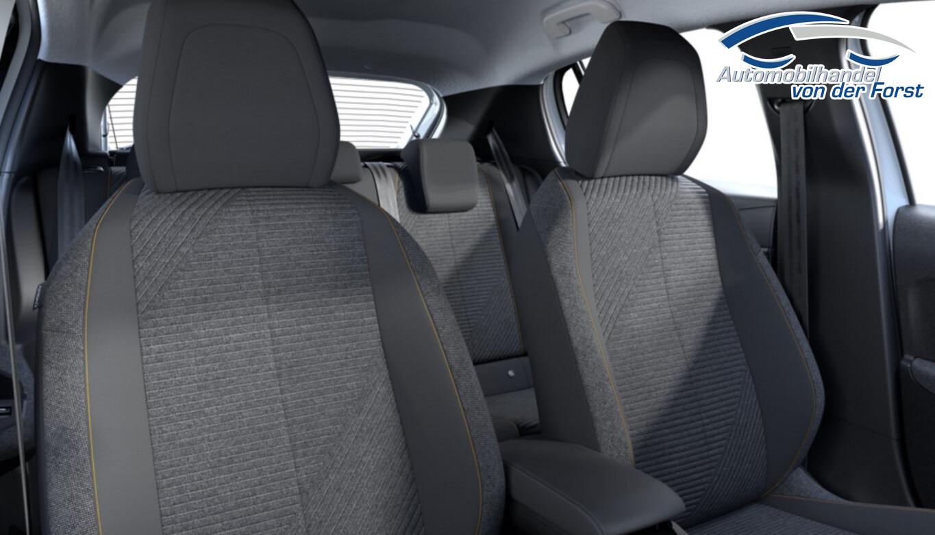 Einparkhilfe hinten, 12V-Steckdose, 6 Lautsprecher, Außenspiegel elektr. verstell- und heizbar, Bluetooth-Freisprechanlage, Fahrassistenz-System: Spurhalteassistent, Infotainment-System inkl. 10"-Touchscreen, Kopf-Airbag-System vorn, Lenkrad mit Schaltwippen, Navigation in Verbindung mit dem Smartphone (über Apple Carplay / Android Auto /...), Reifen 195/55 R16, Smartphone-Schnittstelle (Apple CarPlay / Android Auto), Stahlfelgen 16 Zoll, USB-Schnittstelle, Radioempfang digital (DAB+) (Radioempfang digital), Sitzbezug / Polsterung: Stoff (Innenausstattung: Ziernähte farbig), Fensterheber elektrisch vorn (Fensterheber elektrisch vorn links), Zentralverriegelung mit Fernbedienung (Fernbedienung für Zentralverriegelung), Außenspiegel mit Abdeckkappen schwarz, Elektr. Bremskraftverteilung, Fensterheber elektrisch hinten, sequentiell, mit Einklemmschutz, Frontscheibe geräuschdämmend, Innenraumfilter: Staub- und Pollenfilter, Karosserie: 5-türig, Kartentasche an Vordersitze, Mild-Hybrid 81 kW (Motor 1,2 Ltr. - 74 kW), Mobile Online Dienste Mirror Screen, Otto-Partikelfilter (GPF), Reifen-Reparaturkit, Sitz vorn links höhenverstellbar, Türgriffe außen Wagenfarbe, Warnanlage für Sicherheitsgurte, Anti-Blockier-System (ABS), Fahrassistenz-System: Aktiver Notbrems-Assistent (Active Safety Brake), Antischlupfregelung (ASR), Elektron. Stabilitäts-Programm (ESP, Bosch), Getriebe Automatik - Doppelkupplungsgetriebe (6-Stufen, Hybrid), Klimaanlage, Airbag Beifahrerseite abschaltbar, Airbag Fahrer-/Beifahrerseite, Isofix-Aufnahmen für Kindersitz, Kopf-Airbag-System hinten, Seitenairbag vorn, Zentralverriegelung inkl. Türverriegelung automatisch, Bordcomputer, Fahrassistenz-System: Berganfahrhilfe, Fahrassistenz-System: Verkehrszeichenerkennung, Geschwindigkeits-Regelanlage (Tempomat) inkl. Geschwindigkeits-Begrenzeranlage, Peugeot Connect-Box / SOS-Taste (Notruf für Lokalisierung Fahrzeug), Lenkrad (Leder), Lenkrad mit Multifunktion, Servolenkung elektrisch, Einschaltautomatik für Fahrlicht, Scheinwerfer Eco-LED, Tagfahrlicht LED, Fahrassistenz-System: Müdigkeitserkennungs-Sensor, Reifendruck-Kontrollsystem