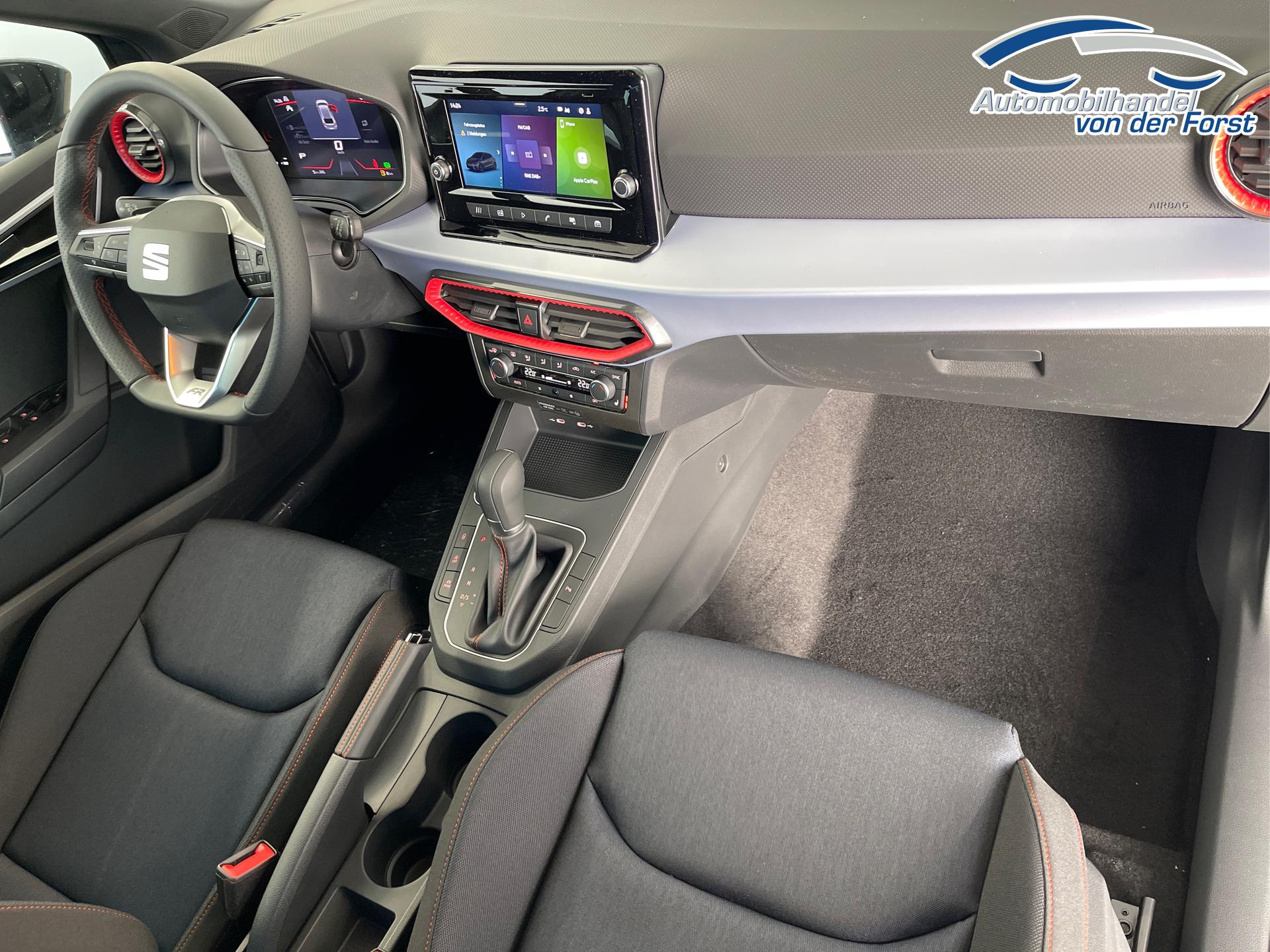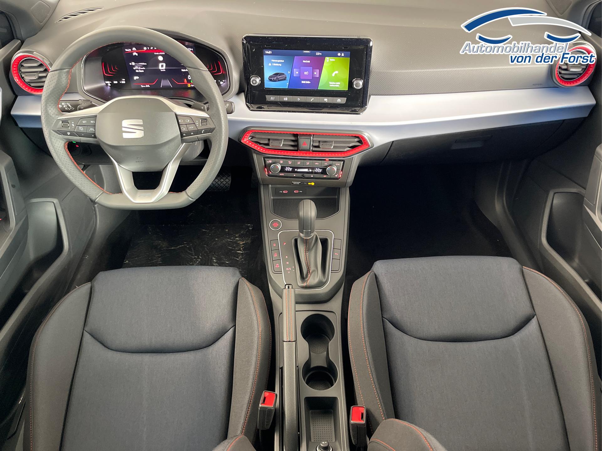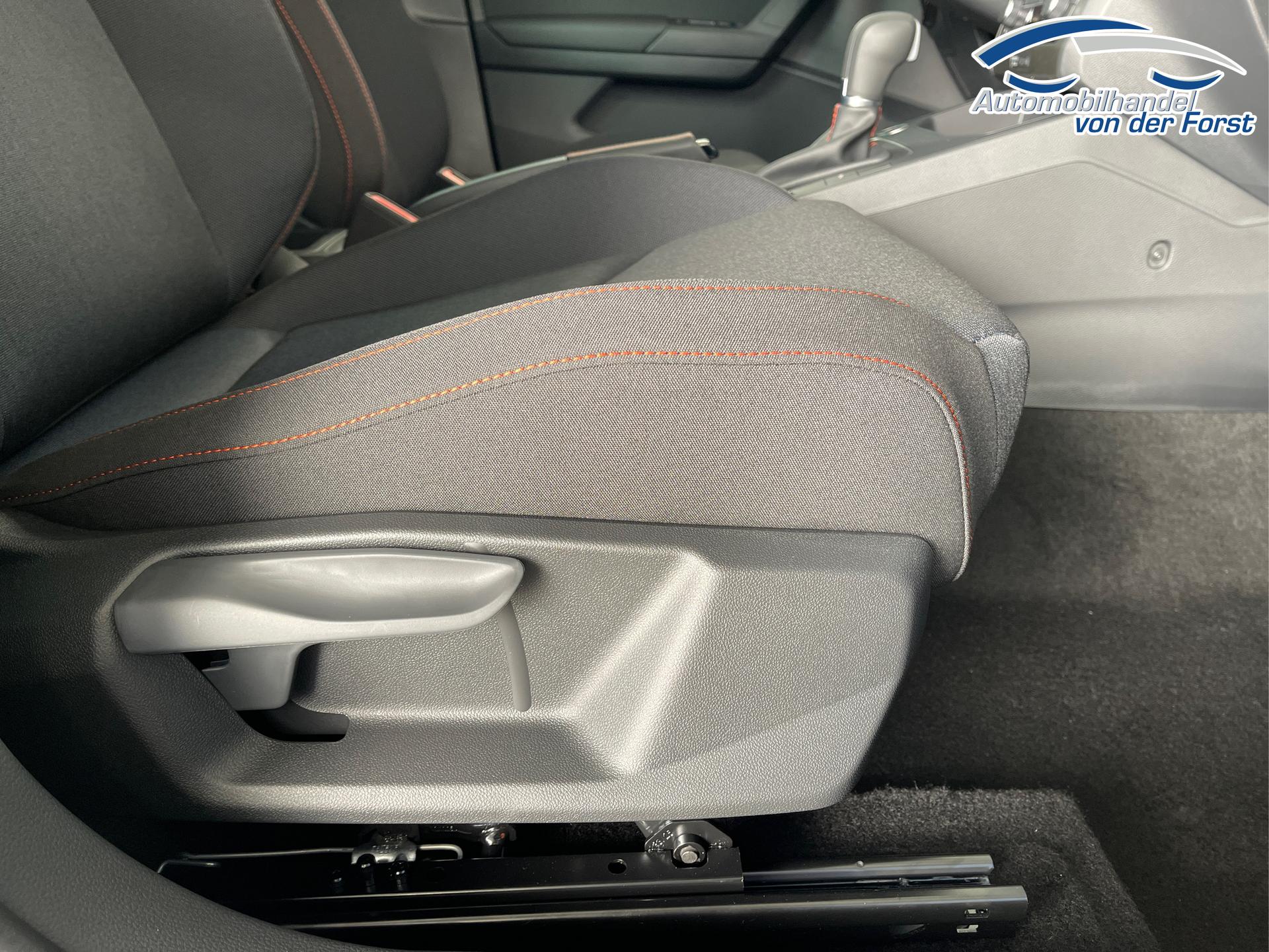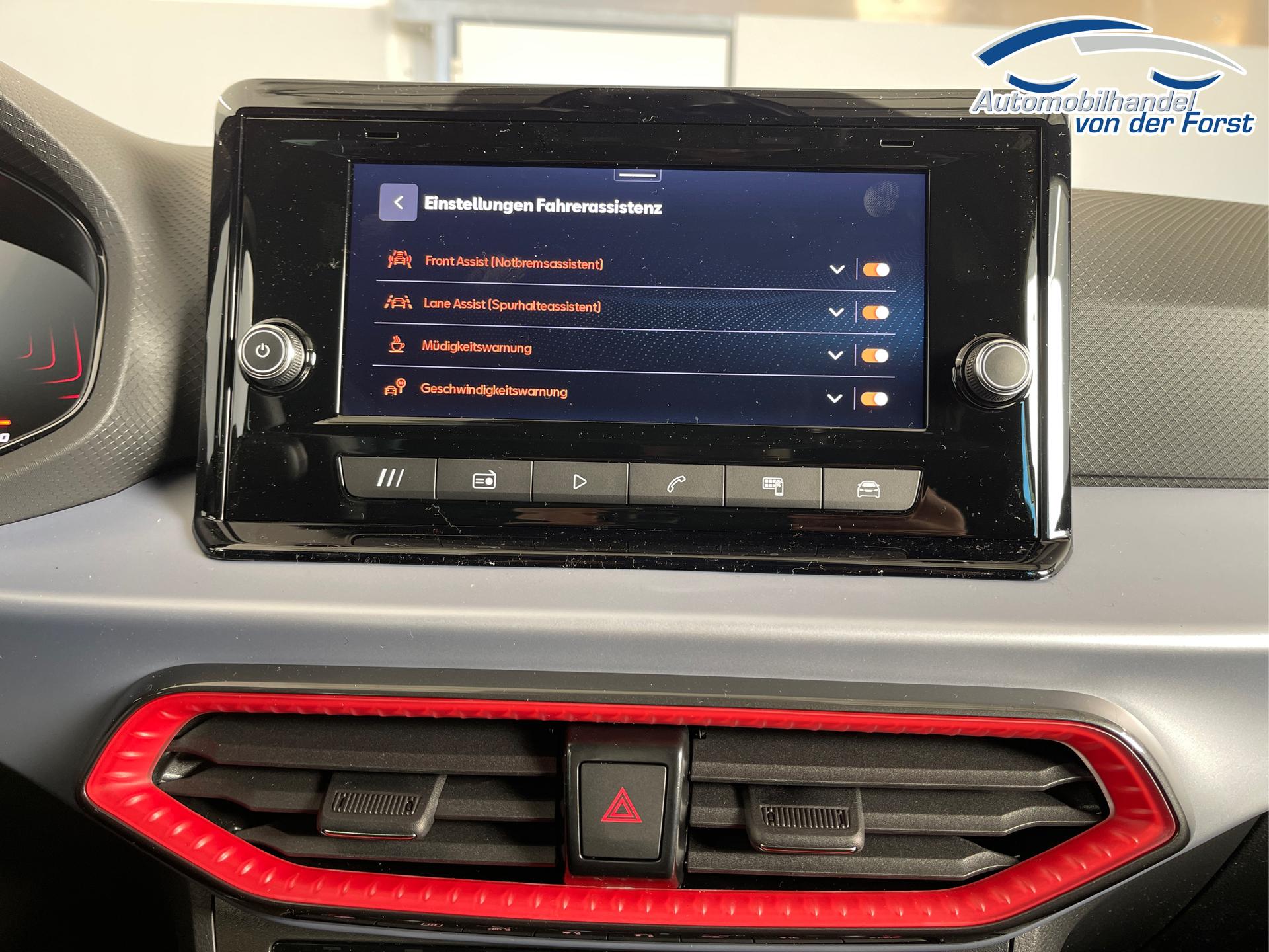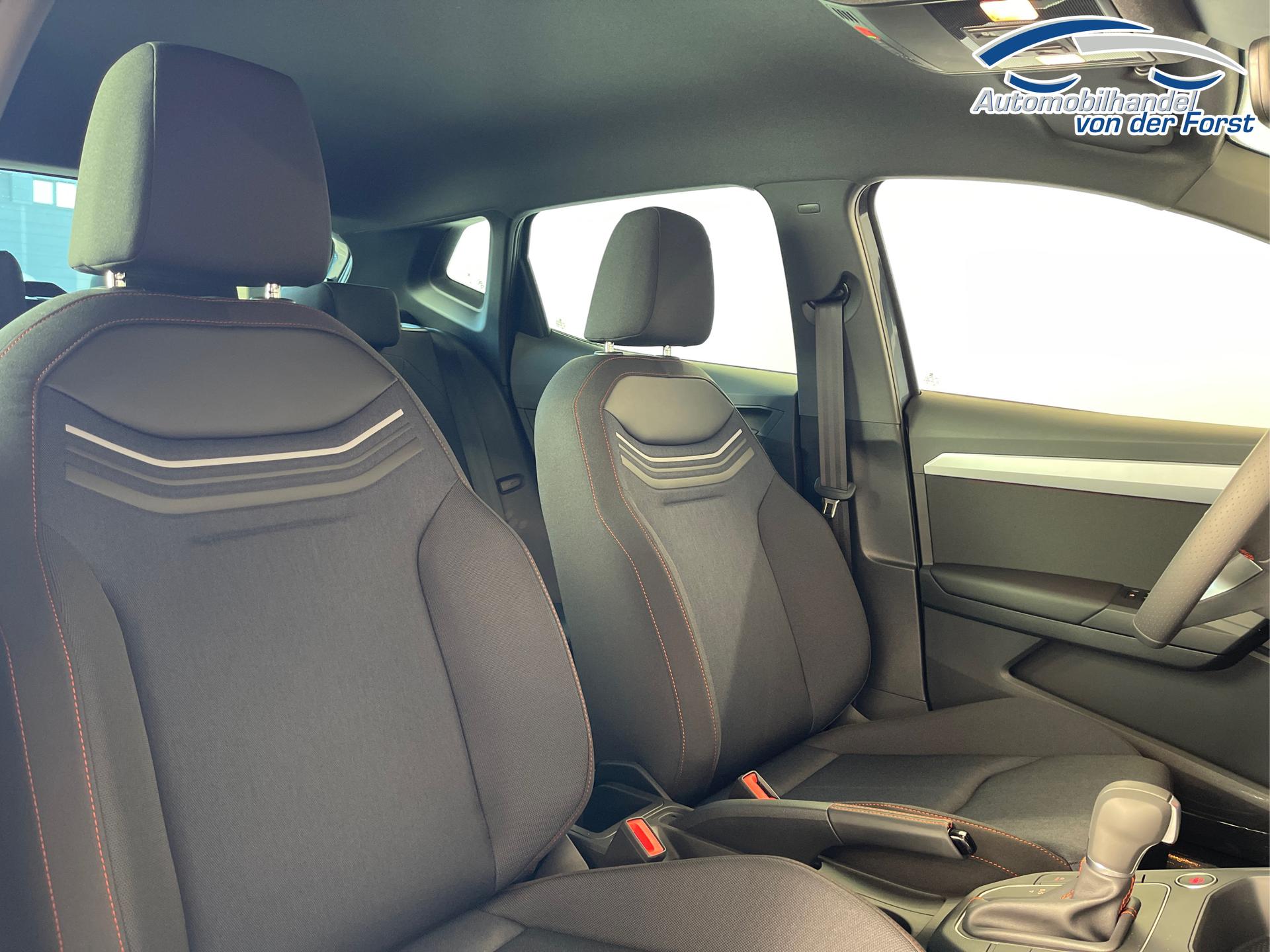 • LED-Scheinwerfer inkl. LED-Tagfahrlicht, Außenspiegel elektrisch einstell- und beheizbar, LED-Rückleuchten, Nebelscheinwerfer, Ambientebeleuchtung, Klimaanlage Climatronic, Fensterheber elektrisch, farbige Lüftungsdüsen in der Armaturentafel, Rücksitzlehne geteilt umklappbar, Schalthebelknauf in Leder, Vordersitz höhenverstellbar, Handbremshebelgriff in Leder, Multifunktions-Lederlenkrad, Sportsitze vorn, Dreipunkt-Sicherheitsgurte, Airbag für Fahrer und Beifahrer, Seitenairbag vorn mit Kopfairbag, ESC, ABS, ASR, Zentralverriegelung mit Funkfernbedienung, Front Assist inkl. City-Notbremsfunktion, Isofix, Spurhalteassistent, Müdigkeitserkennung, Radio 8,25 Zoll Farb-Touchscreen, USB-C Schnittstelle, Freisprecheinrichtung Bluetooth, Digitaler Radioempfang DAB+, Fahrprofilauswahl, Digital Cockpit (8 Zoll, Bordcomputer), SEAT CONNECT (Sicherheit, Service und Fernzugriff), Verkehrszeichenerkennung, Wegfahrsperre, Servolenkung