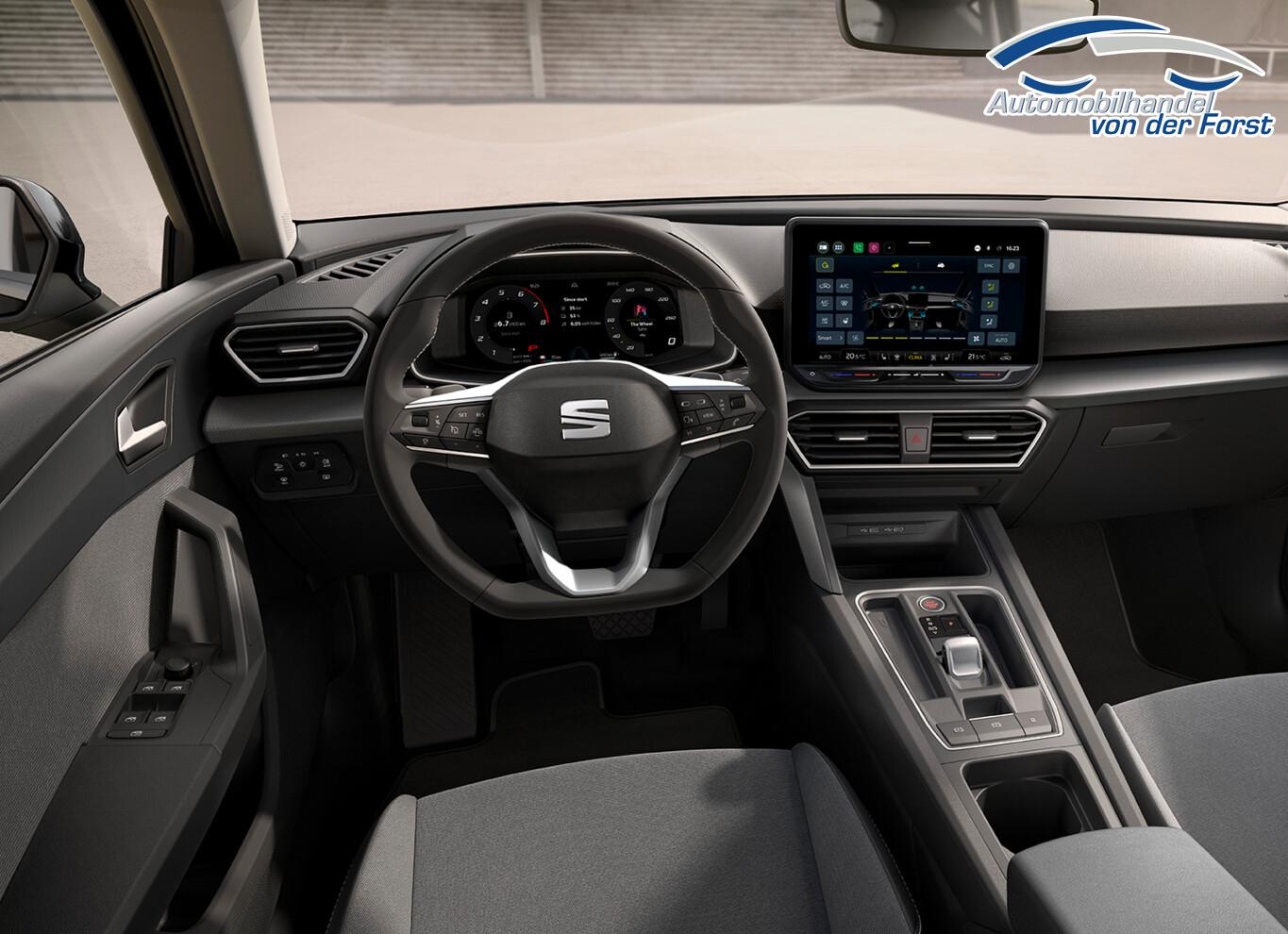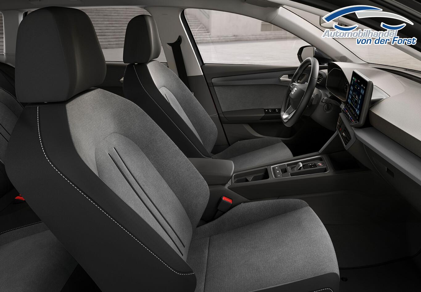 Vision-Paket Plus (Rückfahrkamera / Fahrassistenz-System: Parklenkassistent mit Einparkhilfe vorn und hinten), Winter-Paket (Lenkrad heizbar / Sitzheizung vorn), Klimaanlage Climatronic 3-Zonen (Heizungsregelung automatisch / elektronisch / USB-Ladeanschlüsse (2-fach, Typ C) für 2.Sitzreihe / USB-Schnittstelle vorn (2-fach, Typ C) / Mittelarmlehne vorn), Fahrassistenz-Paket M (Fahrassistenz-System: Autom. Distanzregelung (ACC / PCC) mit vorausschauender Geschw.-Regelung / Fahrassistenz-System: Fernlichtassistent), Licht- und Sicht-Paket (Innenspiegel mit Abblendautomatik / Einschaltautomatik für Fahrlicht / Licht- und Regensensor / Lichtassistent (Coming Home, Leaving Home)), Full Link (MirrorLink, Apple CarPlay und Android Auto), Reserverad als Notrad, Lenkrad heizbar (Leder) mit Multifunktion und Schaltfunktion, Ambiente-Beleuchtung, Isofix-Aufnahmen für Kindersitz an Rücksitz, LM-Felgen 7x16, Navigation in Verbindung mit dem Smartphone (über Apple Carplay / Android Auto /...), Serviceintervall 30.000 km oder 2 Jahre, Sitz vorn rechts höhenverstellbar, Sommerreifen 205/55 R16, Sprachsteuerungs-System, Media-Paket Plus (Audiosystem mit 10,4" Touchscreen-Farbdisplay / Mobile Online Dienste Seat Connect / USB-Schnittstelle vorn (2-fach, Typ C)), Ablagetasche an Vordersitzlehnen, Außenspiegel Wagenfarbe, Automatik-Sicherheitsgurte vorn und hinten, Bluetooth Audio-Streaming, Gepäckraumabdeckung / Rollo, Karosserie: 5-türig, Kopfstützen hinten (3-fach), Kopfstützen vorn, Laderaumboden variabel und herausnehmbar, Lendenwirbelstütze Sitz vorn links und rechts, Leseleuchten vorn und hinten, Mild-Hybrid 85 kW (Motor 1,5 Ltr. - 85 kW eTSI), Parkbremse elektrisch mit Auto-Hold-Funktion, Radioempfang digital (DAB+), Sitz vorn links höhenverstellbar, Sitzbezug / Polsterung: Stoff, Sonnenblende links mit Spiegel (beleuchtet), Sonnenblende rechts mit Spiegel (beleuchtet), Warnanlage für Sicherheitsgurt-System, Bluetooth-Schnittstelle mit Freisprecheinrichtung integriert, Anti-Blockier-System (ABS), Antriebs-Schlupfregelung (ASR), Antriebsart: Frontantrieb, Elektron. Querdifferentialsperre (XDS), Elektron. Stabilitätskontrolle (ESC), Wegfahrsperre (elektronisch), Getriebe 7-Gang - Doppelkupplungsgetriebe DSG, Airbag Beifahrerseite abschaltbar, Airbag Fahrer-/Beifahrerseite, Durchladeeinrichtung (Mittelarmlehne hinten), Fensterheber elektrisch vorn + hinten mit Komfortschaltung, Kopf-Airbag-System, Rücksitzlehne geteilt/klappbar (1/3-2/3), Rücksitzlehnen umklappbar mit Fernentriegelung im Kofferraum, Seitenairbag, Seitenairbag vorn mitte (Central Airbag), Dachreling schwarz, Wärmeschutzverglasung, Fahrassistenz-System: Verkehrszeichenerkennung, Notrufsystem, Servolenkung elektro-mechanisch, Außenspiegel elektr. verstell- und heizbar, beide, Blinkleuchten LED in Außenspiegel integriert, Heckleuchten LED, Nebelscheinwerfer LED mit Abbiegelicht, Scheinwerfer LED, Tagfahrlicht LED, Fahrassistenz-System: Müdigkeitserkennung, Fahrassistenz-System: Spurhalteassistent, Fahrassistenz-System: Umfeldbeobachtungssystem (Front assist) mit City-Notbremsfunktion, Reifenkontroll-Anzeige