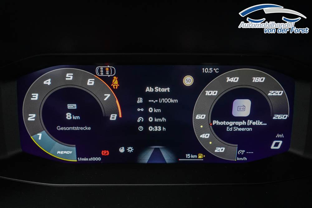 Beifahrersitz höhenverstellbar, Fahrersitz höhenverstellbar, Lederlenkrad, Lendenwirbelstütze, Mittelarmlehne vorne, Sitzbezug Stoff, Gepäckraumabdeckung, Lenkrad höhenverstellbar, Ambiente-Beleuchtung, Beheizbares Lenkrad, Multifunktionslenkrad, Isofix, Isofix Beifahrersitz, abgedunkelte Scheiben, 16 Zoll Alufelgen, ABS, Außenspiegel elektrisch anklappbar, Fensterheber elektrisch, Seitenairbags, Servolenkung, Sitzheizung, ESP, Tempomat, Wegfahrsperre, Beifahrerairbag, Fahrerairbag, Parkpilot hinten, Parkpilot vorne, Reifendruckkontrolle, Regensensor, Lichtsensor, Digital Cockpit, Spurhalteassistent, Verkehrszeichenerkennung, Matrix LED-Scheinwerfer, Tagfahrlicht, Pannenset, Rückfahrkamera, Park-Assistent, KeylessEntry, StartStopSystem, Notrufsystem, Klimaautomatik 3-Zonen, Android Auto, Apple Carplay, Freisprecheinrichtung, Sprachsteuerung, USB, Radio, Radio DAB, Bluetooth, Bordcomputer, erweiterte Herstellergarantie 5 Jahre/100.000km, Media System 10,4 Zoll, Full Link, AHK Vorbereitung,