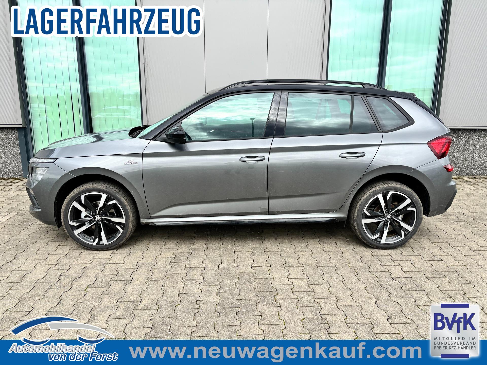 Skoda Kamiq "Monte Carlo" (1) LIEFERUNG KOSTENLOS! 1.0 TSI 115PS DSG, GRAU-MET/Dach schwarz, 18" ALU, AHK-VORBEREITUNG, Panoramadach, Matrix-LED, Parksensoren v/h, Kamera, Tempomat, Virtual Cockpit (8"!!), Kessy, Winter-Paket, Climatronic, Radio 8", SmartLink, NSW, Sport-M-Lederlenkrad beheizt, Dachreling