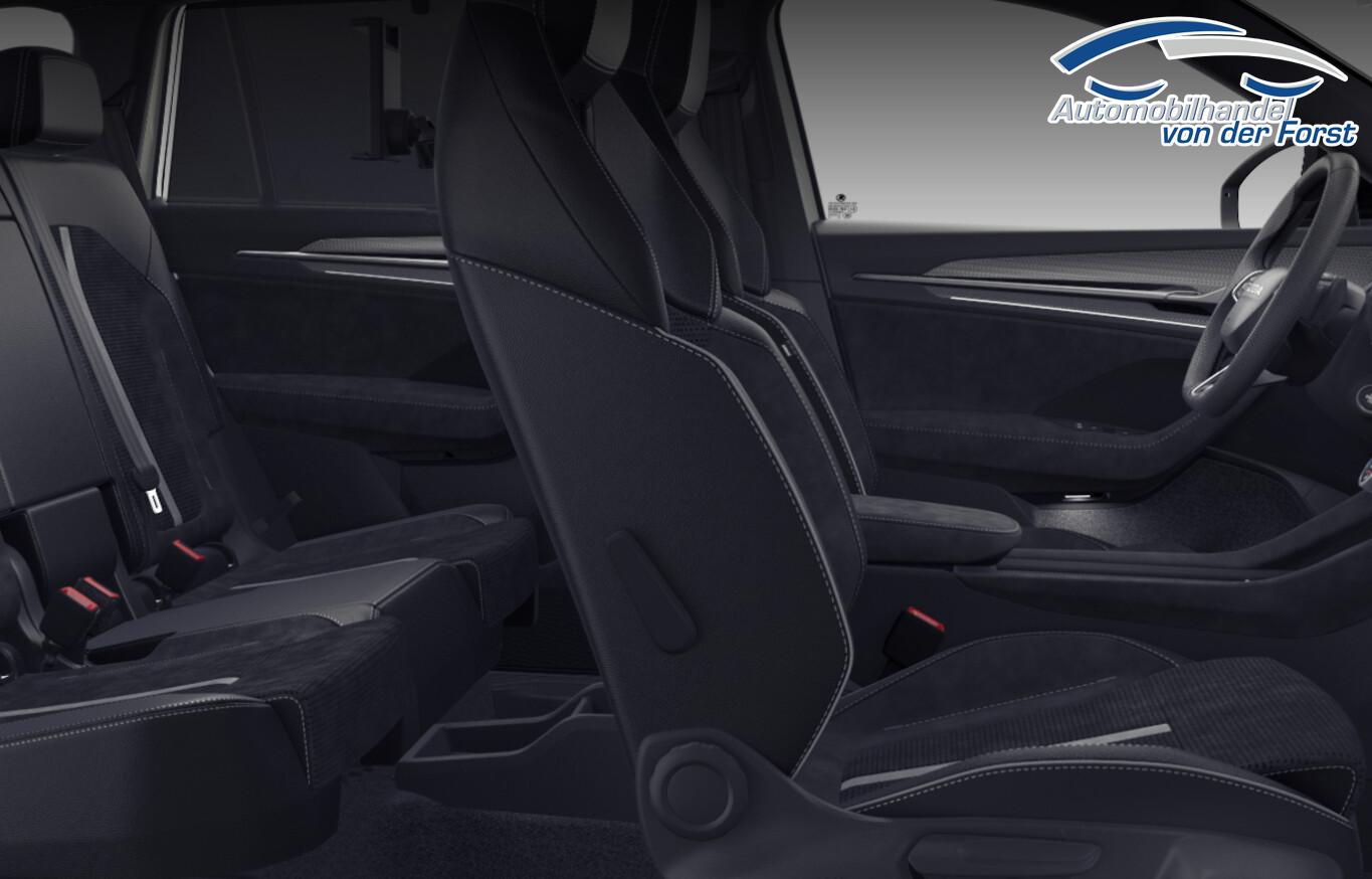 3.Sitzreihe (2 Sitze zusätzlich), Fahrassistenz-Paket (Fahrassistenz-Paket: Travel Assist / Fahrassistenz-Paket: Stau- und Notfallassistent / Fahrassistenz-System: Autom. Distanzregelung (pACC) mit vorausschauender Geschw.-Regelung / Fahrassistenz-System: aktiver Spurhalteassistent (Lenkunterstützung) / Insassen-Schutzsystem proaktiv), Ausstattungs-Paket: Family (Abfallbehälter / Ablagebox hinten / Tablet-Halterung / Sonnenschutzrollo an Seitenscheiben hinten), Winter-Paket (Sitzheizung hinten), 12V Steckdose, Ablagebox im Gepäckraum, Allwetter-, Kurven- und Autobahnlicht, Heckspoiler, Infotainment-System mit 13 Zoll Farb-Display, Innenbeleuchtung vorn und hinten, Kofferraum / Heckklappe elektrisch betätigt (öffnen + schliessen), Lendenwirbelstütze pneumatisch verstellber vorn links, Lendenwirbelstütze vorn rechts, Lichtassistent (Coming, Leaving Home), Lichtautomatik mit Abbiegelicht (AFS), LM-Felgen 7,5x19 "Tirsuli", Navigationssystem 13 Zoll, Radioempfang Digigtal (DAB), Radschrauben diebstahlhemmend, Reifen 235/50 R19, Schadstoffarm nach Abgasnorm Euro 6e (EU6EA), Seitenscheiben hinten und Heckscheibe abgedunkelt (SunSet), Sitzbezug / Polsterung: Microfaser/ Kunstleder, Stoßfänger Sport, Tagfahrlicht, Vorbereitung für Skoda Connect, Licht- und Sicht-Paket (Fahrassistenz-System: Dynamischer Fernlichtassistent (Dynamic Light Assist) / Heckleuchten LED (Kristallglas-Optik) / Heckleuchten LED mit dynamischem Blinklicht / Matrix-LED-Scheinwerfer), Zentralverriegelung (Fernbedienung für Zentralverriegelung), 8 Lautsprecher, Ambiente-Beleuchtung LED, Anhängerkupplung Vorbereitung, Außenspiegel schwarz lackiert, Dachreling schwarz, hochglänzend, Edelstahlpedale Sportdesign, Einstiegsleisten (Edelstahl), Fahrassistenz-System: Abbiegebremsfunktion und Ausweichunterstützung, Fensterzierleisten schwarz, hochglänzend, Karosserie: 5-türig, Kombiinstrument digital (virtual cockpit plus), Kopfstützen hinten, Kopfstützen vorn, Lehnenentriegelung der Rücksitzlehne im Kofferraum, Mild-Hybrid 110 kW (Motor 1,5 Ltr. - 110 kW TSI mHEV), Mild-Hybrid-Technologie, Otto-Partikelfilter (OPF), Radstand Standard, Reifen-Reparaturkit, Sonnenblenden mit Spiegel (LED-Beleuchtung), Warnanlage für Sicherheitsgurte hinten, Warnanlage für Sicherheitsgurte, Fahrer-/Beifahrerseite, USB-Schnittstelle vorn (2-fach, Typ C), Wireless SmartLink, Anti-Blockier-System (ABS), Bremsassistent, Antriebsart: Frontantrieb, Elektron. Stabilitäts-Programm (ESP), Getriebe 7-Gang - Doppelkupplungsgetriebe DSG, Klimaanlage Climatronic 3-Zonen, Airbag Beifahrerseite abschaltbar, Airbag Fahrerseite, Isofix-Aufnahmen für Kindersitz an Beifahrersitz, Isofix-Aufnahmen für Kindersitz an Rücksitz, Kopf-Airbag-System, Rücksitzlehne geteilt/klappbar, Schließ-/Startsystem Kessy inkl. Diebstahl-Warnanlage, Seitenairbag vorn, Seitenairbag vorn mitte (Center-Airbag), Sitzheizung vorn, Sportsitze, Fahrassistenz-System: Auffahrwarnsystem mit City-Notbremsfunktion (Frontradar-Assistent), Fahrassistenz-System: Berganfahr-Assistent (Hill-Holder), Fahrassistenz-System: Verkehrszeichenerkennung, Rückfahrkamera, Lenkrad heizbar (Sport/Leder) mit Multifunktion und Schaltfunktion, Servolenkung, Einparkhilfe vorn und hinten, Fahrassistenz-System: Müdigkeitserkennung, Fahrassistenz-System: Spurhalteassistent (Lane Assist), Fahrassistenz-System: Spurwechselassistent inkl. Auspark-Assistent und Ausstiegswarnung, Reifendruck-Kontrollsystem (Aktiv), Start/Stop-Anlage