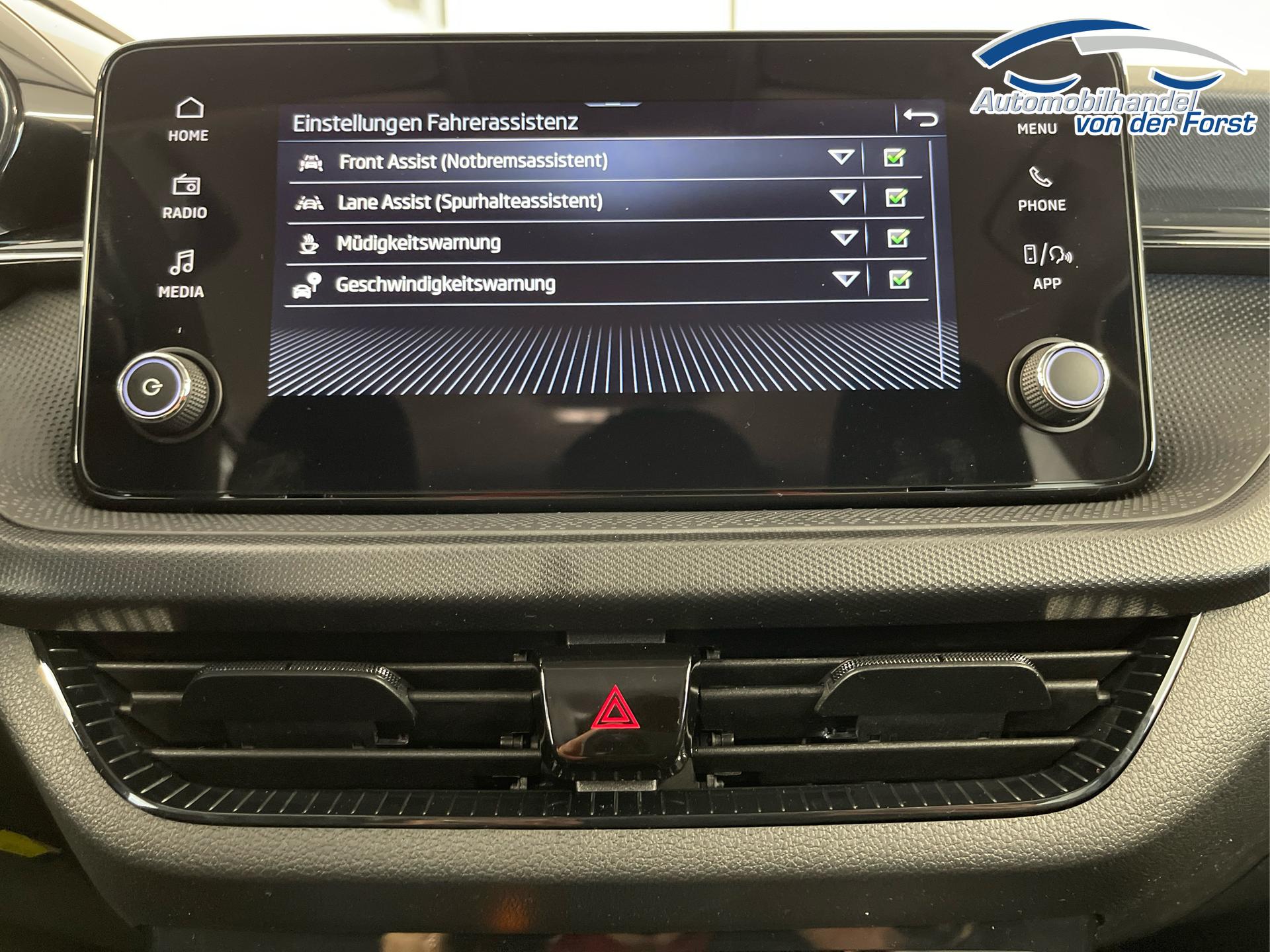 • Spurhalteassistent "Lane Assist", USB-C, Kopfstützen, Airbag für Fahrer und Beifahrer, Seitenairbag vorn mit Kopfairbag, Beifahrerairbag-Deaktivierung, Freisprecheinrichtung Bluetooth, Tire-Mobility-Set, Zentralverriegelung mit Funkfernbedienung, Digitaler Radioempfang DAB, Rücksitzlehne geteilt umklappbar, Heckscheiben Wisch-Waschanlage, Warnsignal für nicht angelegte Sicherheitsgurte, Wärmeschutzverglasung, Wegfahrsperre, ESC, ABS, ASR, Außenspiegel elektrisch einstell- und beheizbar, Außenspiegelgehäuse in Wagenfarbe, Gepäckraumabdeckung, LED-Scheinwerfer inkl. Tagfahrlicht, Gepäckraumbeleuchtung, Fensterheber vorn elektrisch, 15 Zoll Stahlräder, Reifen 185/65 R15 88H, Brillenhalter, Geschwindigkeitsbegrenzung, Start-Stopp-Anlage, Reifendruckkontrolle, Scheibenbremsen, Klimaanlage, Nebelscheinwerfer, ParkPilot hinten, Servolenkung, Radio
