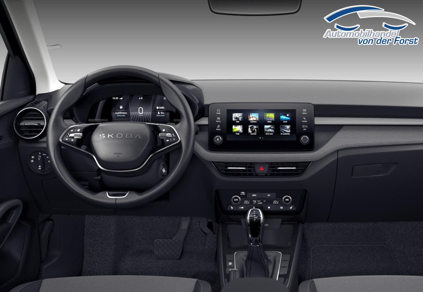 LM-Felgen 5,5x15 (Rotare Aero), Klimaanlage Climatronic 2-Zonen, Seitenscheiben hinten und Heckscheibe abgedunkelt (SunSet), Fahrassistenz-System: Verkehrszeichenerkennung, Innenspiegel mit Abblendautomatik, Keyless Start, Kombiinstrument digital (8 Zoll), Kraftstofftank: 50 Ltr., Navigation in Verbindung mit dem Smartphone (über Apple Carplay / Android Auto /...), Reifen 185/65 R15, Rückfahrkamera, Rücksitzlehne geteilt/klappbar (60:40), Wischwasserstand-Anzeige, Zentralverriegelung mit Fernbedienung, Innenausstattung: Loft (Innenausstattung: Dekoreinlagen Grau (Metall-Optik) / Innenausstattung: Dekoreinlagen Silber / Innenausstattung: schwarz / grau), Sitz vorn rechts höhenverstellbar (Lendenwirbelstütze Sitz vorn links / Lendenwirbelstütze Sitz vorn rechts), Fahrassistenz-System: Spurhalteassistent (Lane Assist) (Frontkamera), 6 Lautsprecher, Außenspiegel Wagenfarbe, Bremsenergierückgewinnung, Brillenfach, Gepäck-/Laderaumabdeckung, Infotainment-System mit 8,2" Display, Karosserie: 5-türig, Motor 1,0 Ltr. - 85 kW TSI, Otto-Partikelfilter (OPF), Radioempfang digital (DAB+), Schalt-/Wählhebelgriff Leder, Sitz vorn links höhenverstellbar, Sitzbezug / Polsterung: Stoff Style schwarz, Sonnenblende links mit Spiegel, Sonnenblende rechts mit Spiegel, Türgriffe außen Wagenfarbe, Freisprechanlage Telefon mit Bluetooth, USB-Schnittstelle vorn (2-fach, Typ C), Wireless SmartLink, Anti-Blockier-System (ABS), Antriebs-Schlupfregelung (ASR), Elektron. Stabilitäts-Programm (ESP), Wegfahrsperre, Getriebe 7-Gang - Doppelkupplungsgetriebe DSG, Airbag Fahrer-/Beifahrerseite, Fensterheber elektrisch hinten, Fensterheber elektrisch vorn, Isofix-Aufnahmen für Kindersitz an Beifahrersitz, Isofix-Aufnahmen für Kindersitz an Rücksitz, Kopf-Airbag-System, Mittelarmlehne vorn, Seitenairbag vorn, Sitzheizung vorn, Fahrassistenz-System: Auffahrwarnsystem mit City-Notbremsfunktion (Frontradar-Assistent), Fahrassistenz-System: Berganfahr-Assistent (Hill-Holder), Geschwindigkeits-Regelanlage (Tempomat) inkl. Geschwindigkeits-Begrenzeranlage, Lenkrad (Leder) mit Multifunktion und Schaltfunktion, Servolenkung, Außenspiegel elektr. verstell- und heizbar, Fahrassistenz-System: Einschaltautomatik für Fahrlicht (Fahrlichtassistent), Heckleuchten LED, Lichtassistent (Coming Home, Leaving Home), Nebelscheinwerfer, Scheinwerfer LED, Tagfahrlicht LED, Einparkhilfe hinten, Fahrassistenz-System: Müdigkeitserkennung, Reifendruck-Kontrollsystem, Start/Stop-Anlage