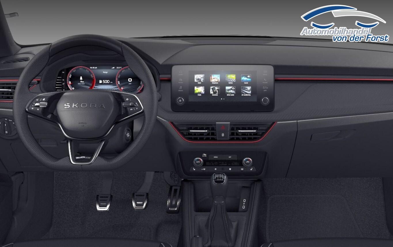 Außenspiegel elektr. verstell-, heiz- und anklappbar, mit Abblendautomatik (Außenspiegel mit Abblendautomatik, links), Einparkhilfe vorn und hinten, Dach in Kontrastfarbe - schwarz, ebener Ladeboden hinten, Induktionsladeschale, LM-Felgen 17" (Kajam), Navigation in Verbindung mit dem Smartphone (über Apple Carplay / Android Auto /...), Reifen 205/55 R17, Sitzheizung vorne, Infotainment-Paket Bolero (SmartLink (Apple CarPlay und Android Auto)), Interieur-Design-Paket Monte Carlo (Ambiente-Beleuchtung LED in Rot / Einstiegsleisten (Aluminium-Design) / Innenausstattung: Dekoreinlagen Carbon Optik / Innenausstattung: Interieurleisten Schwarz / Rot / Innenausstattung: Luftausströmer Rot / Sportsitze), Phonebox (Induktionsladeschale für Smartphone), Panoramadach fest (Glas) (Dachreling), Fahrassistenz-System: Einschaltautomatik für Fahrlicht (Fahrlichtassistent) (Innenspiegel mit Abblendautomatik / Scheibenwischer mit Regensensor), 3. Bremsleuchte LED, 8 Lautsprecher, Ablagetasche an Vordersitzlehnen, Außenspiegel schwarz lackiert, Edelstahlpedale Sportdesign, Gepäckraumabdeckung / Rollo, Handschuhfach beleuchtet, Infotainment-Paket Basic, Infotainment-System mit 8,2" Display, Karosserie: 5-türig, Kombiinstrument digital (virtual cockpit), Lendenwirbelstütze Sitz vorn links, Lendenwirbelstütze Sitz vorn rechts, Lenkrad heizbar, Mittelarmlehne hinten, Modellpflege, Motor 1,0 Ltr. - 85 kW TSI, Netzprogramm im Kofferraum, Otto-Partikelfilter (OPF), Radioempfang digital (DAB+), Radstand 2651 mm, Schadstoffarm nach Abgasnorm Euro 6e, Schalt-/Wählhebelgriff Leder, Sitz vorn links höhenverstellbar, Sitz vorn rechts höhenverstellbar, Sitzbezug / Polsterung: Monte Carlo, Steckdose (12V-Anschluß) im Koffer-/Laderaum, USB-Schnittstelle vorn (2-fach, Typ C), Wireless SmartLink, Anti-Blockier-System (ABS), Bremsassistent, Antriebs-Schlupfregelung (ASR), Antriebsart: Frontantrieb, Elektron. Differentialsperre (EDS), Elektron. Querdifferentialsperre (XDS), Elektron. Stabilitäts-Programm (ESP), Getriebe 7-Gang - Doppelkupplungsgetriebe DSG, Klimaanlage Climatronic 2-Zonen, Airbag Beifahrerseite abschaltbar, Airbag Fahrer-/Beifahrerseite, Fensterheber elektrisch vorn + hinten, Fernbedienung für Zentralverriegelung, Kopf-Airbag-System, Mittelarmlehne vorn, Rücksitzlehne geteilt/klappbar (1/3-2/3), Schließ-/Startsystem Kessy, Seitenairbag vorn, Seitenscheiben hinten und Heckscheibe abgedunkelt (SunSet), Zentralverriegelung, Fahrassistenz-System: Auffahrwarnsystem mit City-Notbremsfunktion (Frontradar-Assistent), Fahrassistenz-System: Berganfahr-Assistent (Hill-Holder), Frontkamera, Geschwindigkeits-Regelanlage (Tempomat) inkl. Geschwindigkeits-Begrenzeranlage, Rückfahrkamera, Lenkrad (Sport/Leder - 3-Speichen, unten abgeflacht) mit Multifunktion und Schaltfunktion, Servolenkung, Blinkleuchten LED in Außenspiegel integriert, Heckleuchten LED mit dynamischem Blinklicht, Lichtassistent (Coming Home, Leaving Home), Matrix-LED-Scheinwerfer, Nebelscheinwerfer mit Abbiegelicht, Tagfahrlicht LED, Fahrassistenz-System: Spurhalteassistent (Lane Assist), Start/Stop-Anlage