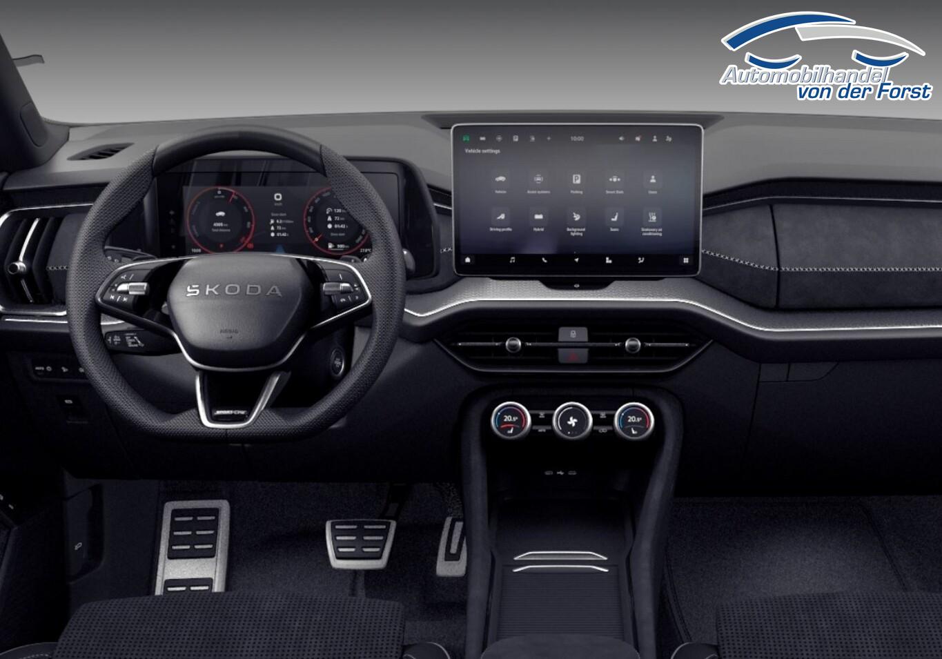 3.Sitzreihe (2 Sitze zusätzlich), Fahrassistenz-Paket (Fahrassistenz-Paket: Travel Assist / Fahrassistenz-Paket: Stau- und Notfallassistent / Fahrassistenz-System: Autom. Distanzregelung (pACC) mit vorausschauender Geschw.-Regelung / Fahrassistenz-System: aktiver Spurhalteassistent (Lenkunterstützung) / Insassen-Schutzsystem proaktiv), Winter-Paket (Sitzheizung hinten), 12V Steckdose, Ablagebox im Gepäckraum, Allwetter-, Kurven- und Autobahnlicht, Fahrersitz elektr. verstellbar, Heckspoiler, Infotainment-System mit 13 Zoll Farb-Display, Innenbeleuchtung vorn und hinten, Kofferraum / Heckklappe elektrisch betätigt (öffnen + schliessen), Lendenwirbelstütze pneumatisch verstellber vorn links, Lendenwirbelstütze vorn rechts, Lichtassistent (Coming, Leaving Home), Lichtautomatik mit Abbiegelicht (AFS), LM-Felgen 7,5x19 "Tirsuli", Navigationssystem 13 Zoll, Radioempfang digital (DAB), Radschrauben diebstahlhemmend, Reifen 235/50 R19, Schadstoffarm nach Abgasnorm Euro 6e (EU6EA), Seitenscheiben hinten und Heckscheibe abgedunkelt (SunSet), Sitzbezug / Polsterung: Mikrofaser / Kunstleder, Stoßfänger Sport, Tagfahrlicht, Vorbereitung für Skoda Connect, Licht- und Sicht-Paket (Fahrassistenz-System: Dynamischer Fernlichtassistent (Dynamic Light Assist) / Heckleuchten LED (Kristallglas-Optik) / Heckleuchten LED mit dynamischem Blinklicht / Matrix-LED-Scheinwerfer), Motor 2,0 Ltr. - 142 kW TDI (DXNB) (Motor 2,0 Ltr. - 142 kW TDI), Zentralverriegelung (Fernbedienung für Zentralverriegelung), 8 Lautsprecher, Ambiente-Beleuchtung LED, Anhängerkupplung Vorbereitung, Außenspiegel schwarz lackiert, Dachreling schwarz, hochglänzend, Edelstahlpedale Sportdesign, Einstiegsleisten (Edelstahl), Fahrassistenz-System: Abbiegebremsfunktion und Ausweichunterstützung, Fensterzierleisten schwarz, hochglänzend, Karosserie: 5-türig, Kombiinstrument digital (virtual cockpit plus), Kopfstützen hinten, Kopfstützen vorn, Lehnenentriegelung der Rücksitzlehne im Kofferraum, Radstand Standard, Reifen-Reparaturkit, SCR-System (AdBlue-Technologie), Sonnenblenden mit Spiegel (LED-Beleuchtung), Warnanlage für Sicherheitsgurte hinten, Warnanlage für Sicherheitsgurte, Fahrer-/Beifahrerseite, USB-Schnittstelle vorn (2-fach, Typ C), Wireless SmartLink, Anti-Blockier-System (ABS), Bremsassistent, Antriebsart: Allradantrieb, Elektron. Stabilitäts-Programm (ESP), Getriebe 7-Gang - Doppelkupplungsgetriebe DSG, Klimaanlage Climatronic 3-Zonen, Airbag Beifahrerseite abschaltbar, Airbag Fahrerseite, Isofix-Aufnahmen für Kindersitz an Beifahrersitz, Isofix-Aufnahmen für Kindersitz an Rücksitz, Kopf-Airbag-System, Rücksitzlehne geteilt/klappbar, Schließ-/Startsystem Kessy inkl. Diebstahl-Warnanlage, Seitenairbag vorn, Seitenairbag vorn mitte (Center-Airbag), Sitzheizung vorn, Sportsitze, Fahrassistenz-System: Auffahrwarnsystem mit City-Notbremsfunktion (Frontradar-Assistent), Fahrassistenz-System: Berganfahr-/Abfahr-Assistent (Offroad Assistent), Fahrassistenz-System: Verkehrszeichenerkennung, Rückfahrkamera, Lenkrad heizbar (Sport/Leder) mit Multifunktion und Schaltfunktion, Servolenkung, Einparkhilfe vorn und hinten, Fahrassistenz-System: Müdigkeitserkennung, Fahrassistenz-System: Spurhalteassistent (Lane Assist), Fahrassistenz-System: Spurwechselassistent inkl. Auspark-Assistent und Ausstiegswarnung, Reifendruck-Kontrollsystem (Aktiv), Rußpartikelfilter, Start/Stop-Anlage