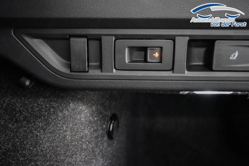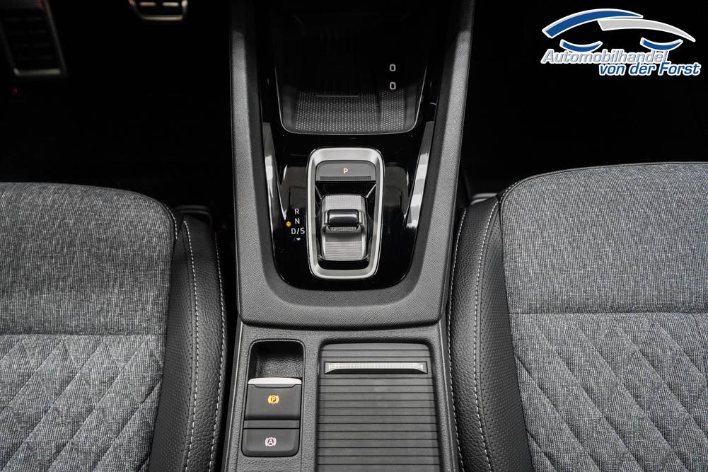 Beifahrersitz höhenverstellbar, Fahrersitz höhenverstellbar, Lederlenkrad, Lendenwirbelstütze, Mittelarmlehne vorne, Sitzbezug Stoff, Sportsitze, Gepäckraumabdeckung, geteilt umklappbare Rücksitzlehne, Lenkrad höhenverstellbar, Ambiente-Beleuchtung, Multifunktionssportlenkrad, Isofix, Isofix Beifahrersitz, abgedunkelte Scheiben, 18 Zoll Alufelgen Vega Aero schwarz, Dachreling schwarz, ABS, Alarmanlage, Außenspiegel elektrisch anklappbar, Fensterheber elektrisch, Klimaautomatik, Kopfairbags, Seitenairbags, Servolenkung, Sitzheizung, ESP, Wegfahrsperre, Zentralverriegelung mit Funk, Außenspiegel beheizbar, Beifahrerairbag, Fahrerairbag, Parkpilot hinten, Parkpilot vorne, Reifendruckkontrolle, Regensensor, Lichtsensor, Digitales Kombiinstrument, Anhängekupplung schwenkbar, Tempomat Abstand ACC, Fernlichtassistent, Spurhalteassistent, Totwinkelassistent, Verkehrszeichenerkennung, LED-Scheinwerfer, Tagfahrlicht, Kurvenlicht, Pannenset, Rückfahrkamera, Elektrische Heckklappe inkl. Virtual Pedal, KeylessEntry, StartStopSystem, Innenspiegel automatisch abbl., Berganfahrassistent, Müdigkeitswarnsystem, Notrufsystem, Schaltwippen, Geschwindigkeitsbegrenzer, Android Auto, Apple Carplay, Freisprecheinrichtung, Induktionsladestation, Sprachsteuerung, USB Typ C, Radio DAB, Bluetooth inkl. Handykopplung, Bordcomputer, Radio-Navigationssystem, erweiterte Herstellergarantie 4 Jahre/60.000km, Wireless Smart Link, Emergency Assist,