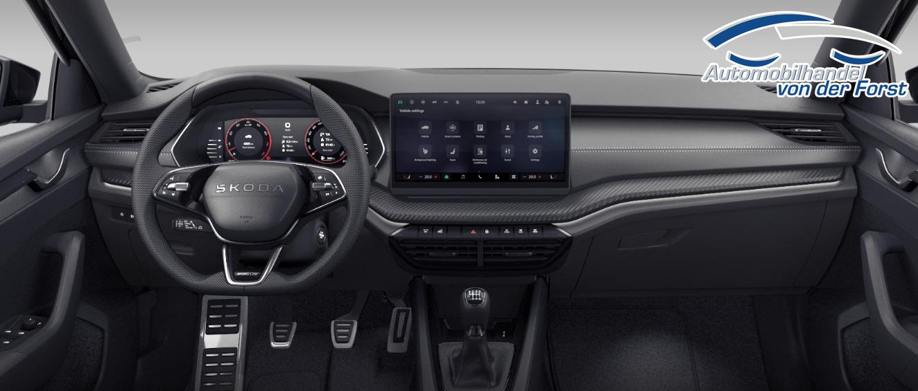 • Exterieur Octavia Sportline: Stoßfänger Sportline, Kühlergrillrahmen schwarz glänzend, Zierleisten an den Seitenscheiben schwarz glänzend, Außenspiegel schwarz glänzend, Schriftzug am Heck schwarz, Dachreling schwarz glänzend vorhanden