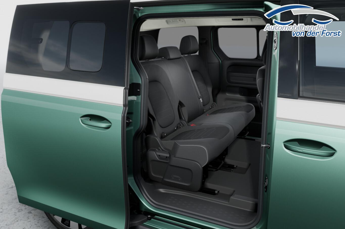 Ausstattungs-Paket: Easy Open & Close Plus (Fenster im Lade-/FG-Raum: - schiebbar, vorn links / Fenster im Lade-/FG-Raum: - schiebbar, vorn rechts / Schließ-/Startsystem Keyless Advanced mit Safesicherung / Umfeldleuchte in Heckklappe / Heckklappe elektr. betätigt Easy Open (öffnen + schliessen, sensorgesteuert) / Schiebetür Lade-/Fahrgastraum links elektr. betätigt Easy Open (sensorgesteuert) / Schiebetür Lade-/Fahrgastraum rechts elektr. betätigt Easy Open (sensorgesteuert)), Interieur-Paket Style Plus (Lenkrad schwarz) (Ambiente-Beleuchtung (30 Farben) / Sitzbezug / Polsterung: Stoff Seaqual / Sitze im Fahrerhaus: Fahrer- und Beifahrersitz Komfort / Sitze im Fahrerhaus: Fahrer- und Beifahrersitz mit Armlehnen beidseitig / Sitze vorn mit Massagefunktion / Sitze im Fahrerhaus: Fahrer- und Beifahrersitz elektr. verstellbar mit Memory, Einstiegshilfe links / Sitze im Fahrerhaus: Fahrer- und Beifahrersitz heizbar / Lenkrad heizbar (Leder) mit Multifunktion), Ausstattungs-Paket: Komfort-Paket Plus (Außenspiegel schwarz lackiert und Türgriffe außen in Wagenfarbe / Gepäckraum-Abtrennung / Trennnetz / Gepäckraumabdeckung / Rollo / Innenspiegel mit Abblendautomatik / Mittelkonsole vorn variabel (ID.Buzz Box) / Multiflex-Board / Scheibenwaschdüsen beheizt / Multimedia-Schnittstelle 2 x USB (Typ C) vorn, USB-Ladeanschluß (Typ C) 1 x vorn, hinten / Klimaanlage Climatronic 3-Zonen inkl. Fondbedienung / Sitze im Fahrerhaus: Fahrer- und Beifahrersitz heizbar / Lenkrad heizbar (Leder) mit Multifunktion / Regensensor), LM-Felgen vorn/hinten: 8x19 / 9x19 (Tilburg, schwarz glanzgedreht), Fahrassistenz-Paket Plus inkl. Travel Assist und Umgebungsansicht inkl. Rückfahrkamera (Schließ-/Startsystem Keyless Advanced mit Safesicherung / Türgriffschalen außen beleuchtet / Rückfahrkamera mit 360° Umgebungsansicht (Area View) / Lenkrad heizbar (Leder) mit Multifunktion / Fahrassistenz-System: Memoryfunktion für Park Assist / Fahrassistenz-System: Parklenkassistent (Park Assist) inkl. Einparkhilfe vorn und hinten / Fahrassistenz-Paket: Travel Assist, Emergency Assist und Lane Assist / Diebstahl-Warnanlage + Innenraumüberwachung / Abschleppschutz + Back-up-Horn), Ausstattungs-Paket: Design (Leuchtweitenregelung automatisch und Kurvenlicht dynamisch / Lichtleiste zwischen Scheinwerfer / Pedale Edelstahl / Fahrassistenz-System: Dynamische Fernlichtregulierung (Dynamic Light Assist) / Heckleuchten LED, Blinkleuchten dynamisch / Matrix-LED-Scheinwerfer (IQ.Light)), Ladekabel mit Schukostecker (10 A, Mode 2), Ladekabel mit Typ 2-Stecker (32 A, Mode 3), Fahrassistenz-System: Parklenkassistent (Park Assist Pro) inkl. Einparkhilfe in Verbindung mit Onlinedienste, Diebstahl-Warnanlage + Innenraumüberwachung / Abschleppschutz, Elektron. Stabilitäts-Programm (ESP), Garantieverlängerung: 3 Jahre oder 100.000 km, Isofix-Aufnahmen für Kindersitz am Beifahrersitz, Navigation in Verbindung mit dem Smartphone (über Apple Carplay / Android Auto /...), Radschrauben mit Diebstahlsicherung, Scheibenwischer mit Intervallschaltung, Sommerreifen hinten 255/50 R19, Sommerreifen vorn 235/55 R19, Akustischer Fußgängerschutz, Außensound (e-sound), Audiosystem Ready 2 Discover (Touchscreen-Farbdisplay 12,9 Zoll), Audiosystem: Vorbereitung für spätere Freischaltung Navigationsfunktion Discover Pro, Außenspiegel konvex, links und rechts, Bidirektionales Laden (DC), Bodenbelag: Teppich verstärkt, DC / DC Wandler 3 kW, Elektromotor 210 kW (cont. 89 kW), Fahrassistenz-System: Ausweich-Assistent und Abbiege-Assistent, Funkschlüssel (2), Fußraumbeleuchtung vorn und hinten, Heckklappe mit Verglasung, Heckscheibenwischer mit Intervallschaltung, HV-Batterie 79 kWh netto, Innenausstattung: Bedienelemente, Lenkrad und Einfassung Instrumente schwarz, Innenleuchten im Lade-/FG-Raum: LED (Gepäckraum), Insassen-Schutzsystem proaktiv, Intelligent Speed Assist inkl. Geschwindigkeitsbegrenzer, Karosserie/Aufbau: Bus, Lautsprecher (9), Linkslenker, Mobile Online Dienste App-Connect inkl. App-Connect Wireless (Apple CarPlay, Android Auto), Nichtraucher-Paket, Radioempfang digital (DAB+), Radstand 2989 mm, Radstand kurz, Schnellladevorrichtung (CCS-Ladedose), Sitzausstattung: 5-Sitzer, Sitze im Lade-/FG-Raum: 1.Reihe, 3er-Sitzbank, geteilt/klappbar, Sonnenblenden mit Spiegel (beleuchtet), Steckdose (12V-Anschluß) im Laderaum, Stoßfänger in Wagenfarbe, Umfeldbeleuchtung seitlich mit Projektionsfunktion, Vorbereitung für Alkohol-Wegfahrsperre (Alcolock), Vorbereitung Onlinedienste We Connect (Plus) oder VW Connect (Plus) und Online-Update-Fähigkeit, Warnanlage für Sicherheitsgurte vorn und hinten, Zul. Gesamtgewicht 3,00 t, Mobiltelefon Schnittstelle Bluetooth, Mobiltelefon Schnittstelle mit kabelloser Ladefunktion, Anti-Blockier-System (ABS), Antriebsart: Heckantrieb, Getriebe für Elektrofahrzeug, Airbag Fahrer-/Beifahrerseite, Beifahrerairbag abschaltbar, Isofix-Aufnahmen für Kindersitz an Rücksitz, Seitenairbag, Kopfairbag und Center-Airbag vorn, Wärmeschutzverglasung seitlich / hinten, Fahrassistenz-System: Autom. Distanzregelung (ACC inkl. Stop&Go-Funktion), Fahrassistenz-System: Verkehrszeichenerkennung, Multifunktionskamera / Frontkamera, Notrufsystem, Servolenkung elektro-mechanisch, geschwindigkeitsabhängig, Außenspiegel elektr. verstell-, heiz- und anklappbar mit Spiegelabsenkung, Fahrassistenz-System: Ablenkungs- und Müdigkeitserkennung, Fahrassistenz-System: Notbrems-Assistent (Front Assist) inkl. Fußgänger- und Fahrraderkennung, Fahrassistenz-System: Spurhalteassistent (Lane Assist), Fahrassistenz-System: Spurwechselassistent (Side Assist) mit Auspark-Assistent und Ausstiegswarnung, Reifenkontroll-Anzeige