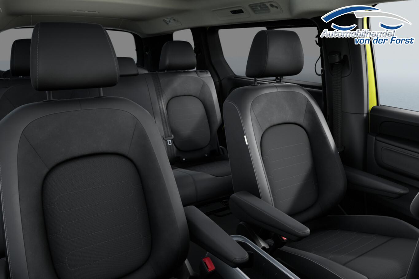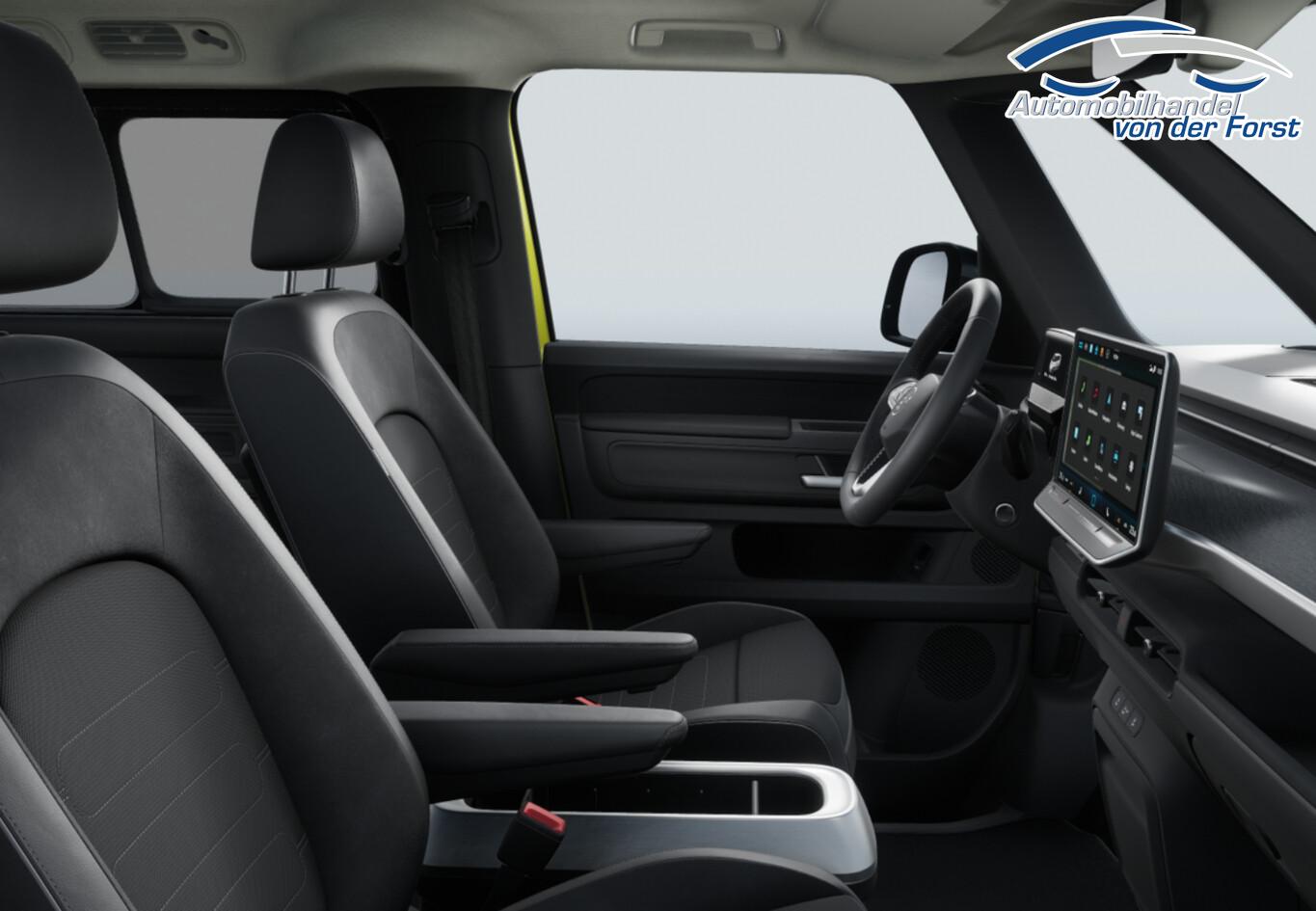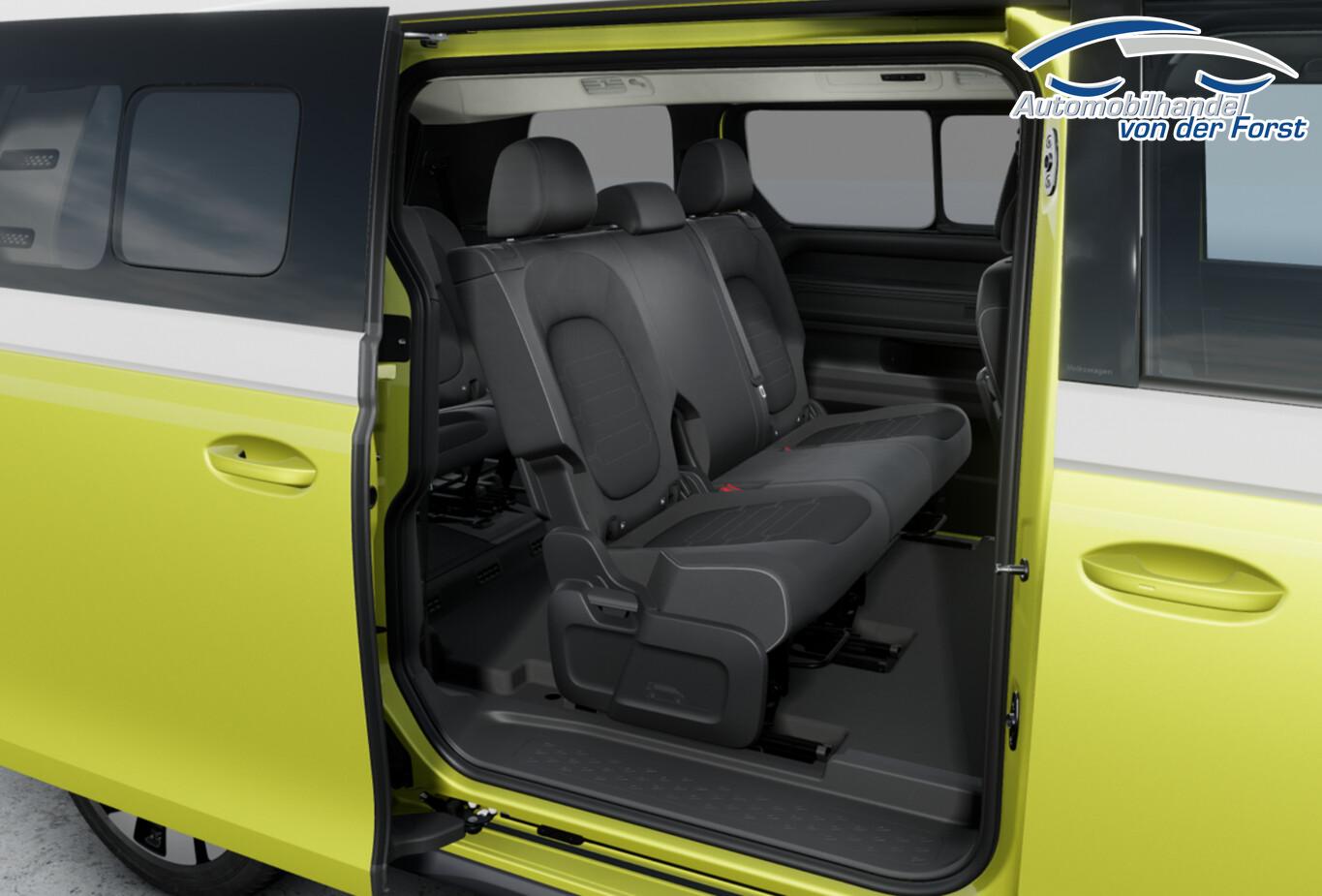 Ausstattungs-Paket: Easy Open & Close Plus (Fenster im Lade-/FG-Raum: - schiebbar, vorn links / Fenster im Lade-/FG-Raum: - schiebbar, vorn rechts / Schließ-/Startsystem Keyless Advanced mit Safesicherung / Umfeldleuchte in Heckklappe / Heckklappe elektr. betätigt Easy Open (öffnen + schliessen, sensorgesteuert) / Schiebetür Lade-/Fahrgastraum links elektr. betätigt Easy Open (sensorgesteuert) / Schiebetür Lade-/Fahrgastraum rechts elektr. betätigt Easy Open (sensorgesteuert)), Interieur-Paket Style Plus (Lenkrad schwarz) (Ambiente-Beleuchtung (30 Farben) / Sitzbezug / Polsterung: Stoff Seaqual / Sitze im Fahrerhaus: Fahrer- und Beifahrersitz Komfort / Sitze im Fahrerhaus: Fahrer- und Beifahrersitz mit Armlehnen beidseitig / Sitze vorn mit Massagefunktion / Sitze im Fahrerhaus: Fahrer- und Beifahrersitz elektr. verstellbar mit Memory, Einstiegshilfe links / Sitze im Fahrerhaus: Fahrer- und Beifahrersitz heizbar / Lenkrad heizbar (Leder) mit Multifunktion), Ausstattungs-Paket: Komfort-Paket Plus (Außenspiegel schwarz lackiert und Türgriffe außen in Wagenfarbe / Gepäckraum-Abtrennung / Trennnetz / Gepäckraumabdeckung / Rollo / Innenspiegel mit Abblendautomatik / Mittelkonsole vorn variabel (ID.Buzz Box) / Multiflex-Board / Scheibenwaschdüsen beheizt / Multimedia-Schnittstelle 2 x USB (Typ C) vorn, USB-Ladeanschluß (Typ C) 1 x vorn, hinten / Klimaanlage Climatronic 3-Zonen inkl. Fondbedienung / Sitze im Fahrerhaus: Fahrer- und Beifahrersitz heizbar / Lenkrad heizbar (Leder) mit Multifunktion / Regensensor), LM-Felgen vorn/hinten: 8x19 / 9x19 (Tilburg, schwarz glanzgedreht), Fahrassistenz-Paket Plus inkl. Travel Assist und Umgebungsansicht inkl. Rückfahrkamera (Schließ-/Startsystem Keyless Advanced mit Safesicherung / Türgriffschalen außen beleuchtet / Rückfahrkamera mit 360° Umgebungsansicht (Area View) / Lenkrad heizbar (Leder) mit Multifunktion / Fahrassistenz-System: Memoryfunktion für Park Assist / Fahrassistenz-System: Parklenkassistent (Park Assist) inkl. Einparkhilfe vorn und hinten / Fahrassistenz-Paket: Travel Assist, Emergency Assist und Lane Assist / Diebstahl-Warnanlage + Innenraumüberwachung / Abschleppschutz + Back-up-Horn), Ausstattungs-Paket: Design (Leuchtweitenregelung automatisch und Kurvenlicht dynamisch / Lichtleiste zwischen Scheinwerfer / Pedale Edelstahl / Fahrassistenz-System: Dynamische Fernlichtregulierung (Dynamic Light Assist) / Heckleuchten LED, Blinkleuchten dynamisch / Matrix-LED-Scheinwerfer (IQ.Light)), Sitz-Paket: 7-Sitzer (Sitzausstattung: 7-Sitzer / Sitze im Lade-/FG-Raum: 1.Reihe, 3er-Sitzbank, geteilt/klappbar + 2.Reihe, 2 Einzelsitze, herausnehmbar / Zul. Gesamtgewicht 3,34 t / Klimaanlage 2-Zonen mit 2 Zuheizer), Heizungs-/Klimaanlage: Wärmepumpe, Anhängerkupplung klappbar (elektr. Entriegelung), Ladekabel mit Schukostecker (10 A, Mode 2), Ladekabel mit Typ 2-Stecker (32 A, Mode 3), Fahrassistenz-System: Parklenkassistent (Park Assist Pro) inkl. Einparkhilfe in Verbindung mit Onlinedienste, Diebstahl-Warnanlage + Innenraumüberwachung / Abschleppschutz, Elektron. Stabilitäts-Programm (ESP), Garantieverlängerung: 3 Jahre oder 100.000 km, Isofix-Aufnahmen für Kindersitz am Beifahrersitz, Navigation in Verbindung mit dem Smartphone (über Apple Carplay / Android Auto /...), Radschrauben mit Diebstahlsicherung, Scheibenwischer mit Intervallschaltung, Sommerreifen hinten 255/50 R19, Sommerreifen vorn 235/55 R19, Akustischer Fußgängerschutz, Außensound (e-sound), Audiosystem Ready 2 Discover (Touchscreen-Farbdisplay 12,9 Zoll), Audiosystem: Vorbereitung für spätere Freischaltung Navigationsfunktion Discover Pro, Außenspiegel konvex, links und rechts, Bidirektionales Laden (DC), Bodenbelag: Teppich verstärkt, DC / DC Wandler 3 kW, Elektromotor 210 kW (cont. 89 kW), Fahrassistenz-System: Ausweich-Assistent und Abbiege-Assistent, Funkschlüssel (2), Fußraumbeleuchtung vorn und hinten, Heckklappe mit Verglasung, Heckscheibenwischer mit Intervallschaltung, HV-Batterie 86 kWh netto, Innenausstattung: Bedienelemente, Lenkrad und Einfassung Instrumente schwarz, Innenleuchten im Lade-/FG-Raum: LED (Gepäckraum), Insassen-Schutzsystem proaktiv, Intelligent Speed Assist inkl. Geschwindigkeitsbegrenzer, Karosserie/Aufbau: Bus, Lautsprecher (9), Linkslenker, Mobile Online Dienste App-Connect inkl. App-Connect Wireless (Apple CarPlay, Android Auto), Nichtraucher-Paket, Radioempfang digital (DAB+), Radstand 3239 mm, Radstand lang, Schnellladevorrichtung (CCS-Ladedose), Sonnenblenden mit Spiegel (beleuchtet), Steckdose (12V-Anschluß) im Laderaum, Stoßfänger in Wagenfarbe, Umfeldbeleuchtung seitlich mit Projektionsfunktion, Vorbereitung für Alkohol-Wegfahrsperre (Alcolock), Vorbereitung Onlinedienste We Connect (Plus) oder VW Connect (Plus) und Online-Update-Fähigkeit, Warnanlage für Sicherheitsgurte vorn und hinten, Mobiltelefon Schnittstelle Bluetooth, Mobiltelefon Schnittstelle mit kabelloser Ladefunktion, Anti-Blockier-System (ABS), Antriebsart: Heckantrieb, Getriebe für Elektrofahrzeug, Airbag Fahrer-/Beifahrerseite, Beifahrerairbag abschaltbar, Isofix-Aufnahmen für Kindersitz an Rücksitz, Seitenairbag, Kopfairbag und Center-Airbag vorn, Wärmeschutzverglasung seitlich / hinten, Fahrassistenz-System: Autom. Distanzregelung (ACC inkl. Stop&Go-Funktion), Fahrassistenz-System: Verkehrszeichenerkennung, Multifunktionskamera / Frontkamera, Notrufsystem, Servolenkung elektro-mechanisch, geschwindigkeitsabhängig, Außenspiegel elektr. verstell-, heiz- und anklappbar mit Spiegelabsenkung, Fahrassistenz-System: Ablenkungs- und Müdigkeitserkennung, Fahrassistenz-System: Notbrems-Assistent (Front Assist) inkl. Fußgänger- und Fahrraderkennung, Fahrassistenz-System: Spurhalteassistent (Lane Assist), Fahrassistenz-System: Spurwechselassistent (Side Assist) mit Auspark-Assistent und Ausstiegswarnung, Reifenkontroll-Anzeige