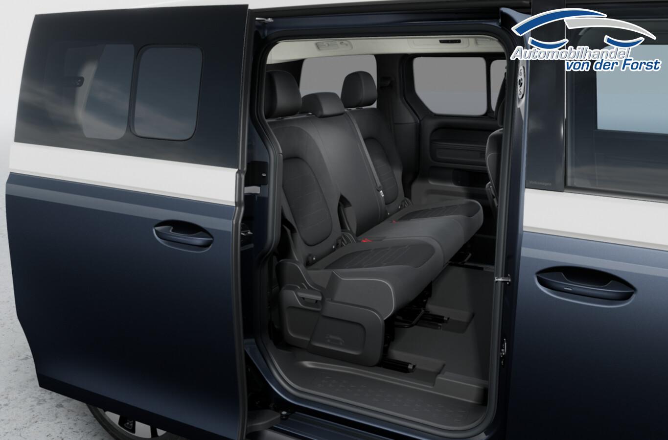 Ausstattungs-Paket: Easy Open & Close Plus (Fenster im Lade-/FG-Raum: - schiebbar, vorn links / Fenster im Lade-/FG-Raum: - schiebbar, vorn rechts / Schließ-/Startsystem Keyless Advanced mit Safesicherung / Umfeldleuchte in Heckklappe / Heckklappe elektr. betätigt Easy Open (öffnen + schliessen, sensorgesteuert) / Schiebetür Lade-/Fahrgastraum links elektr. betätigt Easy Open (sensorgesteuert) / Schiebetür Lade-/Fahrgastraum rechts elektr. betätigt Easy Open (sensorgesteuert)), Interieur-Paket Style Plus (Lenkrad schwarz) (Ambiente-Beleuchtung (30 Farben) / Sitzbezug / Polsterung: Stoff Seaqual / Sitze im Fahrerhaus: Fahrer- und Beifahrersitz Komfort / Sitze im Fahrerhaus: Fahrer- und Beifahrersitz mit Armlehnen beidseitig / Sitze vorn mit Massagefunktion / Sitze im Fahrerhaus: Fahrer- und Beifahrersitz elektr. verstellbar mit Memory, Einstiegshilfe links / Sitze im Fahrerhaus: Fahrer- und Beifahrersitz heizbar / Lenkrad heizbar (Leder) mit Multifunktion), Ausstattungs-Paket: Infotainment Plus (Sound-System Harman-Kardon (13 Lautsprecher, Subwoofer, 700 Watt) / Navigationsfunktion Discover Pro / Sprachassistent IDA / Head-up-Display), Ausstattungs-Paket: Komfort-Paket Plus (Außenspiegel schwarz lackiert und Türgriffe außen in Wagenfarbe / Gepäckraum-Abtrennung / Trennnetz / Gepäckraumabdeckung / Rollo / Innenspiegel mit Abblendautomatik / Mittelkonsole vorn variabel (ID.Buzz Box) / Multiflex-Board / Scheibenwaschdüsen beheizt / Multimedia-Schnittstelle 2 x USB (Typ C) vorn, USB-Ladeanschluß (Typ C) 1 x vorn, hinten / Klimaanlage Climatronic 3-Zonen inkl. Fondbedienung / Sitze im Fahrerhaus: Fahrer- und Beifahrersitz heizbar / Lenkrad heizbar (Leder) mit Multifunktion / Regensensor), LM-Felgen vorn/hinten: 8x19 / 9x19 (Tilburg, schwarz glanzgedreht), Fahrassistenz-Paket Plus inkl. Travel Assist und Umgebungsansicht inkl. Rückfahrkamera (Schließ-/Startsystem Keyless Advanced mit Safesicherung / Türgriffschalen außen beleuchtet / Rückfahrkamera mit 360° Umgebungsansicht (Area View) / Lenkrad heizbar (Leder) mit Multifunktion / Fahrassistenz-System: Memoryfunktion für Park Assist / Fahrassistenz-System: Parklenkassistent (Park Assist) inkl. Einparkhilfe vorn und hinten / Fahrassistenz-Paket: Travel Assist, Emergency Assist und Lane Assist / Diebstahl-Warnanlage + Innenraumüberwachung / Abschleppschutz + Back-up-Horn), Ausstattungs-Paket: Design (Leuchtweitenregelung automatisch und Kurvenlicht dynamisch / Lichtleiste zwischen Scheinwerfer / Pedale Edelstahl / Fahrassistenz-System: Dynamische Fernlichtregulierung (Dynamic Light Assist) / Heckleuchten LED, Blinkleuchten dynamisch / Matrix-LED-Scheinwerfer (IQ.Light)), Heizungs-/Klimaanlage: Wärmepumpe, Ladekabel mit Schukostecker (10 A, Mode 2), Ladekabel mit Typ 2-Stecker (32 A, Mode 3), Fahrassistenz-System: Parklenkassistent (Park Assist Pro) inkl. Einparkhilfe in Verbindung mit Onlinedienste, Diebstahl-Warnanlage + Innenraumüberwachung / Abschleppschutz, Elektron. Stabilitäts-Programm (ESP), Garantieverlängerung: 3 Jahre oder 100.000 km, Isofix-Aufnahmen für Kindersitz am Beifahrersitz, Mobiltelefon Schnittstelle mit kabelloser Ladefunktion, Radschrauben mit Diebstahlsicherung, Scheibenwischer mit Intervallschaltung, Sommerreifen hinten 255/50 R19, Sommerreifen vorn 235/55 R19, Akustischer Fußgängerschutz, Außensound (e-sound), Audiosystem Ready 2 Discover (Touchscreen-Farbdisplay 12,9 Zoll), Außenspiegel konvex, links und rechts, Bidirektionales Laden (DC), Bodenbelag: Teppich verstärkt, DC / DC Wandler 3 kW, Elektromotor 210 kW (cont. 89 kW), Fahrassistenz-System: Ausweich-Assistent und Abbiege-Assistent, Funkschlüssel (2), Fußraumbeleuchtung vorn und hinten, Heckklappe mit Verglasung, Heckscheibenwischer mit Intervallschaltung, HV-Batterie 79 kWh netto, Innenausstattung: Bedienelemente, Lenkrad und Einfassung Instrumente schwarz, Innenleuchten im Lade-/FG-Raum: LED (Gepäckraum), Insassen-Schutzsystem proaktiv, Intelligent Speed Assist inkl. Geschwindigkeitsbegrenzer, Karosserie/Aufbau: Bus, Lautsprecher (9), Linkslenker, Mobile Online Dienste App-Connect inkl. App-Connect Wireless (Apple CarPlay, Android Auto), Nichtraucher-Paket, Radioempfang digital (DAB+), Radstand 2989 mm, Radstand kurz, Schnellladevorrichtung (CCS-Ladedose), Sitzausstattung: 5-Sitzer, Sitze im Lade-/FG-Raum: 1.Reihe, 3er-Sitzbank, geteilt/klappbar, Sonnenblenden mit Spiegel (beleuchtet), Steckdose (12V-Anschluß) im Laderaum, Stoßfänger in Wagenfarbe, Umfeldbeleuchtung seitlich mit Projektionsfunktion, Vorbereitung für Alkohol-Wegfahrsperre (Alcolock), Vorbereitung Onlinedienste We Connect (Plus) oder VW Connect (Plus) und Online-Update-Fähigkeit, Warnanlage für Sicherheitsgurte vorn und hinten, Zul. Gesamtgewicht 3,00 t, Mobiltelefon Schnittstelle Bluetooth, Anti-Blockier-System (ABS), Antriebsart: Heckantrieb, Getriebe für Elektrofahrzeug, Airbag Fahrer-/Beifahrerseite, Beifahrerairbag abschaltbar, Isofix-Aufnahmen für Kindersitz an Rücksitz, Seitenairbag, Kopfairbag und Center-Airbag vorn, Wärmeschutzverglasung seitlich / hinten, Fahrassistenz-System: Autom. Distanzregelung (ACC inkl. Stop&Go-Funktion), Fahrassistenz-System: Verkehrszeichenerkennung, Multifunktionskamera / Frontkamera, Notrufsystem, Servolenkung elektro-mechanisch, geschwindigkeitsabhängig, Außenspiegel elektr. verstell-, heiz- und anklappbar mit Spiegelabsenkung, Fahrassistenz-System: Ablenkungs- und Müdigkeitserkennung, Fahrassistenz-System: Notbrems-Assistent (Front Assist) inkl. Fußgänger- und Fahrraderkennung, Fahrassistenz-System: Spurhalteassistent (Lane Assist), Fahrassistenz-System: Spurwechselassistent (Side Assist) mit Auspark-Assistent und Ausstiegswarnung, Reifenkontroll-Anzeige