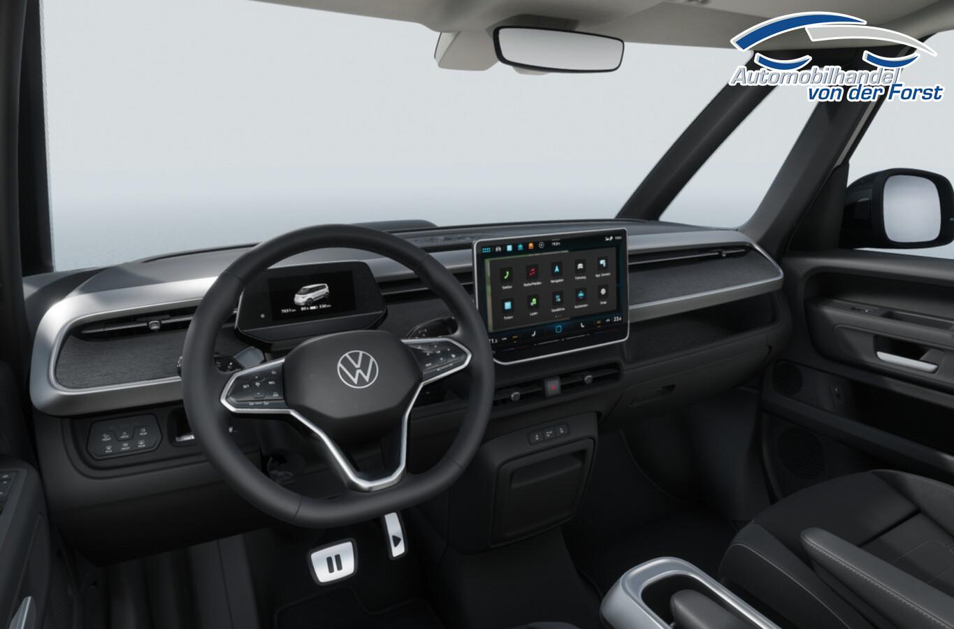 Ausstattungs-Paket: Easy Open & Close Plus (Fenster im Lade-/FG-Raum: - schiebbar, vorn links / Fenster im Lade-/FG-Raum: - schiebbar, vorn rechts / Schließ-/Startsystem Keyless Advanced mit Safesicherung / Umfeldleuchte in Heckklappe / Heckklappe elektr. betätigt Easy Open (öffnen + schliessen, sensorgesteuert) / Schiebetür Lade-/Fahrgastraum links elektr. betätigt Easy Open (sensorgesteuert) / Schiebetür Lade-/Fahrgastraum rechts elektr. betätigt Easy Open (sensorgesteuert)), Interieur-Paket Style Plus (Lenkrad schwarz) (Ambiente-Beleuchtung (30 Farben) / Sitzbezug / Polsterung: Stoff Seaqual / Sitze im Fahrerhaus: Fahrer- und Beifahrersitz Komfort / Sitze im Fahrerhaus: Fahrer- und Beifahrersitz mit Armlehnen beidseitig / Sitze vorn mit Massagefunktion / Sitze im Fahrerhaus: Fahrer- und Beifahrersitz elektr. verstellbar mit Memory, Einstiegshilfe links / Sitze im Fahrerhaus: Fahrer- und Beifahrersitz heizbar / Lenkrad heizbar (Leder) mit Multifunktion), Ausstattungs-Paket: Komfort-Paket Plus (Außenspiegel schwarz lackiert und Türgriffe außen in Wagenfarbe / Gepäckraum-Abtrennung / Trennnetz / Gepäckraumabdeckung / Rollo / Innenspiegel mit Abblendautomatik / Mittelkonsole vorn variabel (ID.Buzz Box) / Multiflex-Board / Scheibenwaschdüsen beheizt / Multimedia-Schnittstelle 2 x USB (Typ C) vorn, USB-Ladeanschluß (Typ C) 1 x vorn, hinten / Klimaanlage Climatronic 3-Zonen inkl. Fondbedienung / Sitze im Fahrerhaus: Fahrer- und Beifahrersitz heizbar / Lenkrad heizbar (Leder) mit Multifunktion / Regensensor), LM-Felgen vorn/hinten: 8x19 / 9x19 (Tilburg, schwarz glanzgedreht), Fahrassistenz-Paket Plus inkl. Travel Assist und Umgebungsansicht inkl. Rückfahrkamera (Schließ-/Startsystem Keyless Advanced mit Safesicherung / Türgriffschalen außen beleuchtet / Rückfahrkamera mit 360° Umgebungsansicht (Area View) / Lenkrad heizbar (Leder) mit Multifunktion / Fahrassistenz-System: Memoryfunktion für Park Assist / Fahrassistenz-System: Parklenkassistent (Park Assist) inkl. Einparkhilfe vorn und hinten / Fahrassistenz-Paket: Travel Assist, Emergency Assist und Lane Assist / Diebstahl-Warnanlage + Innenraumüberwachung / Abschleppschutz + Back-up-Horn), Ausstattungs-Paket: Design (Leuchtweitenregelung automatisch und Kurvenlicht dynamisch / Lichtleiste zwischen Scheinwerfer / Pedale Edelstahl / Fahrassistenz-System: Dynamische Fernlichtregulierung (Dynamic Light Assist) / Heckleuchten LED, Blinkleuchten dynamisch / Matrix-LED-Scheinwerfer (IQ.Light)), Anhängerkupplung klappbar (elektr. Entriegelung), Ladekabel mit Schukostecker (10 A, Mode 2), Ladekabel mit Typ 2-Stecker (32 A, Mode 3), Fahrassistenz-System: Parklenkassistent (Park Assist Pro) inkl. Einparkhilfe in Verbindung mit Onlinedienste, Diebstahl-Warnanlage + Innenraumüberwachung / Abschleppschutz, Elektron. Stabilitäts-Programm (ESP), Garantieverlängerung: 3 Jahre oder 100.000 km, Isofix-Aufnahmen für Kindersitz am Beifahrersitz, Navigation in Verbindung mit dem Smartphone (über Apple Carplay / Android Auto /...), Radschrauben mit Diebstahlsicherung, Scheibenwischer mit Intervallschaltung, Sommerreifen hinten 255/50 R19, Sommerreifen vorn 235/55 R19, Akustischer Fußgängerschutz, Außensound (e-sound), Audiosystem Ready 2 Discover (Touchscreen-Farbdisplay 12,9 Zoll), Audiosystem: Vorbereitung für spätere Freischaltung Navigationsfunktion Discover Pro, Außenspiegel konvex, links und rechts, Bidirektionales Laden (DC), Bodenbelag: Teppich verstärkt, DC / DC Wandler 3 kW, Elektromotor 210 kW (cont. 89 kW), Fahrassistenz-System: Ausweich-Assistent und Abbiege-Assistent, Funkschlüssel (2), Fußraumbeleuchtung vorn und hinten, Heckklappe mit Verglasung, Heckscheibenwischer mit Intervallschaltung, HV-Batterie 79 kWh netto, Innenausstattung: Bedienelemente, Lenkrad und Einfassung Instrumente schwarz, Innenleuchten im Lade-/FG-Raum: LED (Gepäckraum), Insassen-Schutzsystem proaktiv, Intelligent Speed Assist inkl. Geschwindigkeitsbegrenzer, Karosserie/Aufbau: Bus, Lautsprecher (9), Linkslenker, Mobile Online Dienste App-Connect inkl. App-Connect Wireless (Apple CarPlay, Android Auto), Nichtraucher-Paket, Radioempfang digital (DAB+), Radstand 2989 mm, Radstand kurz, Schnellladevorrichtung (CCS-Ladedose), Sitzausstattung: 5-Sitzer, Sitze im Lade-/FG-Raum: 1.Reihe, 3er-Sitzbank, geteilt/klappbar, Sonnenblenden mit Spiegel (beleuchtet), Steckdose (12V-Anschluß) im Laderaum, Stoßfänger in Wagenfarbe, Umfeldbeleuchtung seitlich mit Projektionsfunktion, Vorbereitung für Alkohol-Wegfahrsperre (Alcolock), Vorbereitung Onlinedienste We Connect (Plus) oder VW Connect (Plus) und Online-Update-Fähigkeit, Warnanlage für Sicherheitsgurte vorn und hinten, Zul. Gesamtgewicht 3,00 t, Mobiltelefon Schnittstelle Bluetooth, Mobiltelefon Schnittstelle mit kabelloser Ladefunktion, Anti-Blockier-System (ABS), Antriebsart: Heckantrieb, Getriebe für Elektrofahrzeug, Airbag Fahrer-/Beifahrerseite, Beifahrerairbag abschaltbar, Isofix-Aufnahmen für Kindersitz an Rücksitz, Seitenairbag, Kopfairbag und Center-Airbag vorn, Wärmeschutzverglasung seitlich / hinten, Fahrassistenz-System: Autom. Distanzregelung (ACC inkl. Stop&Go-Funktion), Fahrassistenz-System: Verkehrszeichenerkennung, Multifunktionskamera / Frontkamera, Notrufsystem, Servolenkung elektro-mechanisch, geschwindigkeitsabhängig, Außenspiegel elektr. verstell-, heiz- und anklappbar mit Spiegelabsenkung, Fahrassistenz-System: Ablenkungs- und Müdigkeitserkennung, Fahrassistenz-System: Notbrems-Assistent (Front Assist) inkl. Fußgänger- und Fahrraderkennung, Fahrassistenz-System: Spurhalteassistent (Lane Assist), Fahrassistenz-System: Spurwechselassistent (Side Assist) mit Auspark-Assistent und Ausstiegswarnung, Reifenkontroll-Anzeige