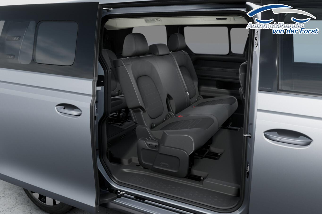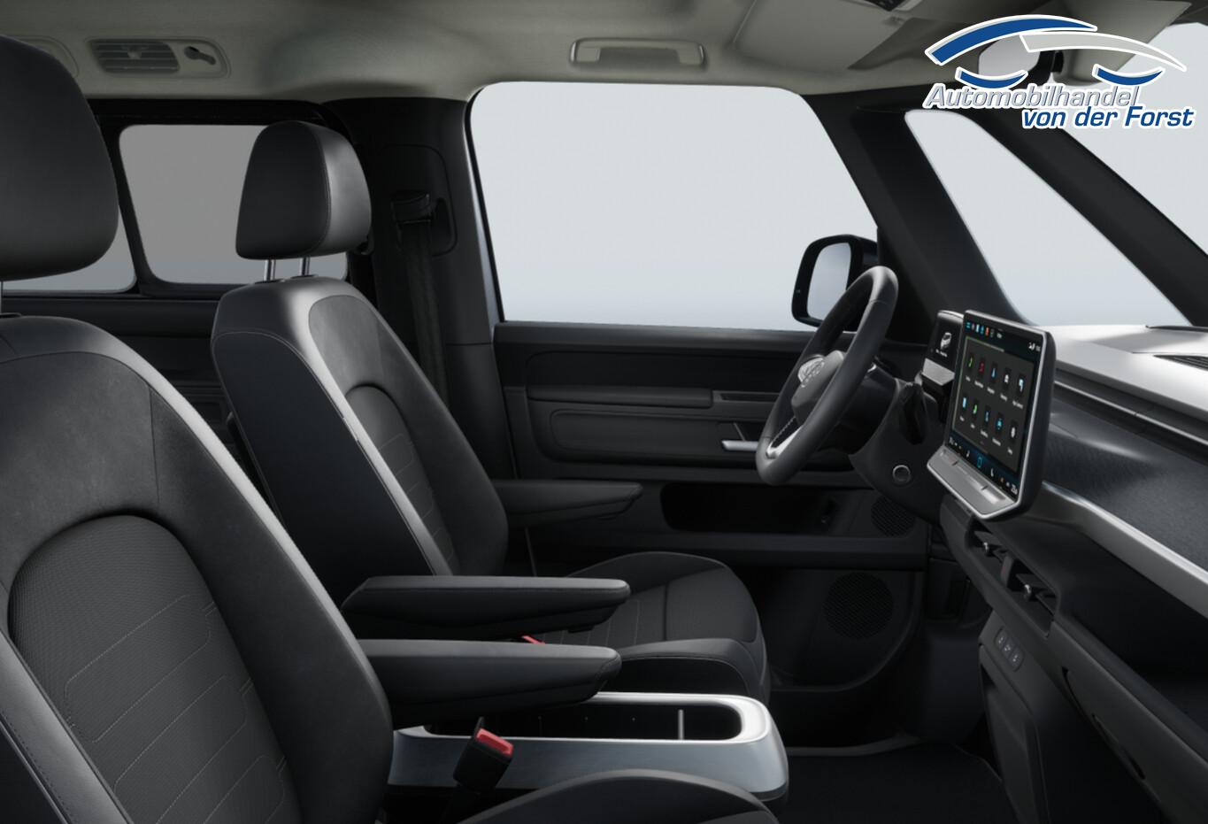 Ausstattungs-Paket: Easy Open & Close Plus (Fenster im Lade-/FG-Raum: - schiebbar, vorn links / Fenster im Lade-/FG-Raum: - schiebbar, vorn rechts / Schließ-/Startsystem Keyless Advanced mit Safesicherung / Umfeldleuchte in Heckklappe / Heckklappe elektr. betätigt Easy Open (öffnen + schliessen, sensorgesteuert) / Schiebetür Lade-/Fahrgastraum links elektr. betätigt Easy Open (sensorgesteuert) / Schiebetür Lade-/Fahrgastraum rechts elektr. betätigt Easy Open (sensorgesteuert)), Interieur-Paket Style Plus (Lenkrad schwarz) (Ambiente-Beleuchtung (30 Farben) / Sitzbezug / Polsterung: Stoff Seaqual / Sitze im Fahrerhaus: Fahrer- und Beifahrersitz Komfort / Sitze im Fahrerhaus: Fahrer- und Beifahrersitz mit Armlehnen beidseitig / Sitze vorn mit Massagefunktion / Sitze im Fahrerhaus: Fahrer- und Beifahrersitz elektr. verstellbar mit Memory, Einstiegshilfe links / Sitze im Fahrerhaus: Fahrer- und Beifahrersitz heizbar / Lenkrad heizbar (Leder) mit Multifunktion), Ausstattungs-Paket: Komfort-Paket Plus (Außenspiegel schwarz lackiert und Türgriffe außen in Wagenfarbe / Gepäckraum-Abtrennung / Trennnetz / Gepäckraumabdeckung / Rollo / Innenspiegel mit Abblendautomatik / Mittelkonsole vorn variabel (ID.Buzz Box) / Multiflex-Board / Scheibenwaschdüsen beheizt / Multimedia-Schnittstelle 2 x USB (Typ C) vorn, USB-Ladeanschluß (Typ C) 1 x vorn, hinten / Klimaanlage Climatronic 3-Zonen inkl. Fondbedienung / Sitze im Fahrerhaus: Fahrer- und Beifahrersitz heizbar / Lenkrad heizbar (Leder) mit Multifunktion / Regensensor), LM-Felgen vorn/hinten: 8x19 / 9x19 (Tilburg, schwarz glanzgedreht), Fahrassistenz-Paket Plus inkl. Travel Assist und Umgebungsansicht inkl. Rückfahrkamera (Schließ-/Startsystem Keyless Advanced mit Safesicherung / Türgriffschalen außen beleuchtet / Rückfahrkamera mit 360° Umgebungsansicht (Area View) / Lenkrad heizbar (Leder) mit Multifunktion / Fahrassistenz-System: Memoryfunktion für Park Assist / Fahrassistenz-System: Parklenkassistent (Park Assist) inkl. Einparkhilfe vorn und hinten / Fahrassistenz-Paket: Travel Assist, Emergency Assist und Lane Assist / Diebstahl-Warnanlage + Innenraumüberwachung / Abschleppschutz + Back-up-Horn), Ausstattungs-Paket: Design (Leuchtweitenregelung automatisch und Kurvenlicht dynamisch / Lichtleiste zwischen Scheinwerfer / Pedale Edelstahl / Fahrassistenz-System: Dynamische Fernlichtregulierung (Dynamic Light Assist) / Heckleuchten LED, Blinkleuchten dynamisch / Matrix-LED-Scheinwerfer (IQ.Light)), Sitz-Paket: 7-Sitzer (Sitzausstattung: 7-Sitzer / Sitze im Lade-/FG-Raum: 1.Reihe, 3er-Sitzbank, geteilt/klappbar + 2.Reihe, 2 Einzelsitze, herausnehmbar / Zul. Gesamtgewicht 3,34 t / Klimaanlage 2-Zonen mit 2 Zuheizer), Heizungs-/Klimaanlage: Wärmepumpe, Ladekabel mit Schukostecker (10 A, Mode 2), Ladekabel mit Typ 2-Stecker (32 A, Mode 3), Fahrassistenz-System: Parklenkassistent (Park Assist Pro) inkl. Einparkhilfe in Verbindung mit Onlinedienste, Diebstahl-Warnanlage + Innenraumüberwachung / Abschleppschutz, Elektron. Stabilitäts-Programm (ESP), Garantieverlängerung: 3 Jahre oder 100.000 km, Isofix-Aufnahmen für Kindersitz am Beifahrersitz, Navigation in Verbindung mit dem Smartphone (über Apple Carplay / Android Auto /...), Radschrauben mit Diebstahlsicherung, Scheibenwischer mit Intervallschaltung, Sommerreifen hinten 255/50 R19, Sommerreifen vorn 235/55 R19, Akustischer Fußgängerschutz, Außensound (e-sound), Audiosystem Ready 2 Discover (Touchscreen-Farbdisplay 12,9 Zoll), Audiosystem: Vorbereitung für spätere Freischaltung Navigationsfunktion Discover Pro, Außenspiegel konvex, links und rechts, Bidirektionales Laden (DC), Bodenbelag: Teppich verstärkt, DC / DC Wandler 3 kW, Elektromotor 210 kW (cont. 89 kW), Fahrassistenz-System: Ausweich-Assistent und Abbiege-Assistent, Funkschlüssel (2), Fußraumbeleuchtung vorn und hinten, Heckklappe mit Verglasung, Heckscheibenwischer mit Intervallschaltung, HV-Batterie 86 kWh netto, Innenausstattung: Bedienelemente, Lenkrad und Einfassung Instrumente schwarz, Innenleuchten im Lade-/FG-Raum: LED (Gepäckraum), Insassen-Schutzsystem proaktiv, Intelligent Speed Assist inkl. Geschwindigkeitsbegrenzer, Karosserie/Aufbau: Bus, Lautsprecher (9), Linkslenker, Mobile Online Dienste App-Connect inkl. App-Connect Wireless (Apple CarPlay, Android Auto), Nichtraucher-Paket, Radioempfang digital (DAB+), Radstand 3239 mm, Radstand lang, Schnellladevorrichtung (CCS-Ladedose), Sonnenblenden mit Spiegel (beleuchtet), Steckdose (12V-Anschluß) im Laderaum, Stoßfänger in Wagenfarbe, Umfeldbeleuchtung seitlich mit Projektionsfunktion, Vorbereitung für Alkohol-Wegfahrsperre (Alcolock), Vorbereitung Onlinedienste We Connect (Plus) oder VW Connect (Plus) und Online-Update-Fähigkeit, Warnanlage für Sicherheitsgurte vorn und hinten, Mobiltelefon Schnittstelle Bluetooth, Mobiltelefon Schnittstelle mit kabelloser Ladefunktion, Anti-Blockier-System (ABS), Antriebsart: Heckantrieb, Getriebe für Elektrofahrzeug, Airbag Fahrer-/Beifahrerseite, Beifahrerairbag abschaltbar, Isofix-Aufnahmen für Kindersitz an Rücksitz, Seitenairbag, Kopfairbag und Center-Airbag vorn, Wärmeschutzverglasung seitlich / hinten, Fahrassistenz-System: Autom. Distanzregelung (ACC inkl. Stop&Go-Funktion), Fahrassistenz-System: Verkehrszeichenerkennung, Multifunktionskamera / Frontkamera, Notrufsystem, Servolenkung elektro-mechanisch, geschwindigkeitsabhängig, Außenspiegel elektr. verstell-, heiz- und anklappbar mit Spiegelabsenkung, Fahrassistenz-System: Ablenkungs- und Müdigkeitserkennung, Fahrassistenz-System: Notbrems-Assistent (Front Assist) inkl. Fußgänger- und Fahrraderkennung, Fahrassistenz-System: Spurhalteassistent (Lane Assist), Fahrassistenz-System: Spurwechselassistent (Side Assist) mit Auspark-Assistent und Ausstiegswarnung, Reifenkontroll-Anzeige