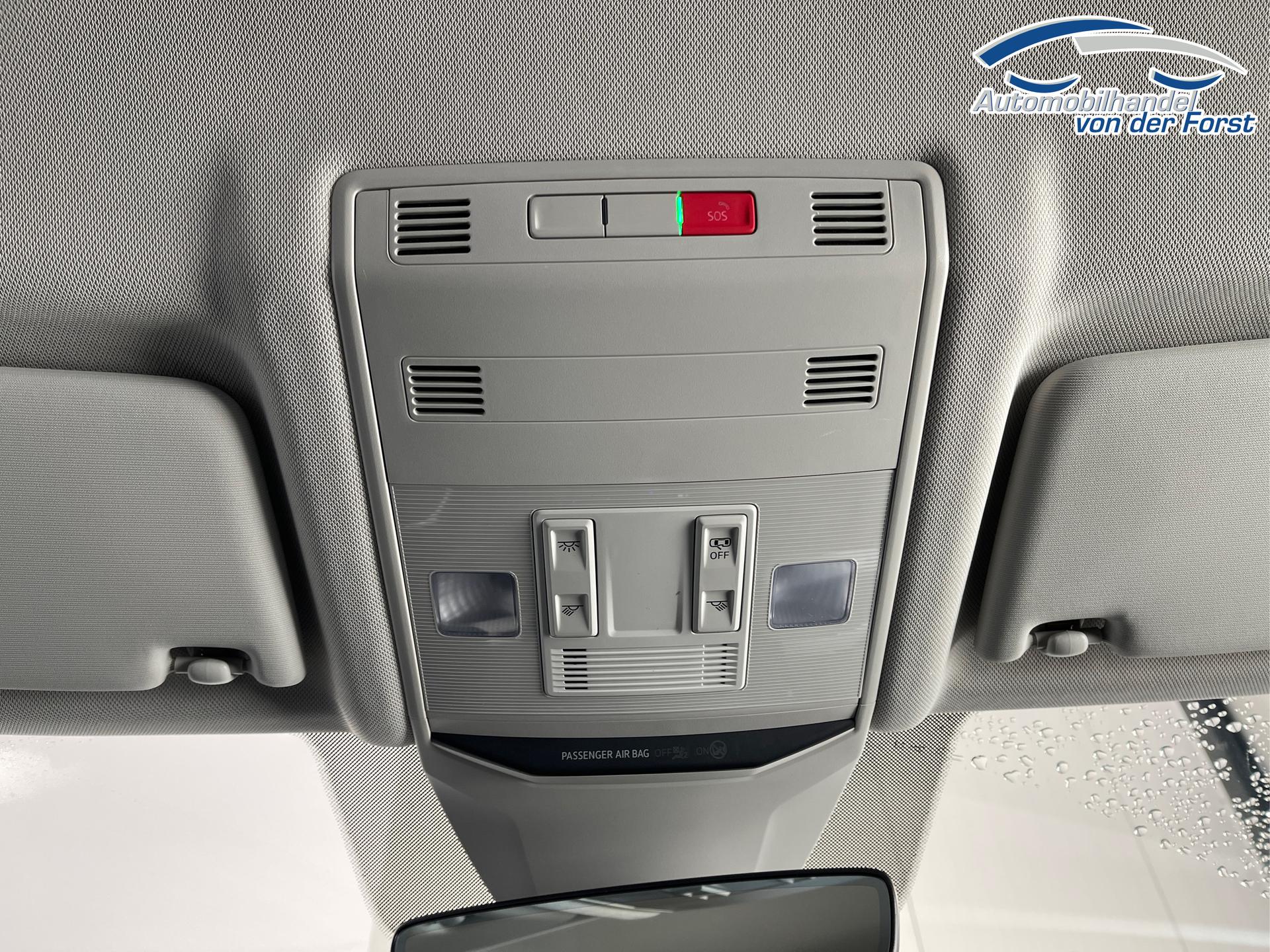 • Fernlichtassistent "Light Assist", USB-Schnittstelle, Dreipunkt-Sicherheitsgurte, Kopfstützen, Airbag für Fahrer und Beifahrer, Beifahrerairbag-Deaktivierung, Seitenairbag vorn mit Kopfairbag, Freisprecheinrichtung Bluetooth, Zentralverriegelung mit Funkfernbedienung, Regensensor, Coming/Leaving Home Funktion, Digital Cockpit (8 Zoll, Bordcomputer), Digitaler Radioempfang DAB+, Notrufsystem eCall, Außenspiegel elektrisch einstell- und beheizbar, Außenspiegel elektrisch anklappbar, Fensterheber vorn und hinten elektrisch, elektronische Parkbremse mit Auto-Hold-Funktion, ESC, ABS, ASR, EDS, EBV, MSR, Berganfahrassistent, Front Assist inkl. City-Notbremsfunktion, Wegfahrsperre, Isofix, Komfortsitze vorn, Reifendruckkontrolle, Gepäckraumabdeckung, Spurhalteassistent "Lane Assist", LED-Scheinwerfer, LED-Rückleuchten, LED-Tagfahrlicht, Make-up-Spiegel in den Sonnenblenden, Multifunktions-Lederlenkrad, Ablagefach unter dem Beifahrersitz, Rücksitzlehne geteilt umklappbar, Mittelarmlehne hinten, ParkPilot vorn und hinten, Fußgängererkennung, Servolenkung, Start-Stopp-Anlage, Innenraumfilter, Uhr, Außentemperaturanzeige, Dachreling Schwarz, Mittelarmlehne vorne, Müdigkeitserkennung, Tire-Mobility-Set, Sicherheitsinnenspiegel automatisch abblendend, Vordersitze höhenverstellbar