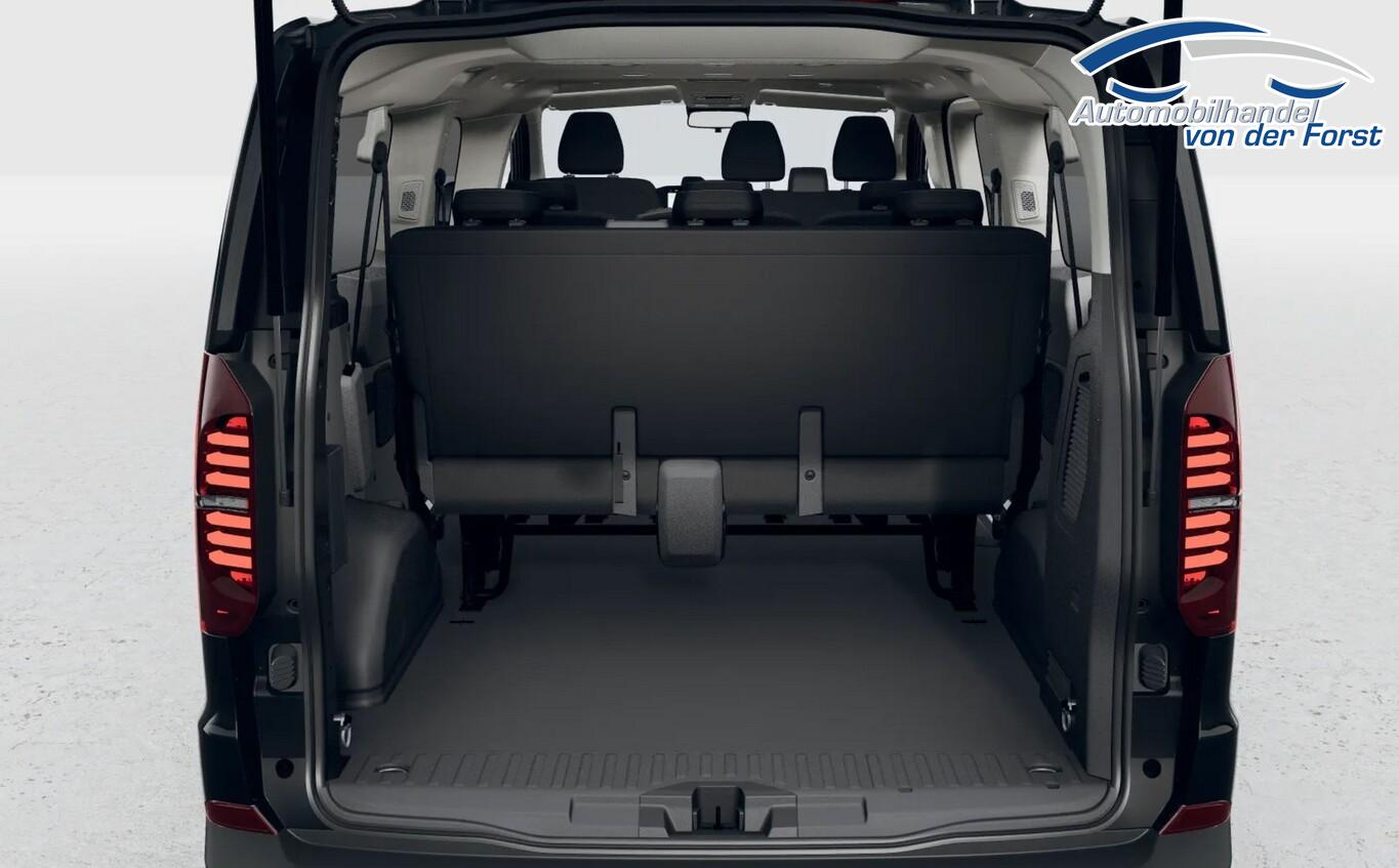 Sitze im Lade-/FG-Raum: 1.Reihe, 3 Einzelsitze klapp- und wickelbar und 2.Reihe, 3er-Sitzbank, 6x Isofix, 4x Top Tether, Fahrassistenz-Paket Plus (Rückfahrkamera / Fahrassistenz-System: Einparkhilfe vorn und hinten), LM-Felgen 6,5x16 (Montreal, silber), Anhängerkupplung: Kugelkopf fest (Anhänger-Stabilisierungs-Programm), Klimaanlage Fahrerhaus (1-Zonen mit autom. Regelung) Fahrgastraum (mit manueller Regelung und Bedienteil), Sitz-Paket 12A: Fahrersitz und Beifahrerdoppelsitz inkl. Seitenairbag, Stoff (Sitze im Fahrerhaus: Beifahrerdoppelsitz mit Stau-/Ablagefach / Sitze im Fahrerhaus: Fahrersitz 4-fach verstellbar), Verglasung hinten abgedunkelt, Kraftstofftank: 70 Ltr., Brillenfach im Dachhimmel Fahrerseite, Dachhaltegriff Beifahrerseite, Einstiegsgriff B-Säule Fahrgastraum, Ausstattungs-Paket: Exterieur-Paket, Anbauteile genarbt, Kühlergrill in Wagenfarbe, Einstiegsleisten Schiebetür (Kunststoff) beleuchtet, Fahrassistenz-System: Müdigkeitserkennung, Generator 230 A, Navigation in Verbindung mit dem Smartphone (über Apple Carplay / Android Auto /...), Radioempfang digital (DAB), Reifendruck-Kontrollsystem, Rußpartikelfilter, Sommerreifen 215/65 R16, Steckdose (12V-Anschluss) an D-Säule auf Bodenhöhe hinten rechts, Steckdose (12V-Anschluss) im Fahrerhaus, Außenspiegel und Türgriffe außen schwarz genarbt, Batterie 80 Ah, Bodenbelag: Gummi (vorn und hinten), Digital Cockpit (Instrumentenanzeige Digital), Fenster im Lade-/FG-Raum: - feststehend, hinten links, Fenster im Lade-/FG-Raum: - feststehend, hinten rechts, Fenster im Lade-/FG-Raum: - feststehend, vorn links, Fenster im Lade-/FG-Raum: - feststehend, vorn rechts, Heckklappe, Heckscheibe heizbar, Heckscheibenwischer mit Waschanlage, Innenleuchten im Fahrerhaus: LED, Innenleuchten im Lade-/FG-Raum: LED (Gepäckraum), Innenspiegel abblendbar, Karosserie/Aufbau: Kombi Standard, Keyless-Start ohne Safesicherung, Kopfstützen vorn höhenverstellbar, Lautsprecher (6), Mittelkonsole, schmal mit Getränkehalter und Ablage, Motor 2,0 Ltr. - 110 kW TDI, PKW-Zulassung, Radio mit Touchscreen-Farbdisplay 13" mit App-Connect Wireless, Radstand 3500 mm, Schiebetür Lade-/Fahrgastraum rechts, Schmutzfänger vorn, Sitzbezug / Polsterung: Stoff, Stoßfänger vorn und hinten schwarz genarbt, Verkleidung im Lade-/FG-Raum: Kunststoff halbhoch, Mobiltelefon Schnittstelle Bluetooth, USB-Anschluss 2-fach im Fahrerhaus und 2-fach im Fahrgastraum, Anti-Blockier-System (ABS), Antriebsart: Allradantrieb, Elektron. Stabilitäts-Programm (ESP) mit Bremskraftverstärker elektro-mechanisch, Wegfahrsperre (elektronisch), Getriebe Automatik - (8-Stufen), Airbag Fahrer-/Beifahrerseite, Beifahrerairbag abschaltbar, Seitenairbag / Kopfairbag (Curtain-Airbag) vorn und Kopfairbag (Curtain-Airbag) hinten, Verzurrösen (4), Zentralverriegelung, Wärmeschutzverglasung, Fahrassistenz-System: Geschwindigkeits-Regelanlage mit Intelligenter Geschwindigkeits-Assistent, Fahrassistenz-System: Verkehrszeichenerkennung mit Falschfahrer-Warnfunktion, Notrufsystem, Lenkrad mit Multifunktion, Außenspiegel elektr. verstell- und heizbar, Fahrassistenz-System: Fernlichtregulierung (Light Assist), Heckleuchten LED, LED-Scheinwerfer inkl. LED-Tagfahrlicht, Fahrassistenz-System: Notbrems-Assistent, Fußgänger- und Fahrraderkennung, Ausweichunterstützung und Abbiege-Assistent, Fahrassistenz-System: Spurhalteassistent (Lane Assist)