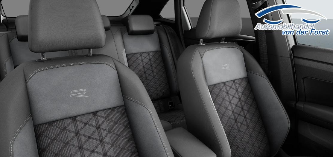 • Innenausstattung WSSport-Komfortsitze vorn, Sitzmittelbahnen der Vordersitze und der äußeren Rücksitzplätze in Stoff "R-Line", Grau, Dachhimmel in schwarz