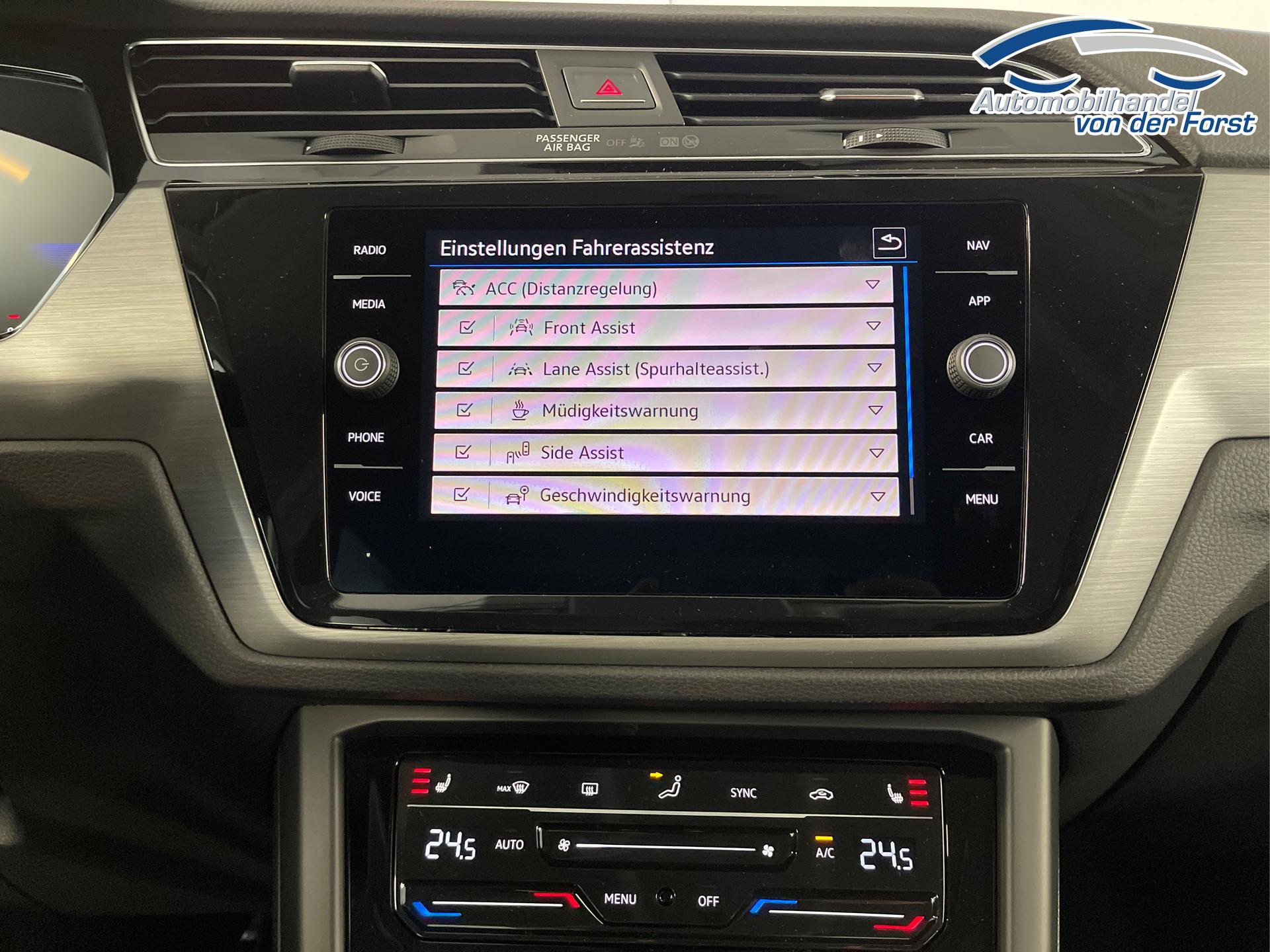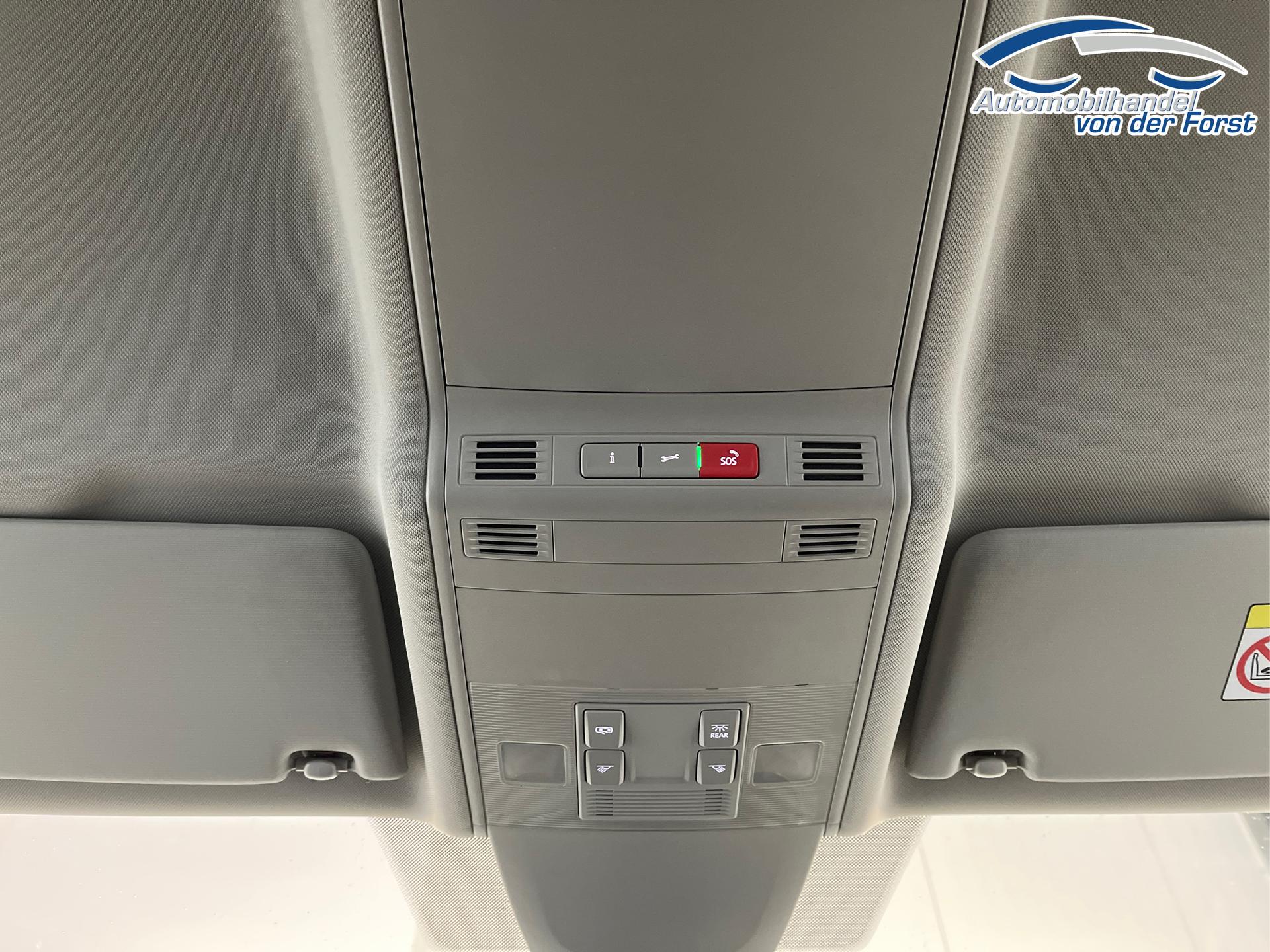• USB-Schnittstelle, Kopfstützen, Adaptive Geschwindigkeitsregelung ACC bis 210 km/h (Geschwindigkeitsregelanlage inkl. Geschwindigkeitsbegrenzung), Airbag für Fahrer und Beifahrer, Seitenairbag, Kopfairbag für 1. und 2. Sitzreihe, Beifahrer-Airbag-Deaktivierung, Licht-und-Sicht-Paket (Sicherheitsinnenspiegel automatisch abblendend, Regensensor, Coming/Leaving Home Funktion), Freisprecheinrichtung Bluetooth, Zentralverriegelung mit Funkfernbedienung, Wärmeschutzverglasung, Digital Cockpit (8 Zoll Bildschirm, Bordcomputer), Digitaler Radioempfang DAB+, Notrufsystem eCall, Außenspiegel elektrisch einstell- und beheizbar, Fensterheber vorn und hinten elektrisch, Außenspiegel elektrisch anklappbar, Feststellbremse elektronisch mit Auto-Hold-Funktion, XDS-Differenzialsperre, ESC, ABS, ASR, EDS, EBV, MSR, Berganfahrassistent, Raucherpaket, Front Assist inkl. City-Notbremsfunktion, Nebelscheinwerfer inkl. Abbiegelicht, Wegfahrsperre, Isofix, Knieairbag für Fahrer, Make-up-Spiegel in den Sonnenblenden, Multifunktions-Lederlenkrad, Schalthebelknauf/-Griff in Leder, Multikollisionsbremse, Stoßfänger in Wagenfarbe, Außenspiegelgehäuse und Türgriffe in Wagenfarbe, Stäu/-Ablagefächer, ParkPilot vorn und hinten, Fußgängererkennung, Radfahrererkennung, Servolenkung, Proaktives Sicherheitssystem, Tire-Mobility-Set, Beifahrersitz umklappbar, Spurwechselassistent "Side Assist", Start-Stopp-Anlage, Scheiben ab der B-Säule abgedunkelt, Mittelarmlehne vorne, 12 Volt Steckdose, Dachreling Schwarz, Müdigkeitserkennung, Dreipunkt-Sicherheitsgurte, Lenksäule verstellbar, Vordersitze höhenverstellbar, Lendenwirbelstütze für die Vordersitzlehnen, Reifendruckkontrolle