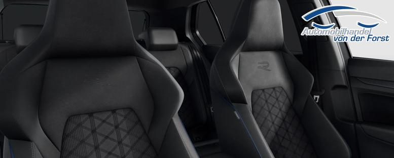 • Sitzmittelbahnen der Vordersitze und der äußeren Rücksitzplätze in Stoff "R-Line", -innenwangen in "ArtVelours"