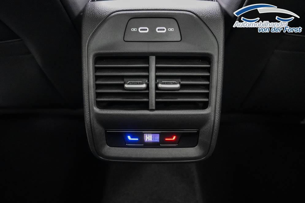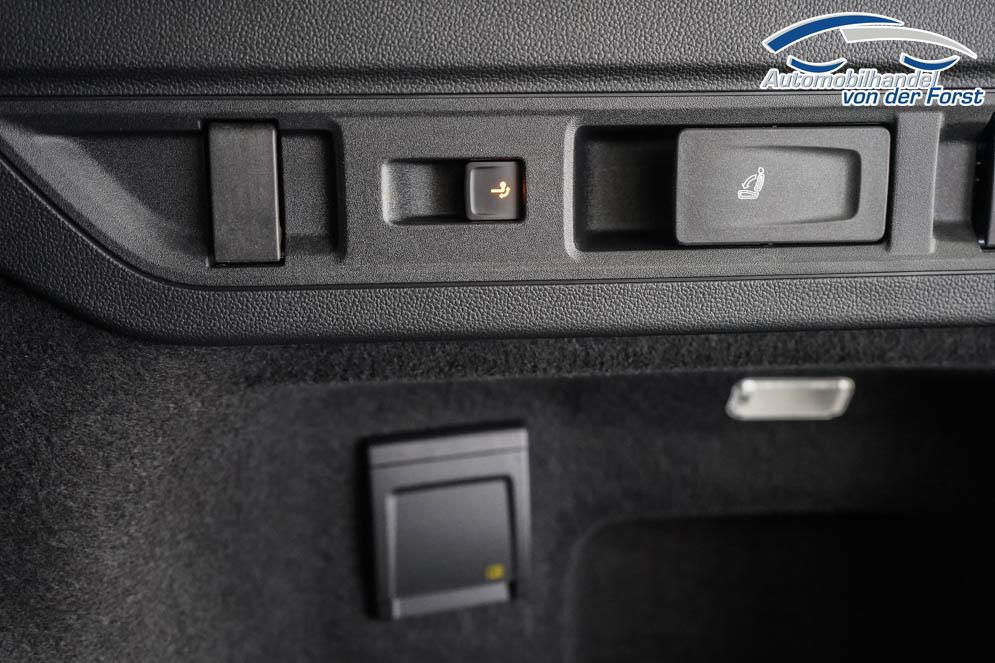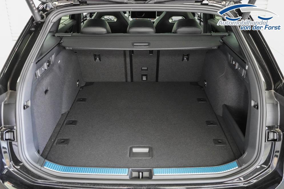 Beifahrersitz höhenverstellbar, Fahrersitz höhenverstellbar, Lederlenkrad, Lendenwirbelstütze, Sitzbezug Stoff, Sportsitze, Gepäckraumabdeckung, Lenkrad höhenverstellbar, Ambiente-Beleuchtung, Massagesitze, Beheizbares Lenkrad, Multifunktionssportlenkrad, Isofix, Isofix Beifahrersitz, abgedunkelte Scheiben, 19 Zoll Alufelgen Leeds schwarz, Dachreling schwarz, ABS, Alarmanlage, Außenspiegel elektrisch anklappbar, Fensterheber elektrisch, Kopfairbags, Schiebedach, Seitenairbags, Servolenkung, Sitzheizung, ESP, Wegfahrsperre, Außenspiegel beheizbar, Beifahrerairbag, Fahrerairbag, Partikelfilter, Parkpilot vorne, Reifendruckkontrolle, Head-up Display, Regensensor, Lichtsensor, Digital Cockpit Pro, Anhängekupplung schwenkbar, Tempomat Abstand ACC, Spurhalteassistent, Totwinkelerkennung, Verkehrszeichenerkennung, IQ Light LED Matrix Scheinwerfer, Tagfahrlicht LED, Kurvenlicht, Rückfahrkamera, Park-Assistent Plus, Panoramadach, Elektrische Heckklappe mit Easy Open/Close Funktion, KeylessEntry, StartStopSystem, Innenspiegel automatisch abbl., Berganfahrassistent, Müdigkeitswarnsystem, Notrufsystem, Schaltwippen, Klimaautomatik 3-Zonen, Geschwindigkeitsbegrenzer, Android Auto, Apple Carplay, Freisprecheinrichtung, Induktionsladestation, Sprachsteuerung, Touchscreen, USB, Radio DAB, Bluetooth, Bordcomputer, Radio-Navigationssystem 15 Zoll, Travel Assist, App-Connect, ErgoActive Sitze vorn, variabler Ladeboden, Black Style Paket, Trailer Assist, 230V Steckdose,