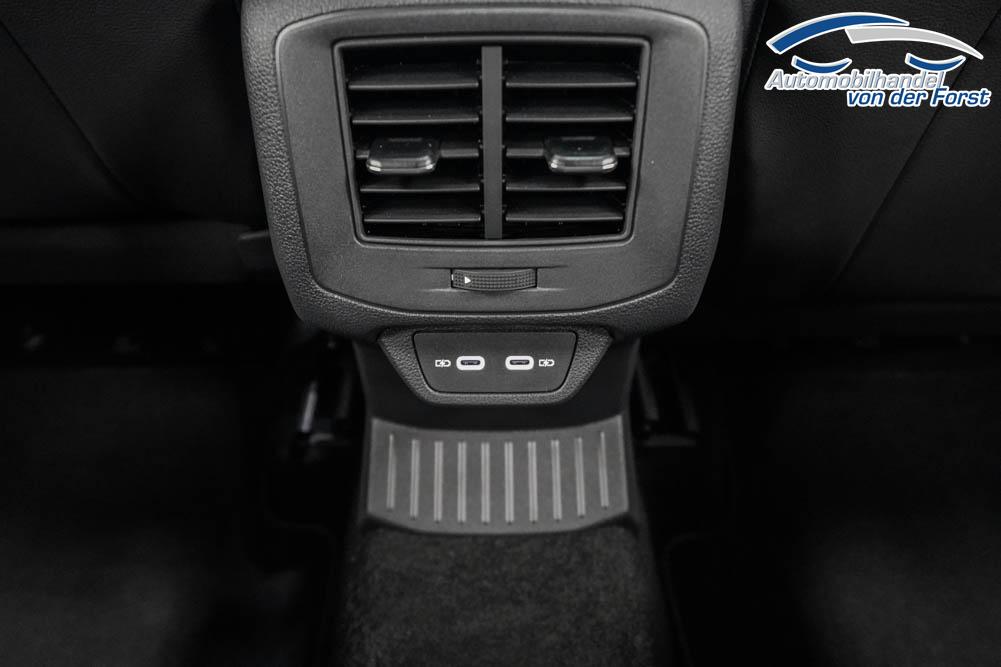 Beifahrersitz höhenverstellbar, Fahrersitz höhenverstellbar, Sport-Lederlenkrad, Lendenwirbelstütze vorne, Mittelarmlehne vorne, Sitzbezug Stoff, Sportsitze, geteilt umklappbare Rücksitzlehne, Lenkrad höhenverstellbar, Ambiente-Beleuchtung, Multifunktionslenkrad, Isofix, Beifahrersitz umklappbar, abgedunkelte Scheiben, 19 Zoll Alufelgen Misano, Dachreling schwarz, Außenspiegel in Schwarz, Türgriffe in Wagenfarbe, ABS, Außenspiegel elektrisch einstell-/anklappbar, Fensterheber elektrisch, Klimaautomatik, Kopfairbags, Seitenairbags, Servolenkung, Sitzheizung, ESP, Wegfahrsperre, Zentralverriegelung mit Funk, Außenspiegel beheizbar, Beifahrerairbag, Fahrerairbag, Parkpilot hinten, Parkpilot vorne, Reifendruckkontrolle, Regensensor, Lichtsensor, Digital Cockpit, Anhängekupplung abnehmbar, Tempomat Abstand ACC, Fernlichtassistent, Notbremsassistent, Spurhalteassistent, Verkehrszeichenerkennung, LED PLUS-Scheinwerfer, LED-Tagfahrlicht, Pannenset, Rückfahrkamera, Park-Assistent, Panoramadach, Elektrische Heckklappe Virtual Pedal, Keyless Access, StartStopSystem, Winterpaket, Innenspiegel automatisch abbl., Müdigkeitswarnsystem, Notrufsystem, Schaltwippen, Geschwindigkeitsbegrenzer, Android Auto, Apple Carplay, Freisprecheinrichtung, Induktionsladestation, USB Typ-C, Radio DAB, Bluetooth inkl. Handykopplung, Bordcomputer, Navigation Media, App-Connect Wireless, LED-Rückleuchten, Dachhimmel schwarz, Black Style Paket, 4 Jahre bis max. 80.000km Herstellergarantie,