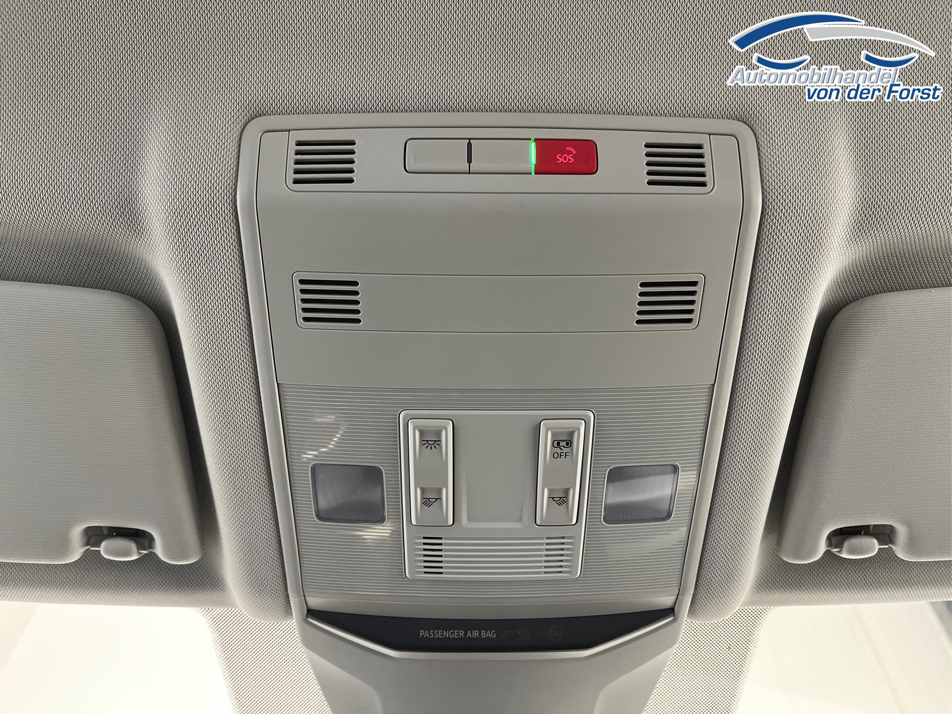 • Fernlichtassistent "Light Assist", USB-Schnittstelle, Dreipunkt-Sicherheitsgurte, Kopfstützen, Airbag für Fahrer und Beifahrer, Beifahrerairbag-Deaktivierung, Seitenairbag vorn mit Kopfairbag, Induktionsladen für Smartphones, Freisprecheinrichtung Bluetooth, Zentralverriegelung mit Funkfernbedienung, Regensensor, Coming/Leaving Home Funktion, Digital Cockpit (8 Zoll, Bordcomputer), Digitaler Radioempfang DAB+, Notrufsystem eCall, Außenspiegel elektrisch einstell- und beheizbar, Außenspiegel elektrisch anklappbar, Fensterheber vorn und hinten elektrisch, elektronische Parkbremse mit Auto-Hold-Funktion, ESC, ABS, ASR, EDS, EBV, MSR, Berganfahrassistent, Front Assist inkl. City-Notbremsfunktion, Wegfahrsperre, Isofix, Komfortsitze vorn, Reifendruckkontrolle, Gepäckraumabdeckung, Spurhalteassistent "Lane Assist", LED-Scheinwerfer, LED-Rückleuchten, LED-Tagfahrlicht, Make-up-Spiegel in den Sonnenblenden, Multifunktions-Lederlenkrad, Ablagefach unter dem Beifahrersitz, Rücksitzlehne geteilt umklappbar, Mittelarmlehne hinten, ParkPilot vorn und hinten, Fußgängererkennung, Servolenkung, Start-Stopp-Anlage, Innenraumfilter, Uhr, Außentemperaturanzeige, Dachreling Schwarz, Mittelarmlehne vorne, Müdigkeitserkennung, Tire-Mobility-Set, Sicherheitsinnenspiegel automatisch abblendend, Vordersitze höhenverstellbar