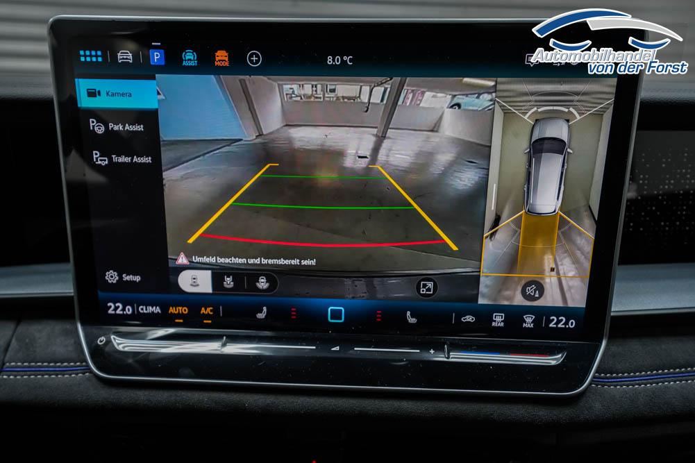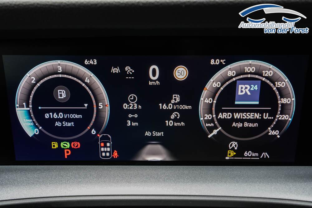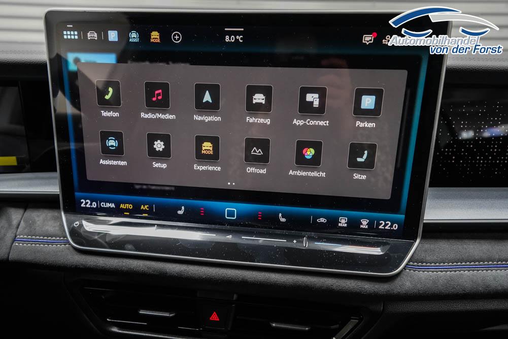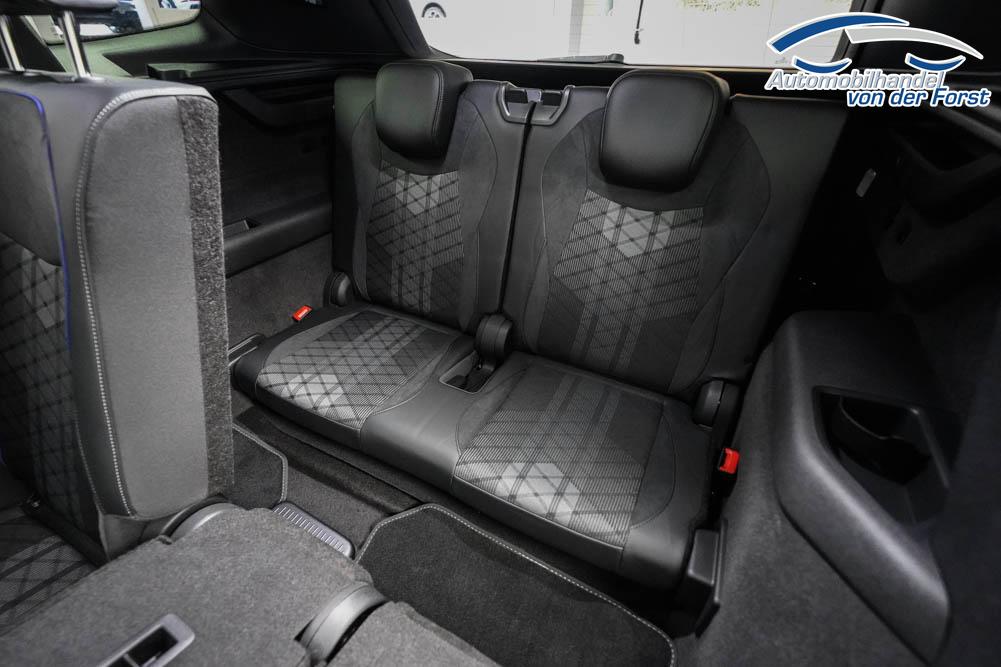 Beifahrersitz höhenverstellbar, Fahrersitz höhenverstellbar, Sport-Lederlenkrad, Lendenwirbelstütze, Mittelarmlehne vorne, Sitzbezug Stoff, Sportsitze vorne, 7 Sitze, geteilt umklappbare Rücksitzlehne, Lenkrad höhenverstellbar, Ambiente-Beleuchtung, Massagesitze vorne, Beheizbares Lenkrad, Multifunktionslenkrad, Isofix, Isofix Beifahrersitz, abgedunkelte Scheiben, 20 Zoll Alufelgen, Dachreling schwarz, Stoßfänger in Wagenfarbe, Türgriffe in Wagenfarbe, ABS, Alarmanlage, Außenspiegel elektrisch einstell-/anklappbar, Fensterheber elektrisch, Kopfairbags, Schiebedach, Seitenairbags, Servolenkung, Sitzheizung vorne, DCC, ESP, Wegfahrsperre, Zentralverriegelung mit Funk, Außenspiegel beheizbar, Beifahrerairbag, Fahrerairbag, Partikelfilter, Parkpilot hinten, Parkpilot vorne, Reifendruckkontrolle, Head-up Display, Regensensor, Lichtsensor, Digital Cockpit, Anhängekupplung schwenkbar, Tempomat Abstand ACC, Dynamic Light Assist, Notbremsassistent, Spurhalteassistent, Side Assist, Verkehrszeichenerkennung, Matrix-LED-Scheinwerfer, LED-Tagfahrlicht, Kurvenlicht, Pannenset, Rückfahrkamera, Park-Assistent, Panoramadach, Elektrische Heckklappe inkl. Virtual Pedal, KeylessEntry, StartStopSystem, Innenspiegel automatisch abbl., Berganfahrassistent, Müdigkeitswarnsystem, Notrufsystem, Schaltwippen, Klimaautomatik 3-Zonen, 360-Grad-Kamera, Geschwindigkeitsbegrenzer, Android Auto, Apple Carplay, Freisprecheinrichtung, Induktionsladestation, Sprachsteuerung, Touchscreen, USB Typ-C, Radio DAB, Bluetooth, Bordcomputer, Navigationssystem Discover Pro Max, App-Connect Wireless, Fahrprofilauswahl, Trailer Assist, Travel Assist, Emergency Assist, Netztrennwand, LED-Beleuchtung des Kühlergrills, 3D-LED-Rückleuchten, R-Line Exterieurpaket Black Style, 4 Jahre bis max. 80.000km Herstellergarantie,