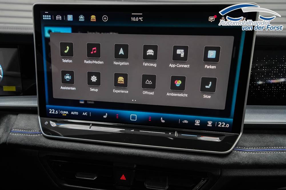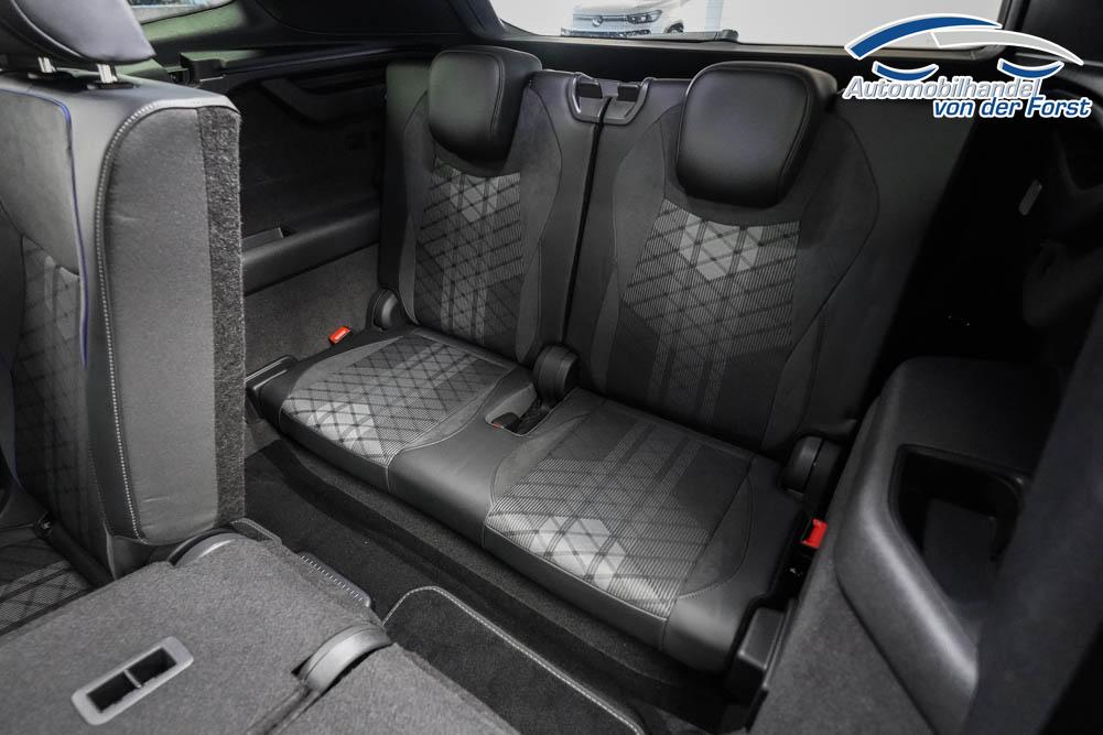 Beifahrersitz höhenverstellbar, Fahrersitz höhenverstellbar, Sport-Lederlenkrad, Mittelarmlehne vorne, Sitzbezug Stoff, Sportsitze vorne, 7 Sitze, geteilt umklappbare Rücksitzlehne, Lenkrad höhenverstellbar, Ambiente-Beleuchtung, Massagesitze vorne, Beheizbares Lenkrad, Multifunktionslenkrad, Isofix, abgedunkelte Scheiben, 20 Zoll Alufelgen, Dachreling schwarz, Stoßfänger in Wagenfarbe, Türgriffe in Wagenfarbe, ABS, Alarmanlage, Außenspiegel elektrisch einstell-/anklappbar, Fensterheber elektrisch, Kopfairbags, Schiebedach, Seitenairbags, Servolenkung, Sitzheizung vorne, DCC, ESP, Wegfahrsperre, Zentralverriegelung mit Funk, Außenspiegel beheizbar, Beifahrerairbag, Fahrerairbag, Partikelfilter, Parkpilot hinten, Parkpilot vorne, Reifendruckkontrolle, Head-up Display, Regensensor, Digital Cockpit, Anhängekupplung schwenkbar, Tempomat Abstand ACC, Dynamic Light Assist, Notbremsassistent, Spurhalteassistent, Side Assist, Verkehrszeichenerkennung, Matrix-LED-Scheinwerfer, LED-Tagfahrlicht, Pannenset, Rückfahrkamera, Park-Assistent, Panoramadach, Elektrische Heckklappe inkl. Virtual Pedal, KeylessEntry, StartStopSystem, Berganfahrassistent, Müdigkeitswarnsystem, Notrufsystem, Klimaautomatik 3-Zonen, 360-Grad-Kamera, Geschwindigkeitsbegrenzer, Android Auto, Apple Carplay, Freisprecheinrichtung, Induktionsladestation, Sprachsteuerung, Touchscreen, USB Typ-C, Radio DAB, Bluetooth, Bordcomputer, Navigationssystem Discover Pro Max, App-Connect Wireless, Fahrprofilauswahl, Trailer Assist, Travel Assist, Emergency Assist, Netztrennwand, 4 Jahre bis max. 120.000km Herstellergarantie, LED-Beleuchtung des Kühlergrills, 3D-LED-Rückleuchten, R-Line Exterieurpaket Black Style,