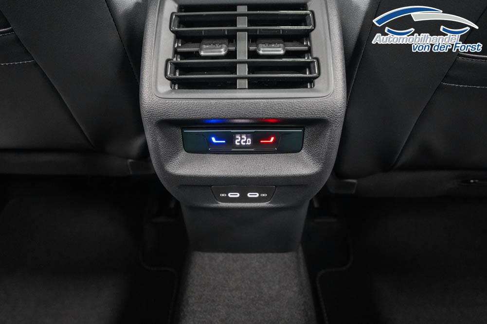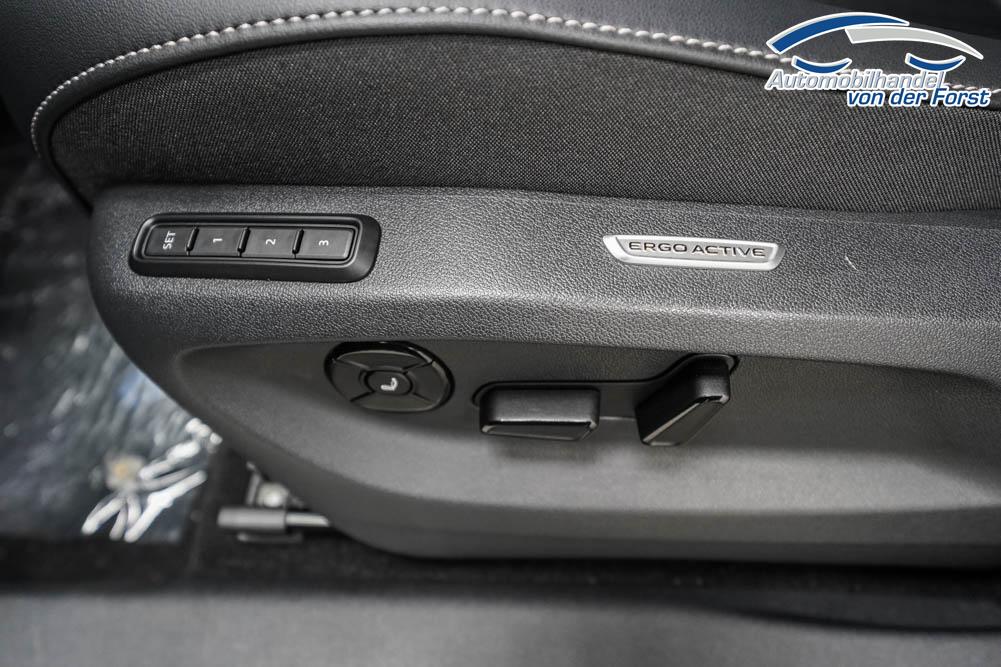 Beifahrersitz höhenverstellbar, Fahrersitz höhenverstellbar, Lederlenkrad, Lordosenstütze, Mittelarmlehne vorne, Sitzbezug Leder, Sportsitze, Gepäckraumabdeckung, geteilt umklappbare Rücksitzlehne, Lenkrad höhenverstellbar, Ambiente-Beleuchtung, Elektrisch verstellbarer Vordersitze, Massagesitze, Beheizbares Lenkrad, Multifunktionslenkrad, Isofix, Isofix Beifahrersitz, abgedunkelte Scheiben, Alufelgen 19, Dachreling schwarz, Stoßfänger in Wagenfarbe, Türgriffe in Wagenfarbe, ABS, Alarmanlage, Anhängekupplung, Außenspiegel elektrisch, Fensterheber elektrisch, Kopfairbags, Seitenairbags, Servolenkung, Sitzheizung vorne, ESP, Tempomat, Traktionskontrolle, Wegfahrsperre, Außenspiegel beheizbar, Beifahrerairbag, Fahrerairbag, Partikelfilter, Parkpilot hinten, Parkpilot vorne, Reifendruckkontrolle, Head-up Display, Regensensor, Lichtsensor, Digitales Kombiinstrument, Anhängekupplung schwenkbar, ACC, Spurhalteassistent, Totwinkelassistent, Verkehrszeichenerkennung, LED-Scheinwerfer, Tagfahrlicht, Tagfahrlicht LED, Kurvenlicht, Pannenset, Rückfahrkamera, Park-Assistent, Panoramadach, Elektrische Heckklappe mit virtuelles Pedal, Keyless Advanced, StartStopSystem, Winterpaket, Innenspiegel automatisch abbl., Berganfahrassistent, Müdigkeitswarnsystem, Notrufsystem, Schaltwippen, Klimaautomatik 3-Zonen, 360-Grad-Kamera, Geschwindigkeitsbegrenzer, Android Auto, Apple Carplay, Freisprecheinrichtung, Induktionsladestation, Sprachsteuerung, USB Typ-C, Radio DAB, Bluetooth, Bordcomputer, Navigationssystem, Black Style Exterieur, Trailer Assist, ergoAcitve Vordersitze mit Memory, erweiterte Herstellergarantie 4 Jahre/80.000km,