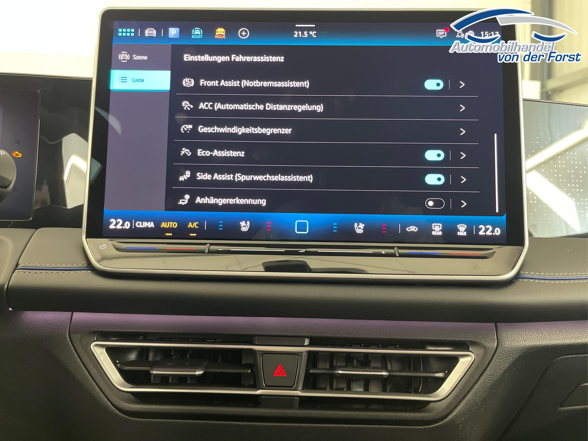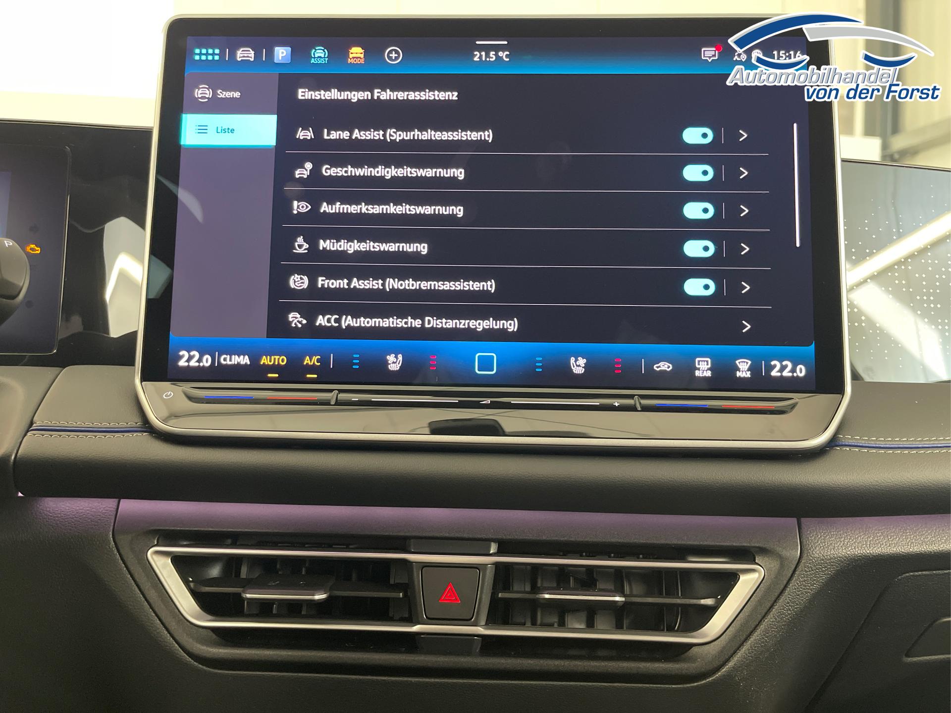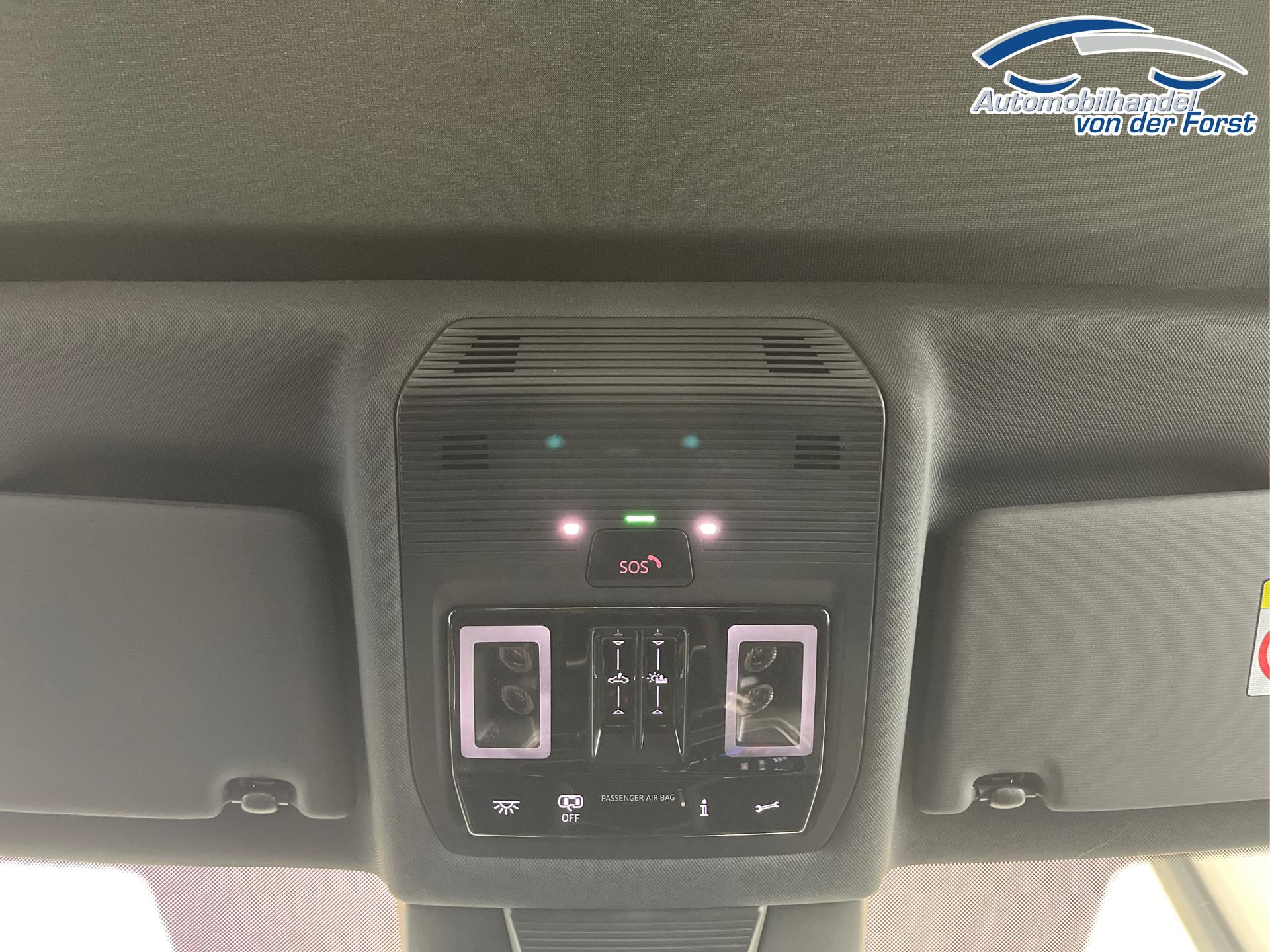 • 12 Volt Steckdose, Ambientebeleuchtung, Rücksitzlehne geteilt umklappbar, Dachhimmel Schwarz, Klimaanlage 3-Zonen-Climatronic, LED-Streifen zwischen den Scheinwerfern, Make-up-Spiegel in den Sonnenblenden, Mittelarmlehne vorne, Pedale in Edelstahl, Heckklappe elektrisch mit virtuelles Pedal, Wärmeschutzverglasung, Akustikverglasung Plus Scheiben ab der B-Säule abgedunkelt, USB-Schnittstelle, Digitaler Radioempfang DAB+, Freisprecheinrichtung Bluetooth, Sprachbedienung, Reifendruckkontrolle, Tire-Mobility-Set, Nebelschlussleuchte, Lichtsensor, LED-Rückleuchten, Abbiegelicht, Regensensor, Coming-Home Funktion, Adaptive Geschwindigkeitsregelung ACC (Geschwindigkeitsregelanlage inkl. Geschwindigkeitsbegrenzung), Müdigkeitserkennung, Spurhalteassistent, Parklenkassistent Plus inkl. ParkPilot vorn und hinten, Ausparkassistent und Ausstiegswarner, Verkehrszeichenerkennung, Kopfstützen, Adaptive Fahrwerksregelung DCC, Dreipunkt-Sicherheitsgurte, ABS, ASR, ESC, Isofix Beifahrersitz, Warnsignal bei nicht angelegten Sicherheitsgurten, Car 2X - Car-to-Car-Kommunikation, Feststellbremse elektronisch mit Auto-Hold-Funktion, Querverkehrassistent, Sicherheitsinnenspiegel automatisch abblendend, Airbag für Fahrer und Beifahrer, Beifahrerairbag-Deaktivierung, Keyless Advanced mit Diebstahlwarnanlage (Schlüsselloses Schließ- und Startsystem), Notrufsystem eCall, Seitenairbag vorn und hinten, Kopfairbag und Front-Interaktionsairbag, Start-Stopp-Anlage, Außenspiegel elektrisch einstell- und beheizbar, Außenspiegel elektrisch anklappbar, Fensterheber vorn und hinten elektrisch, Zentralverriegelung mit Funkfernbedienung, Digital Cockpit (Bordcomputer), Wirless SmartLink